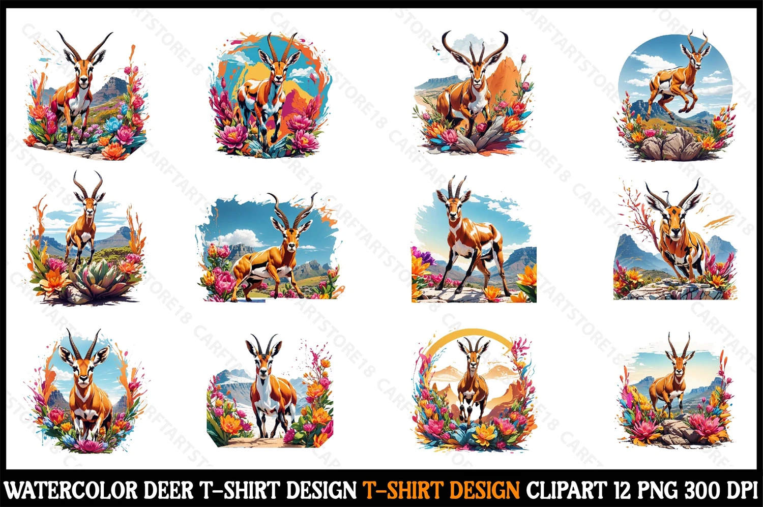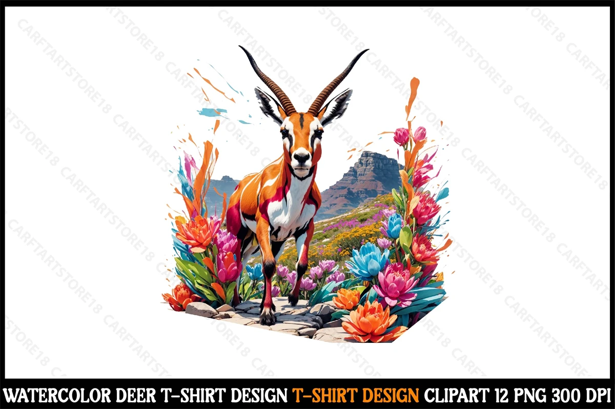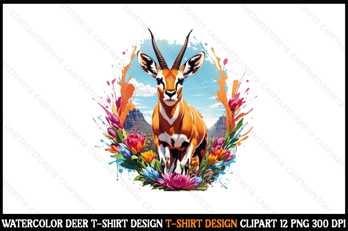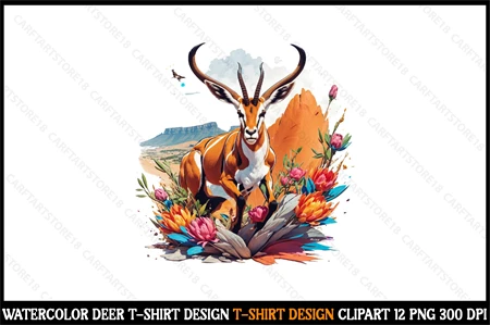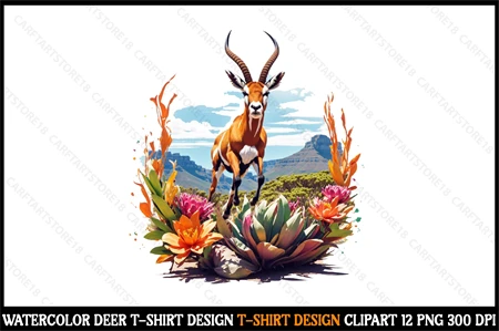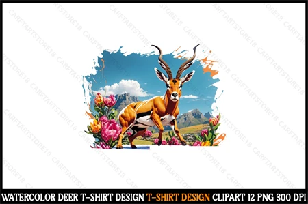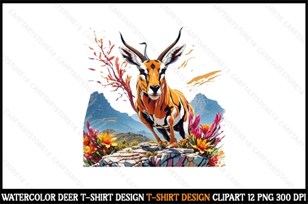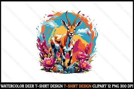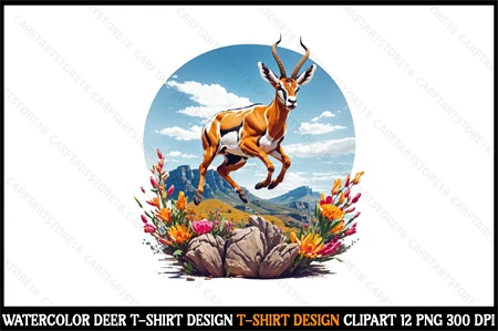 Watercolor Deer T-Shirt Design Clipart T-Shirt Design Bundle digital download cutting file for Circuit And Silhouette