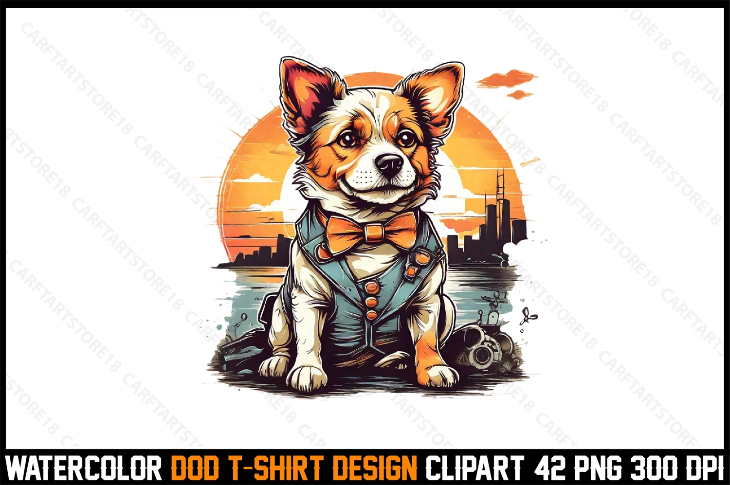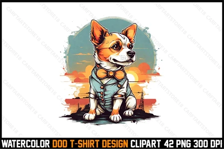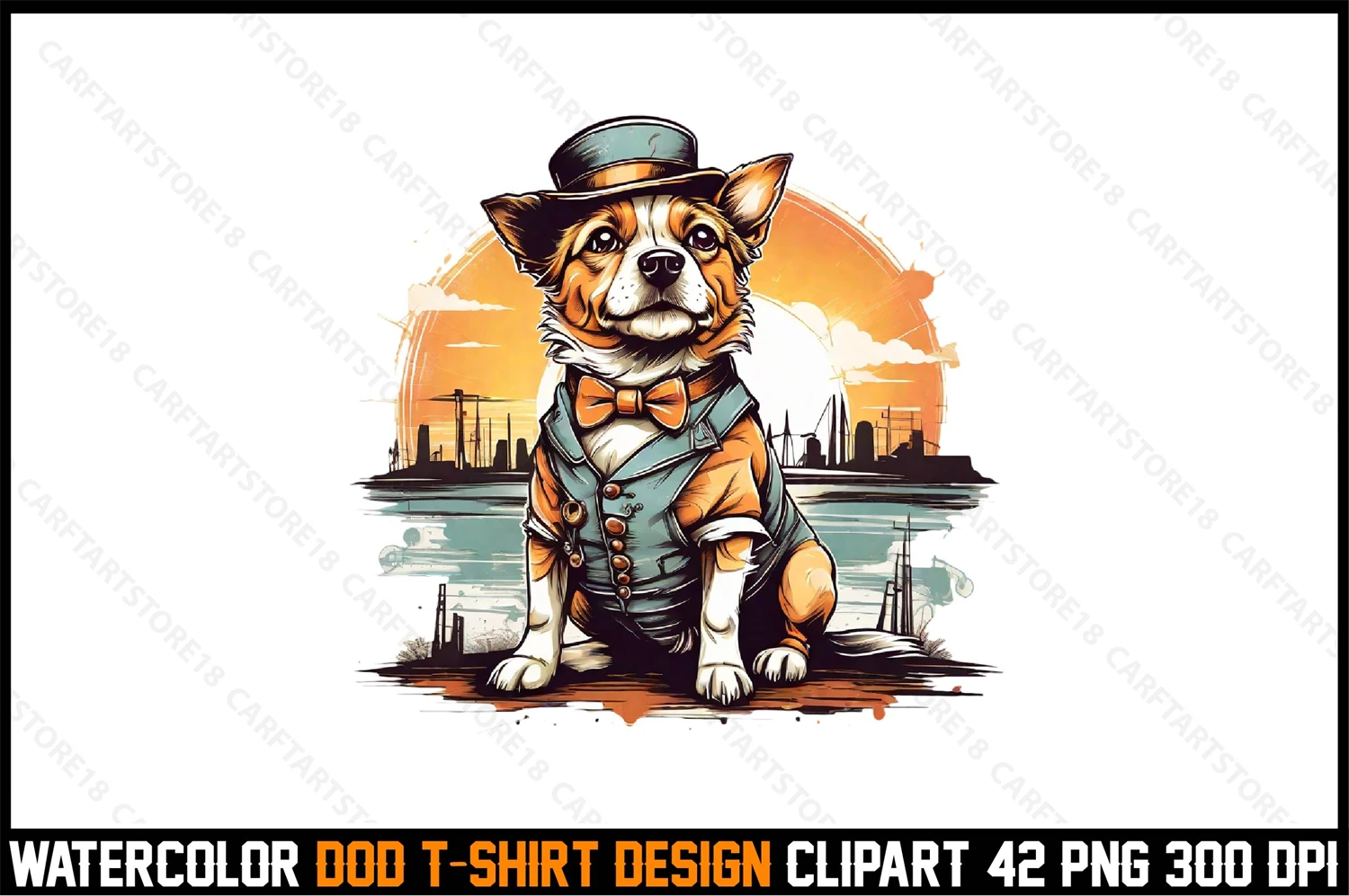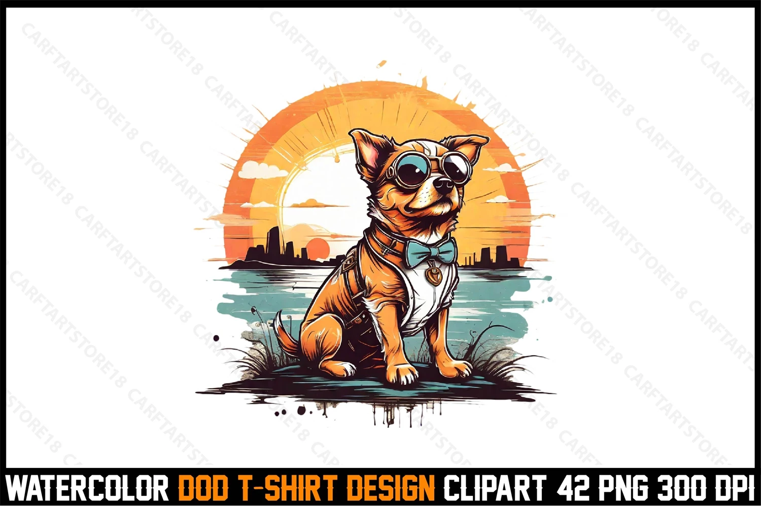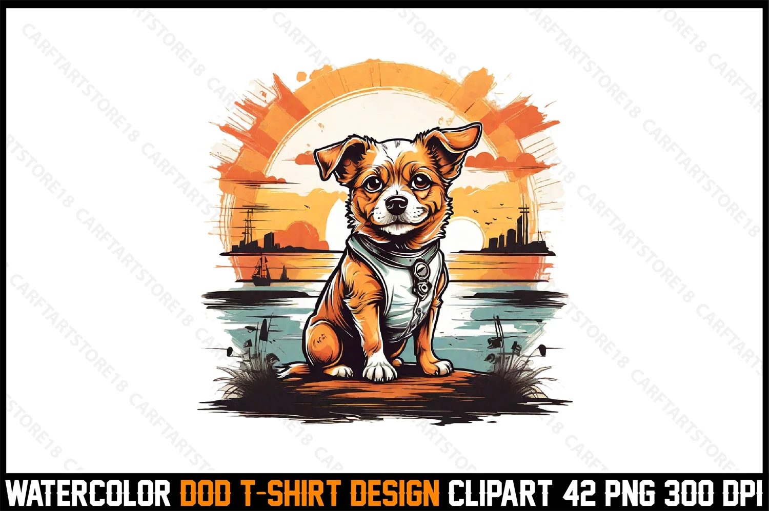 Watercolor Dog T-Shirt Design Clipart T-Shirt Design Bundle digital download cutting file for Circuit And Silhouette