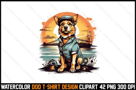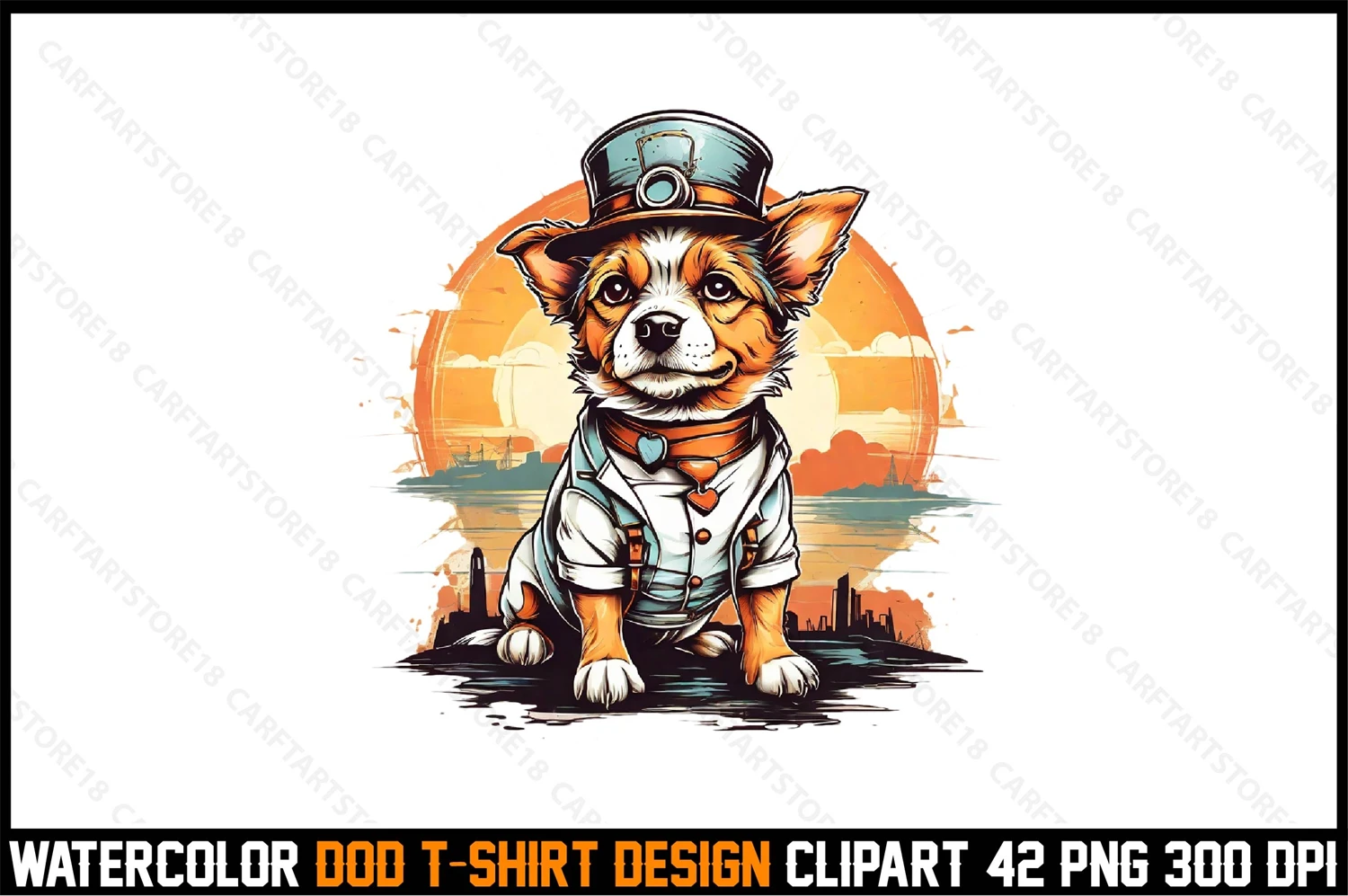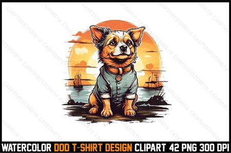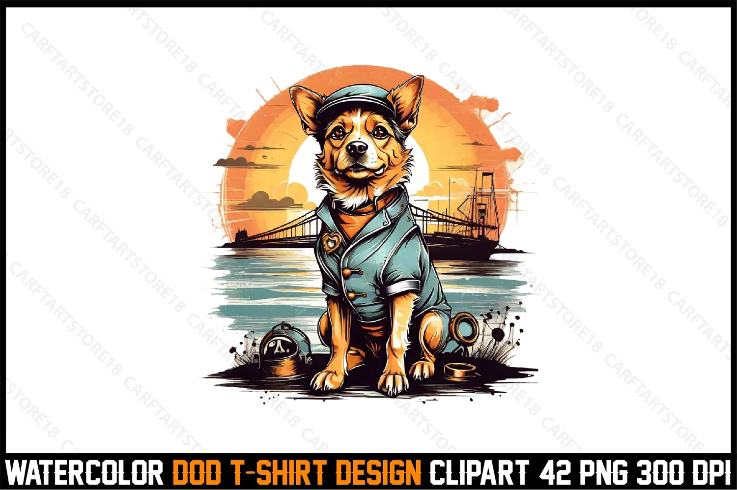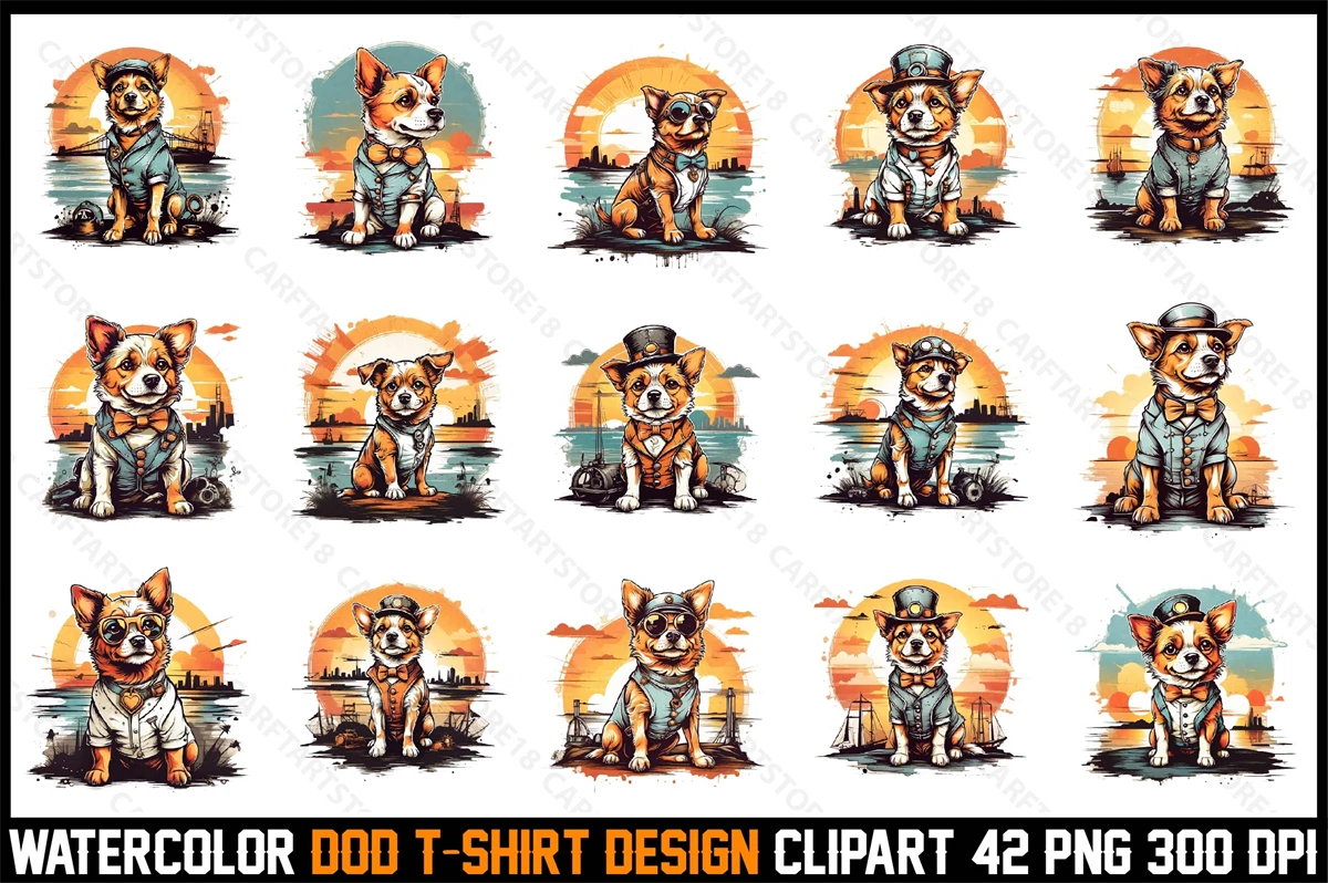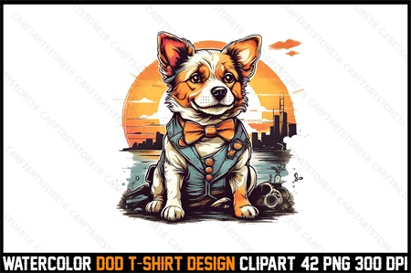 Watercolor Dog T-Shirt Design Clipart T-Shirt Design Bundle digital download cutting file for Circuit And Silhouette