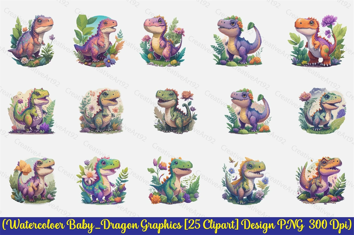Watercolor, Dragon clipart, Graphics Design Single FILE INCLUDED: