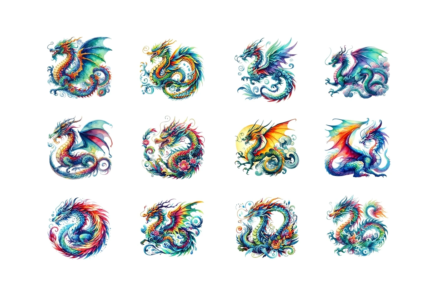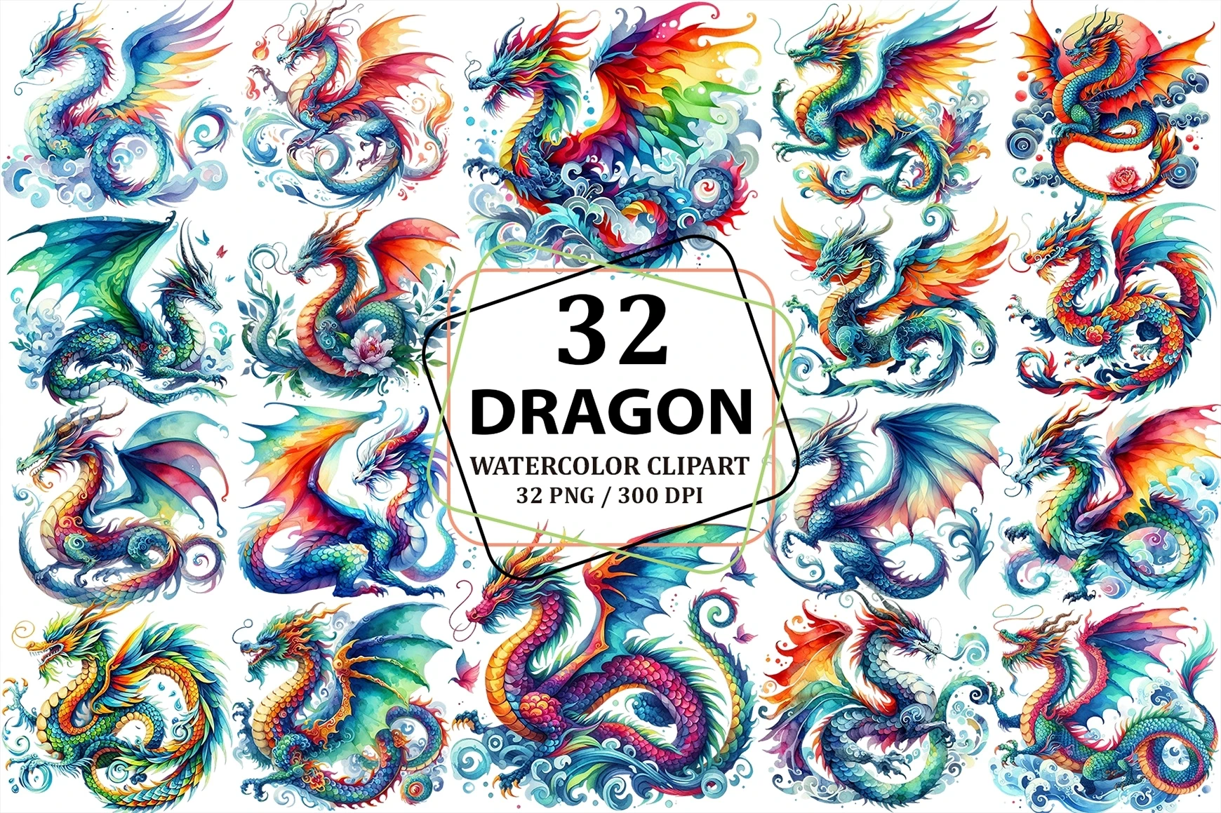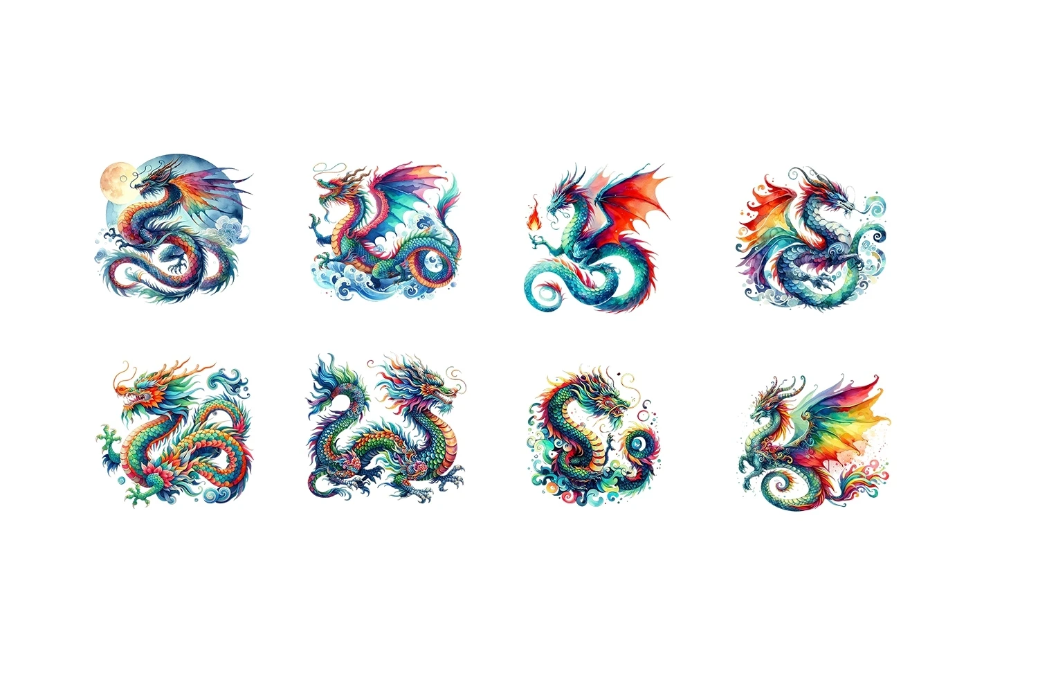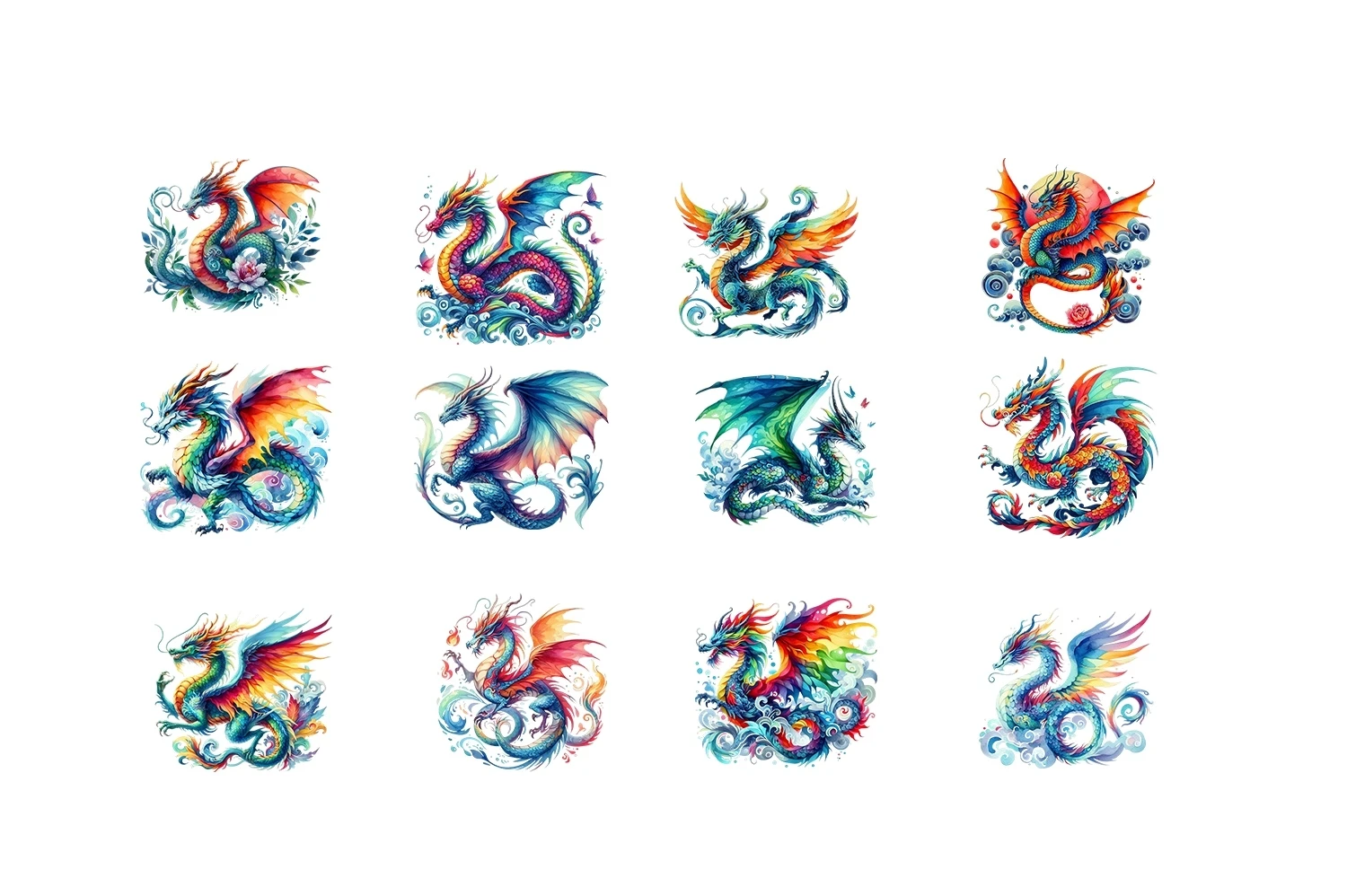 Watercolor Dragon Clipart Sublimation PNG (AI-generated).