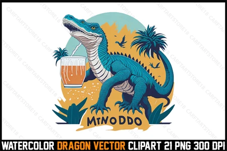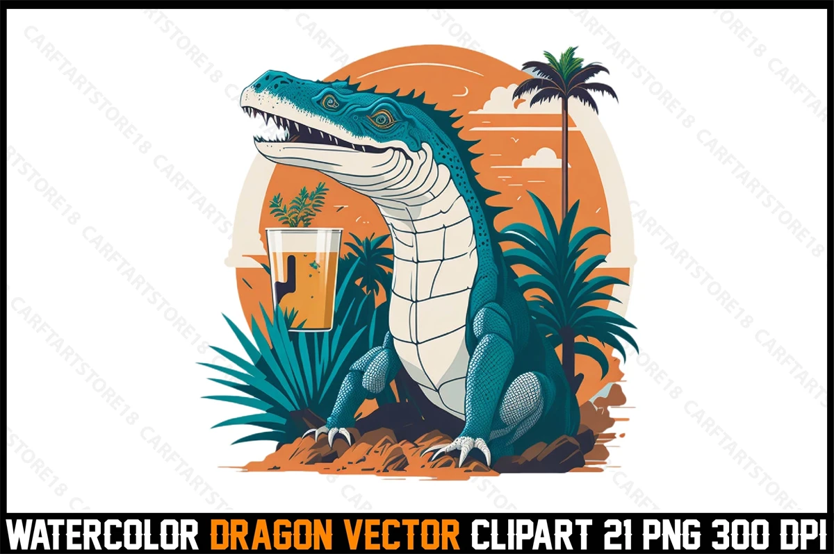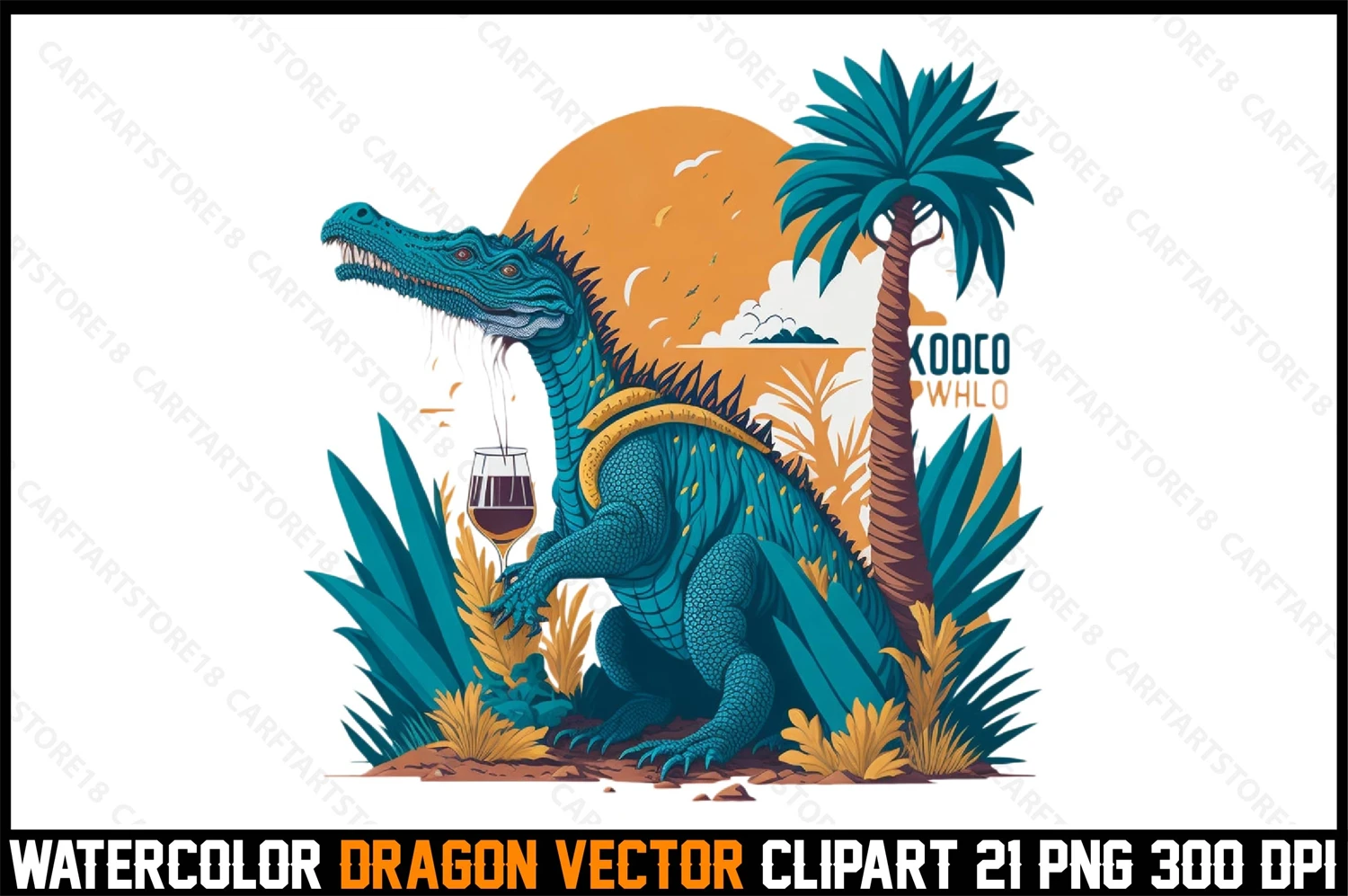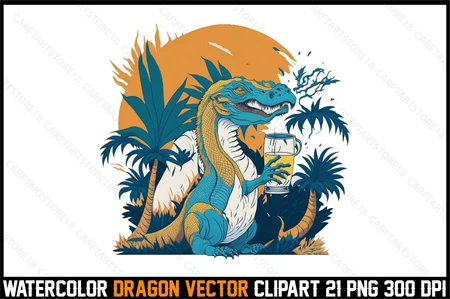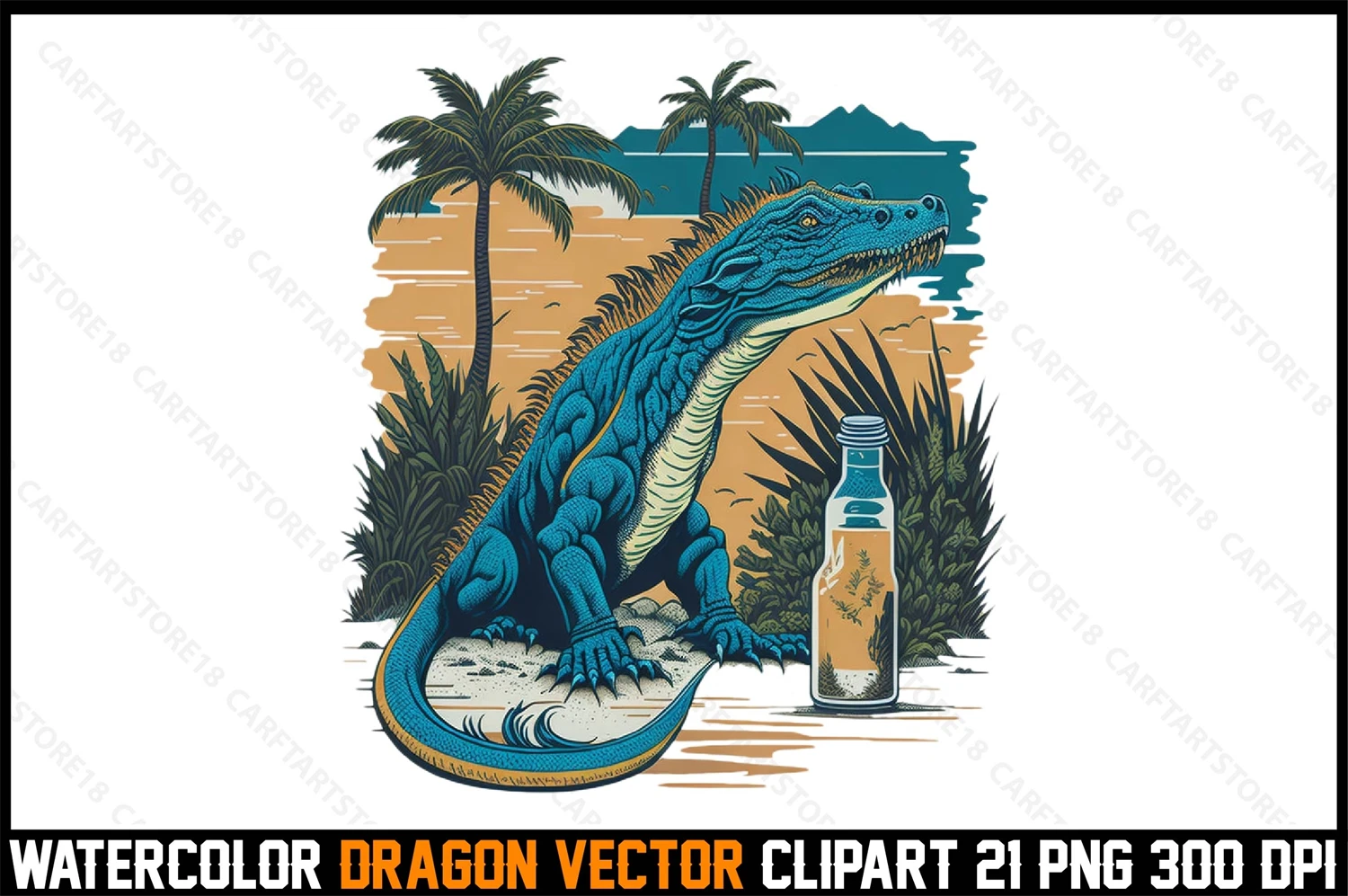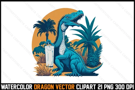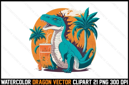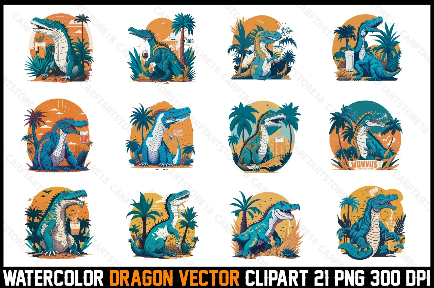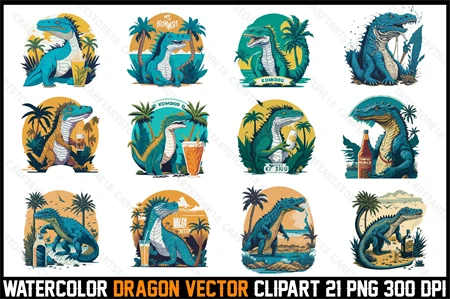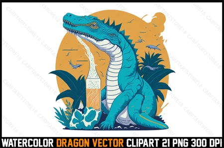 Watercolor Dragon Clipart T-Shirt Design Bundle digital download cutting file for Circuit And Silhouette