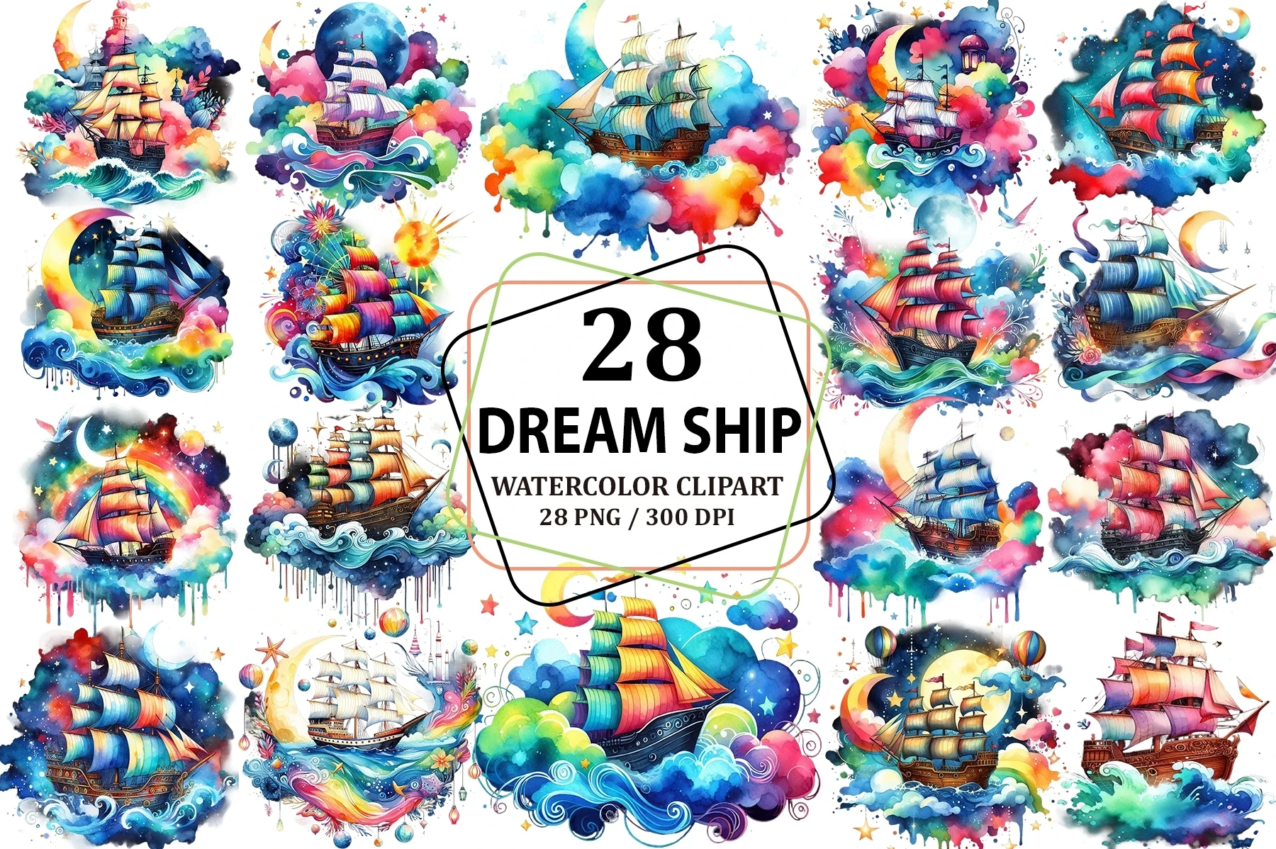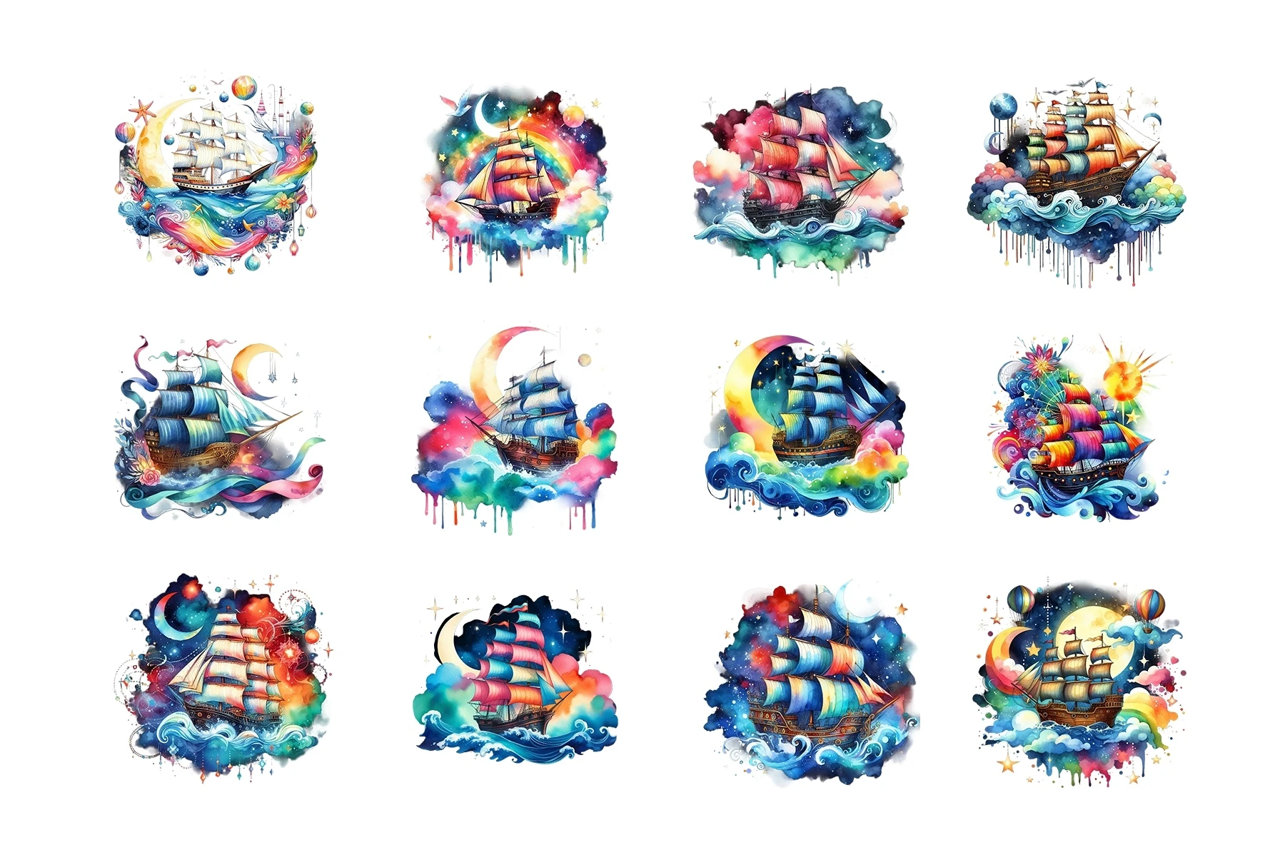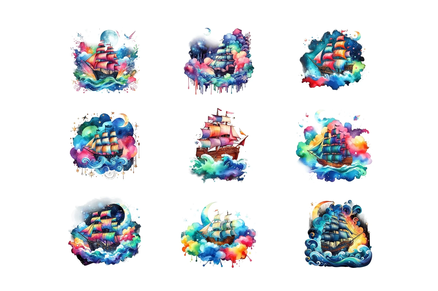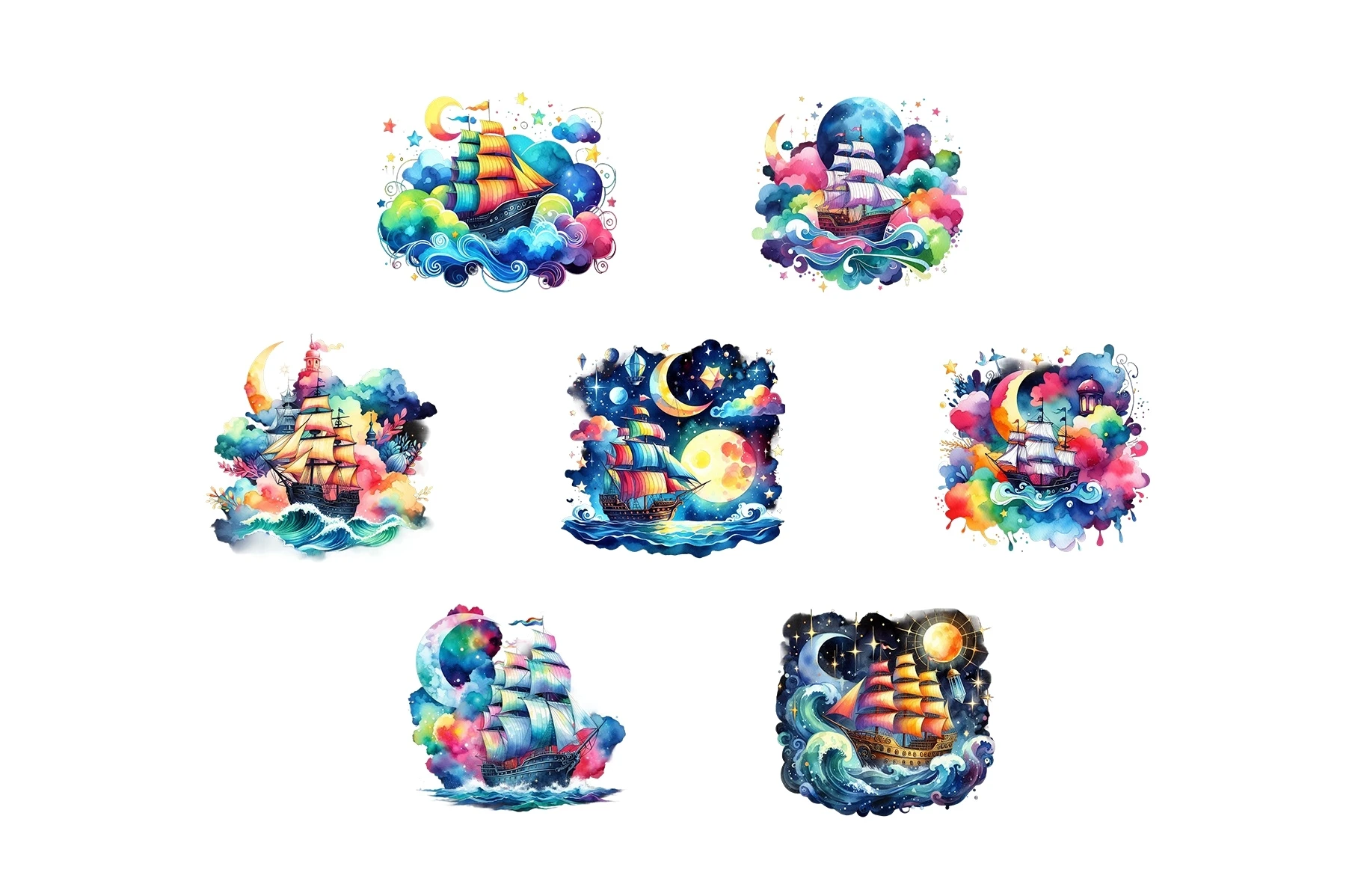 Watercolor Dream Ship Clipart Sublimation PNG (AI-generated).