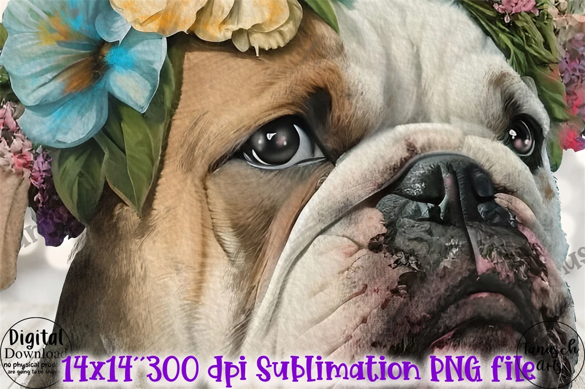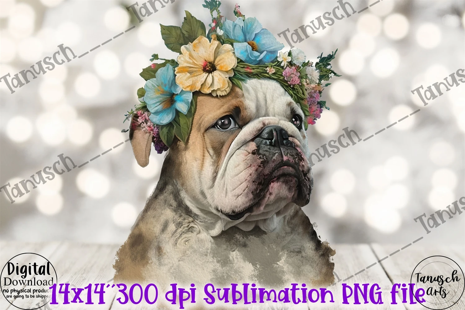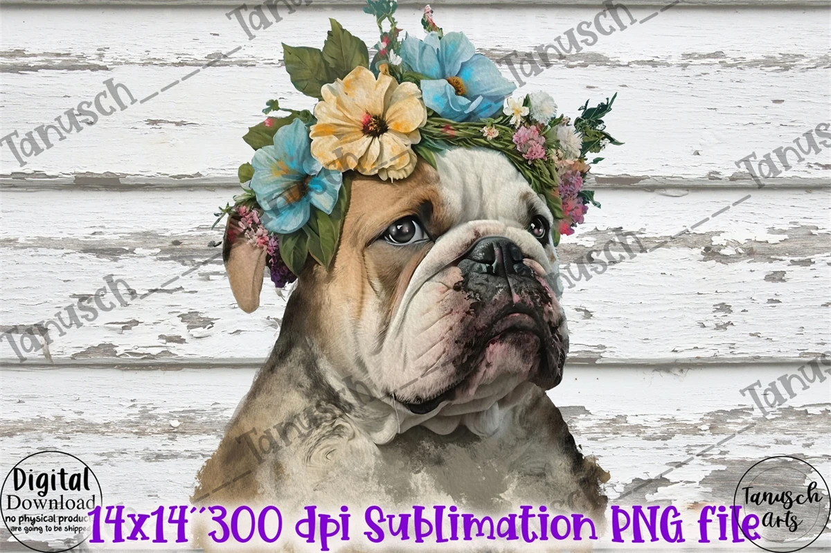 Hand painted cute Watercolor and mixed media French Bulldog girl with Flowers Sublimation