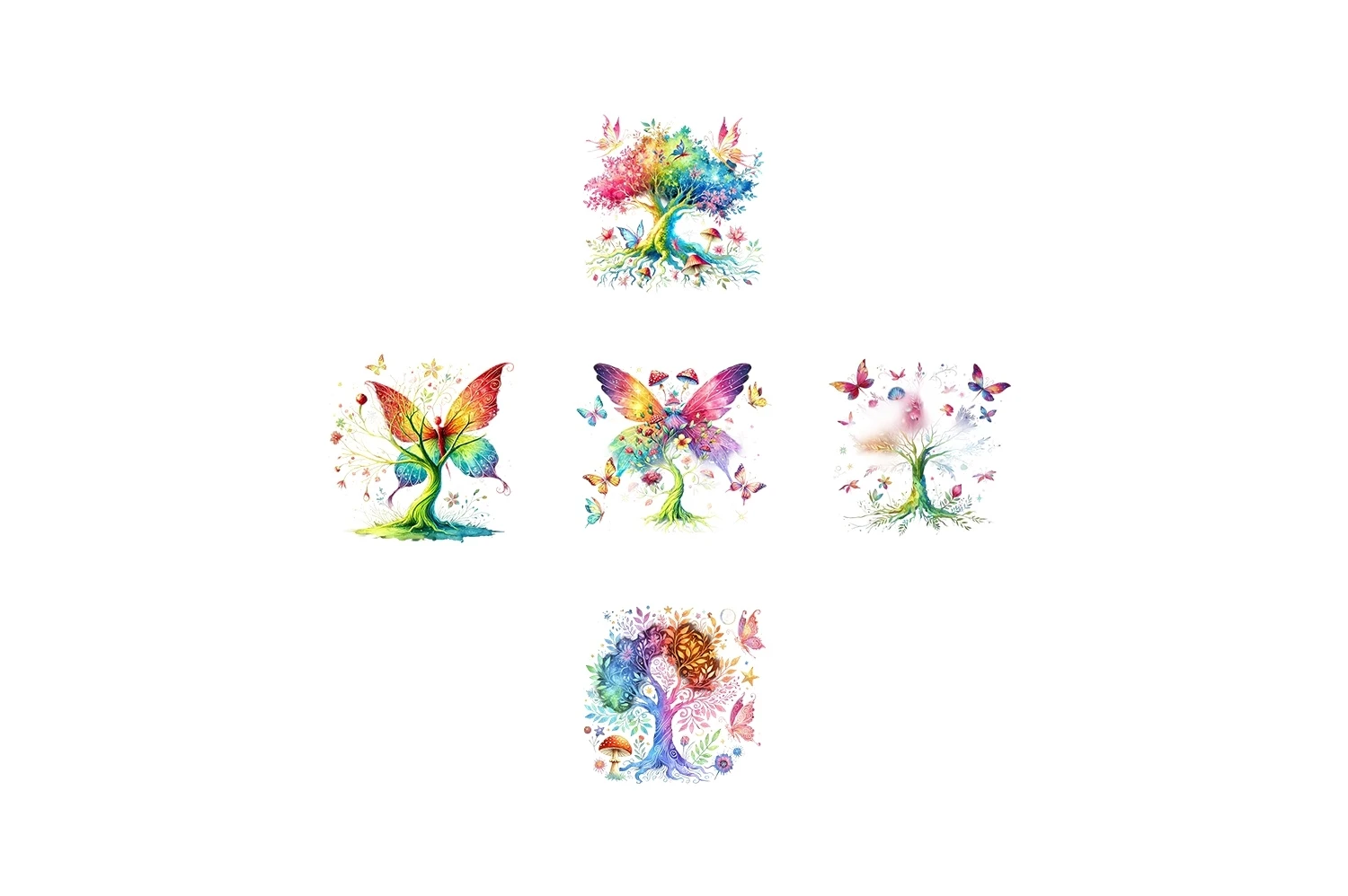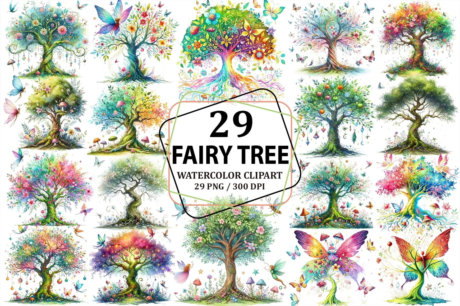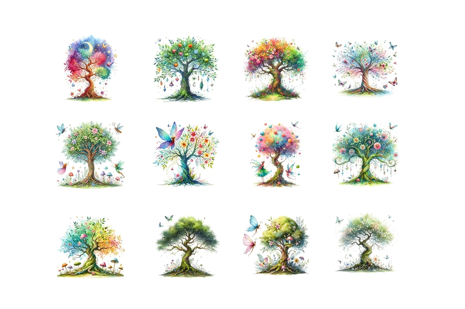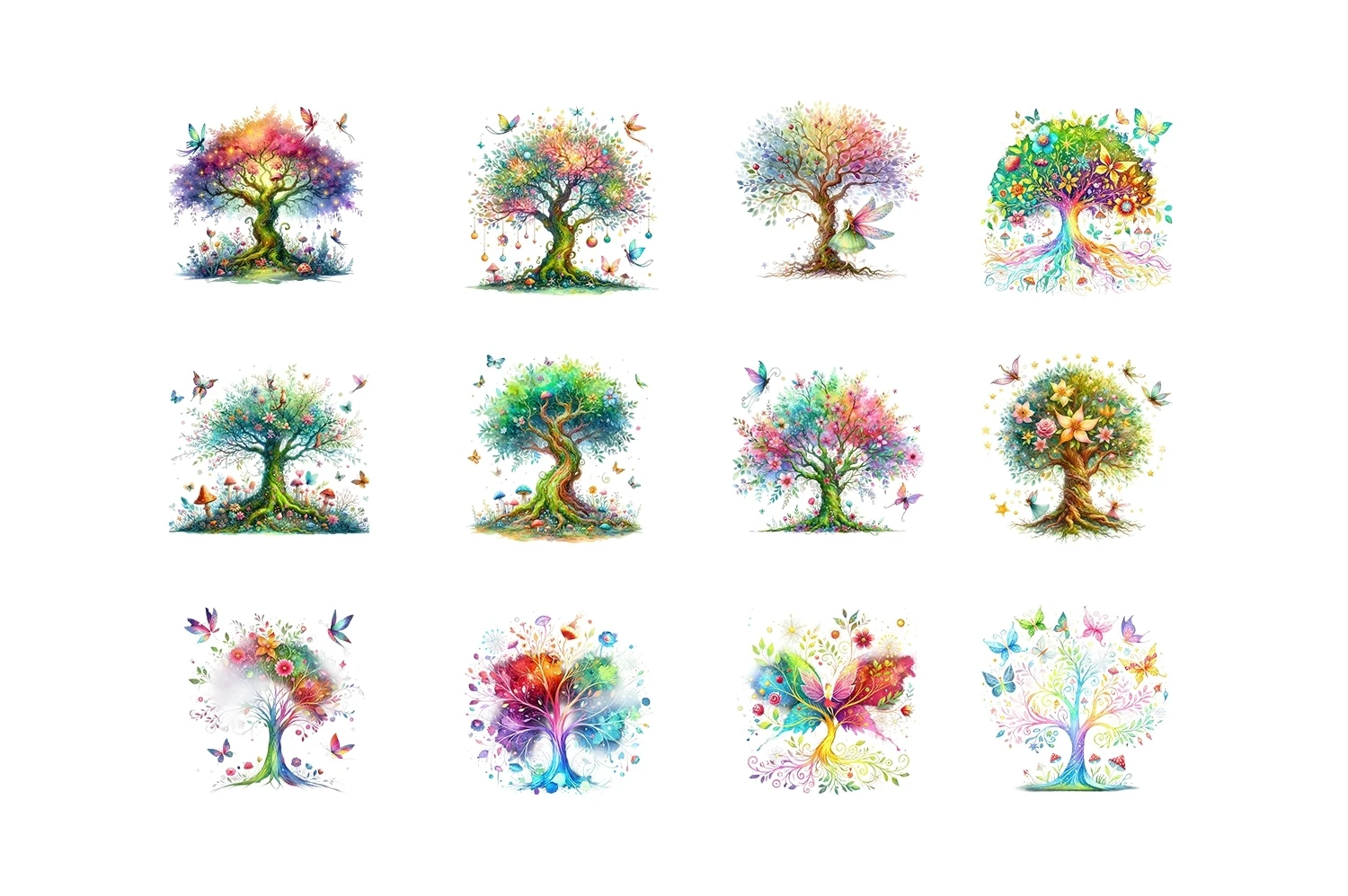 Watercolor Fairy Tree Clipart Sublimation PNG (AI-generated).