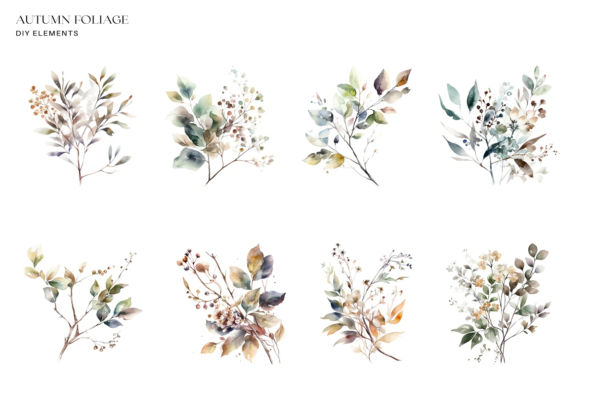 Immerse yourself in the enchanting beauty of autumn with this captivating watercolor leafy clipart set. Each hand-painted illustration showcases the vibrant hues and intricate details of autumn leaves, bringing the essence of the season to life. Perfect for adding a touch of nature-inspired charm to your DIY projects, designs, and creative endeavors. Let these leafy wonders infuse your creations with the warm and cozy spirit of fall.