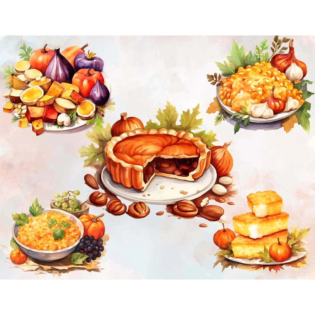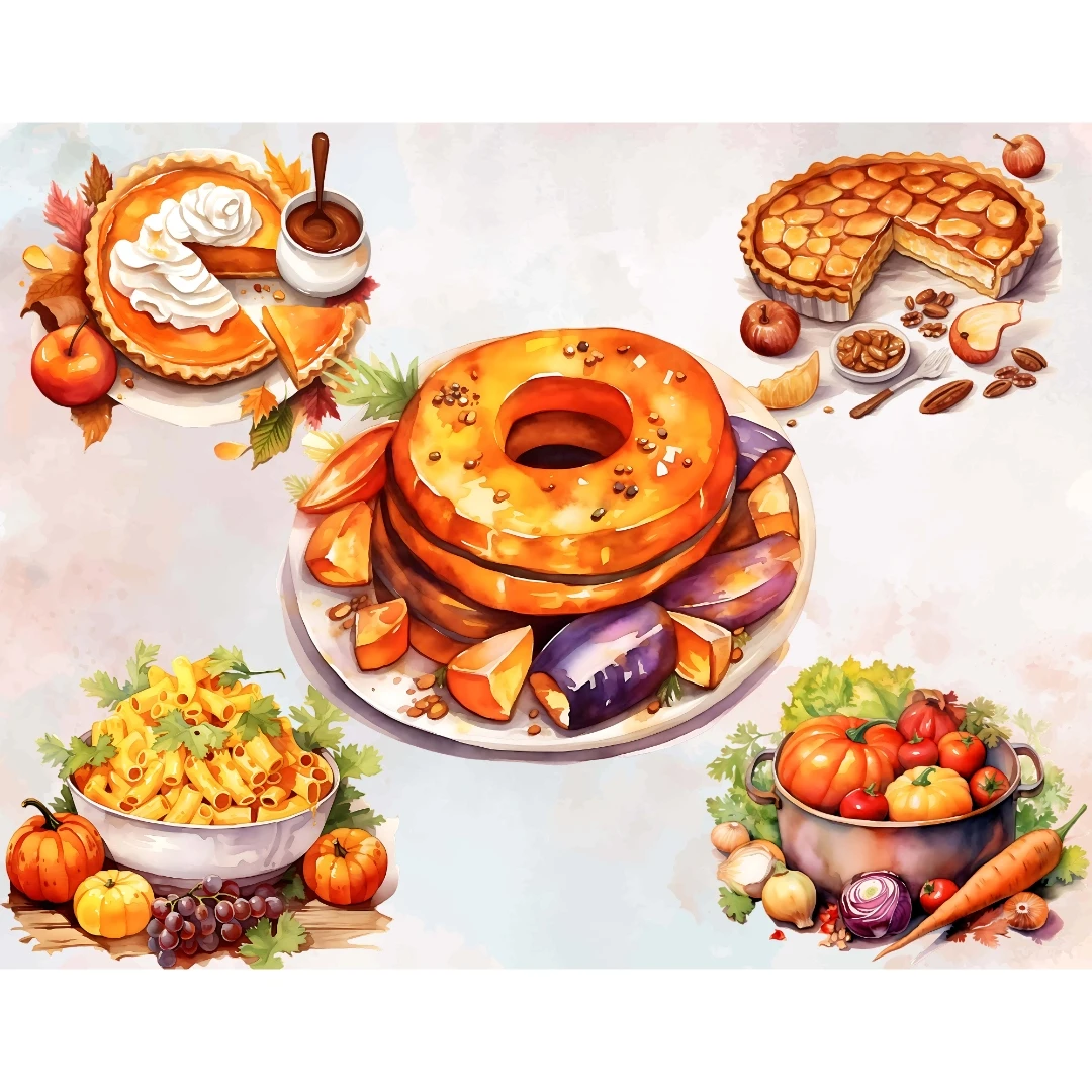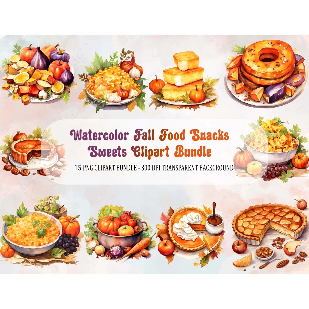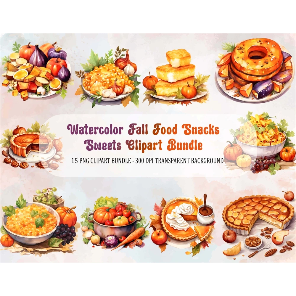 Watercolor Fall Food Snacks Sweets Desert Clipart Bundle