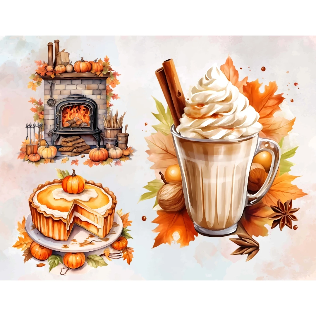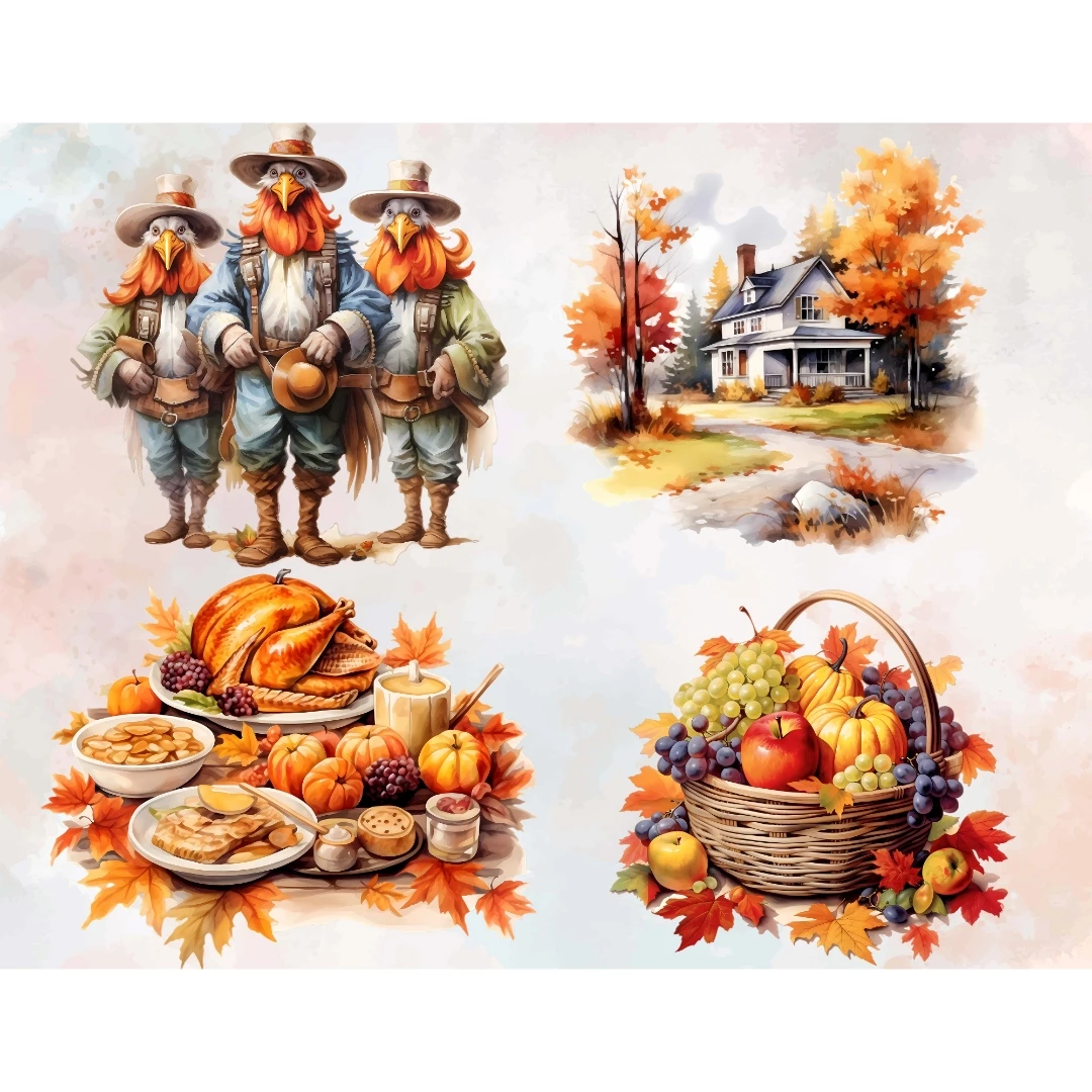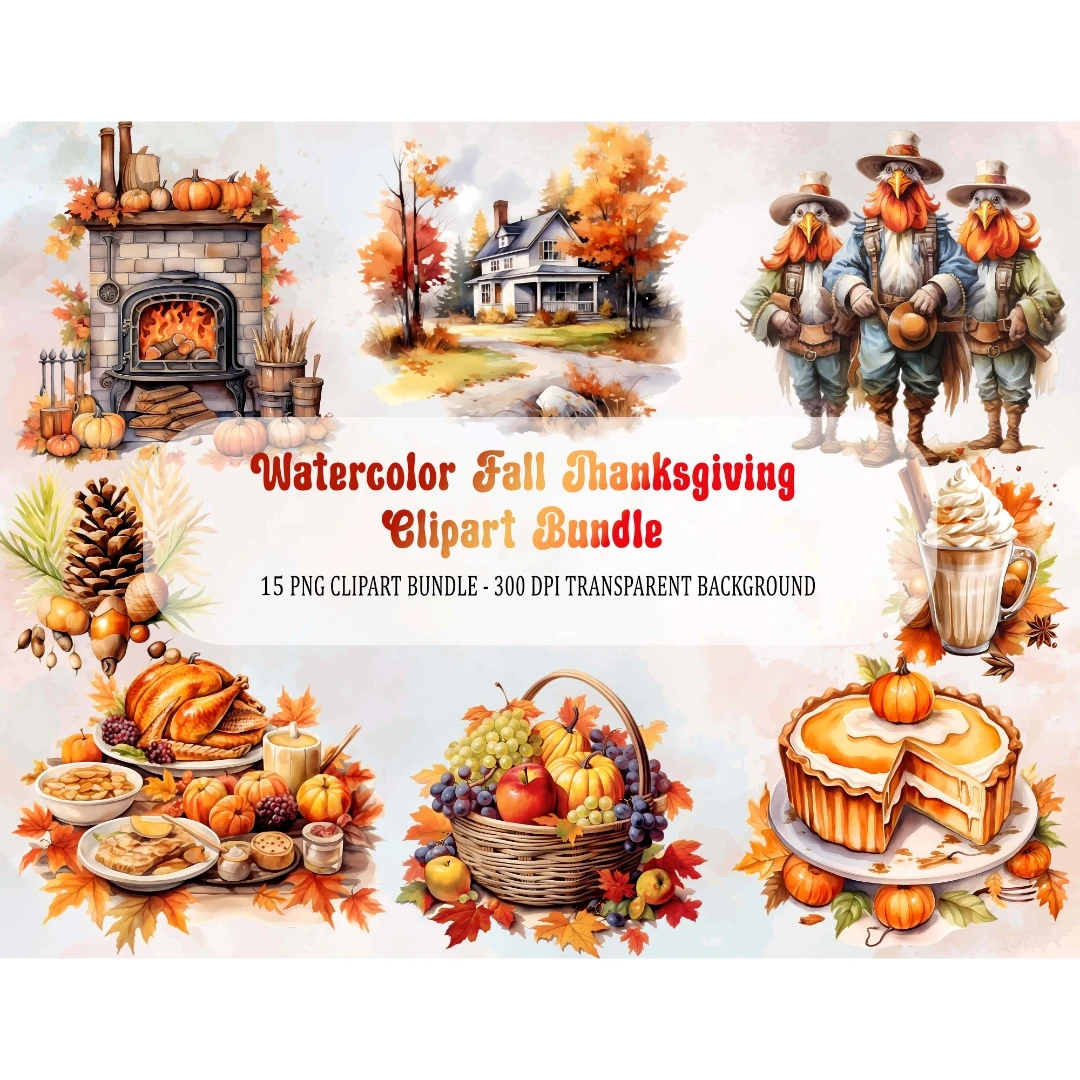 Watercolor Fall Thanksgiving Leaves Wreath Clipart Bundle