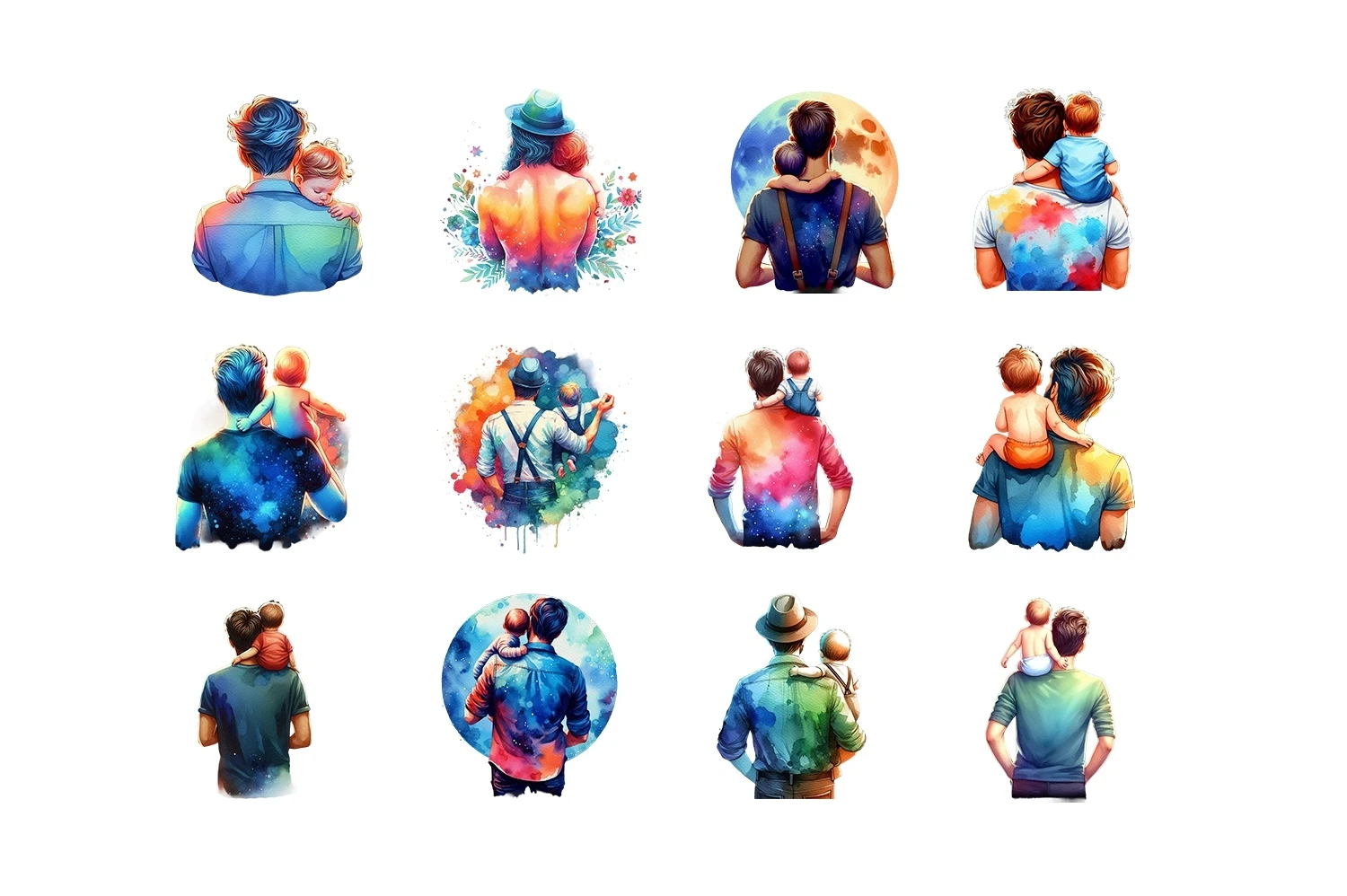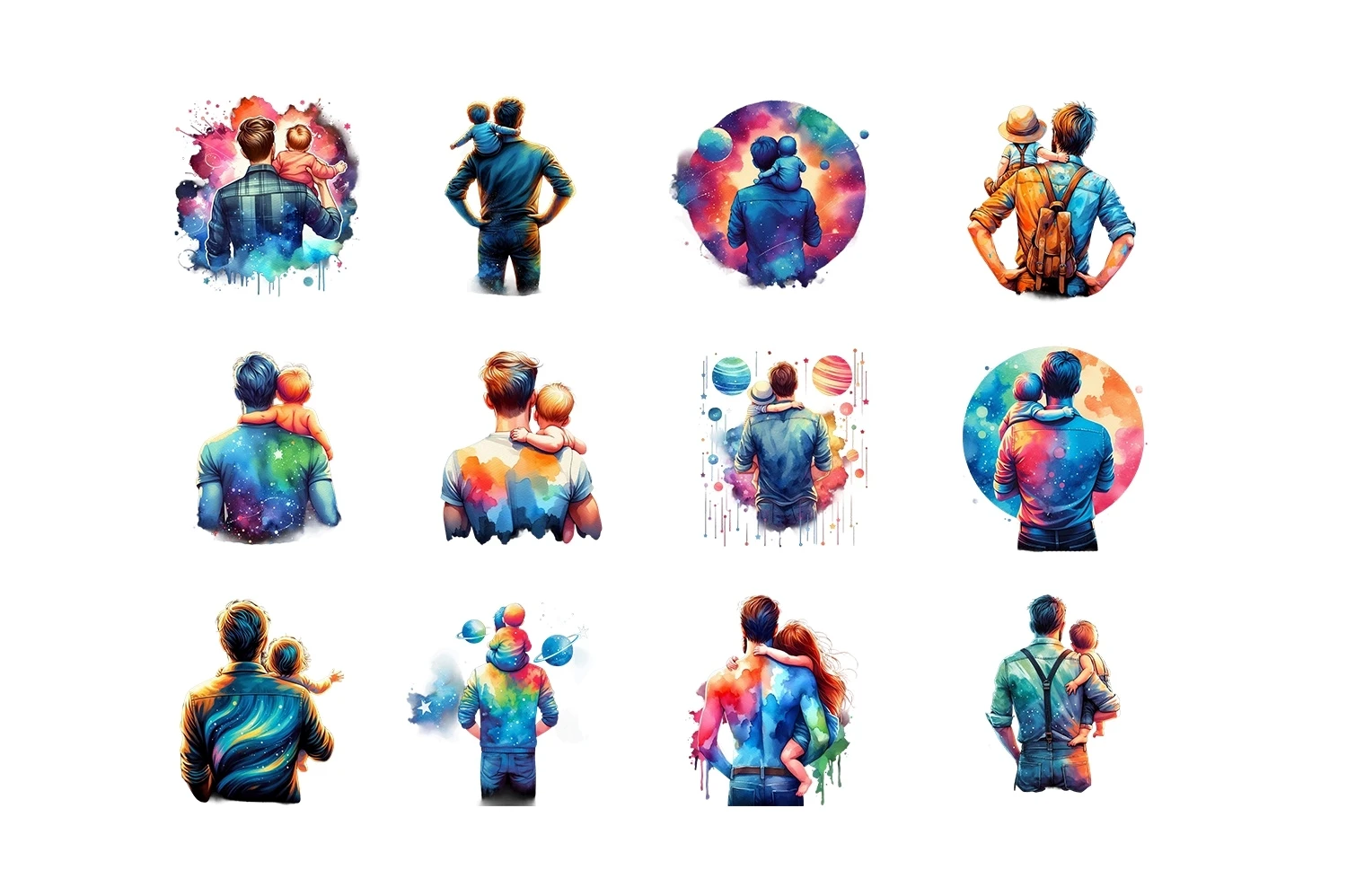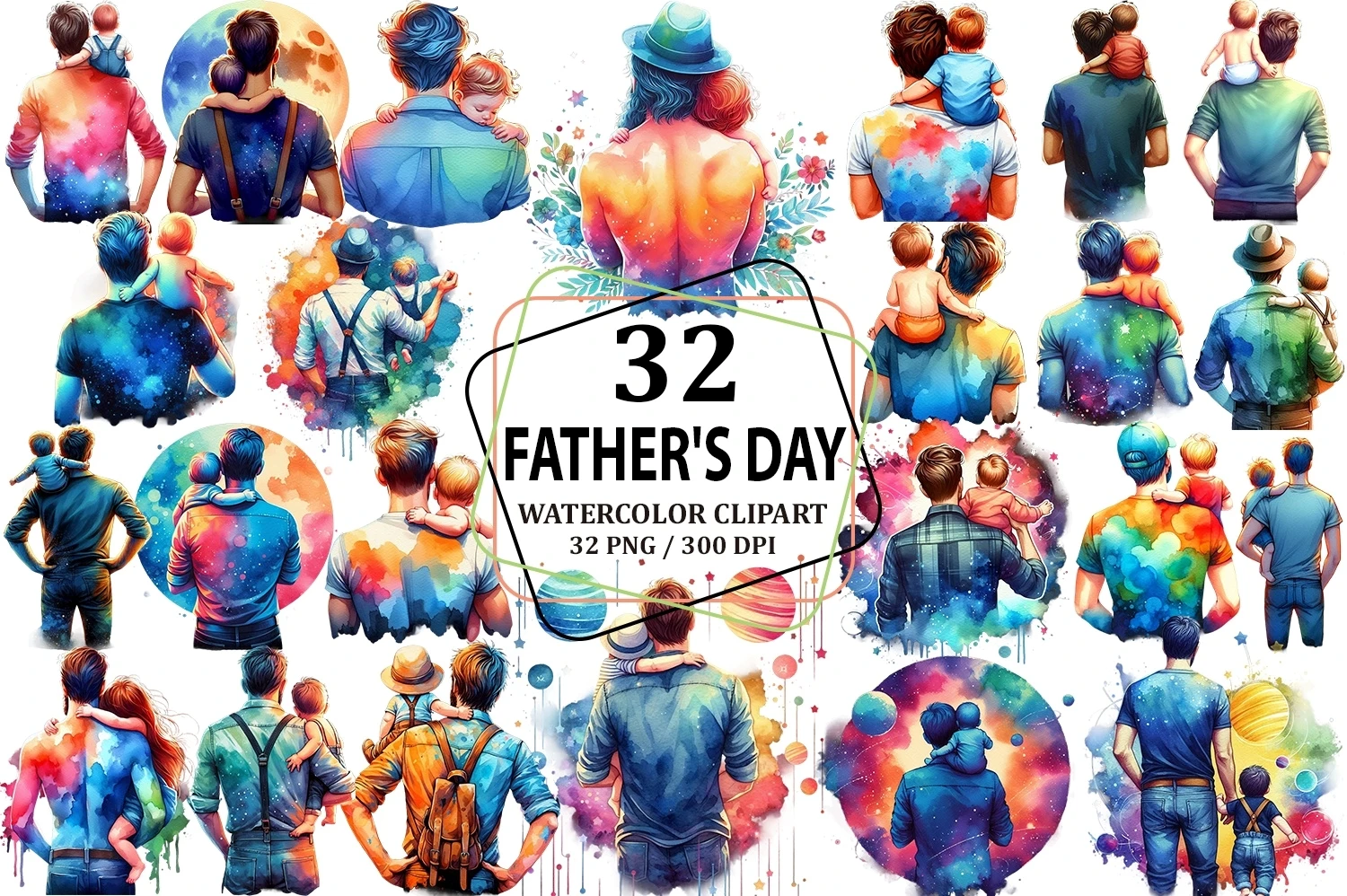 Watercolor Father's Day Sublimation Clipart PNG (AI-generated).