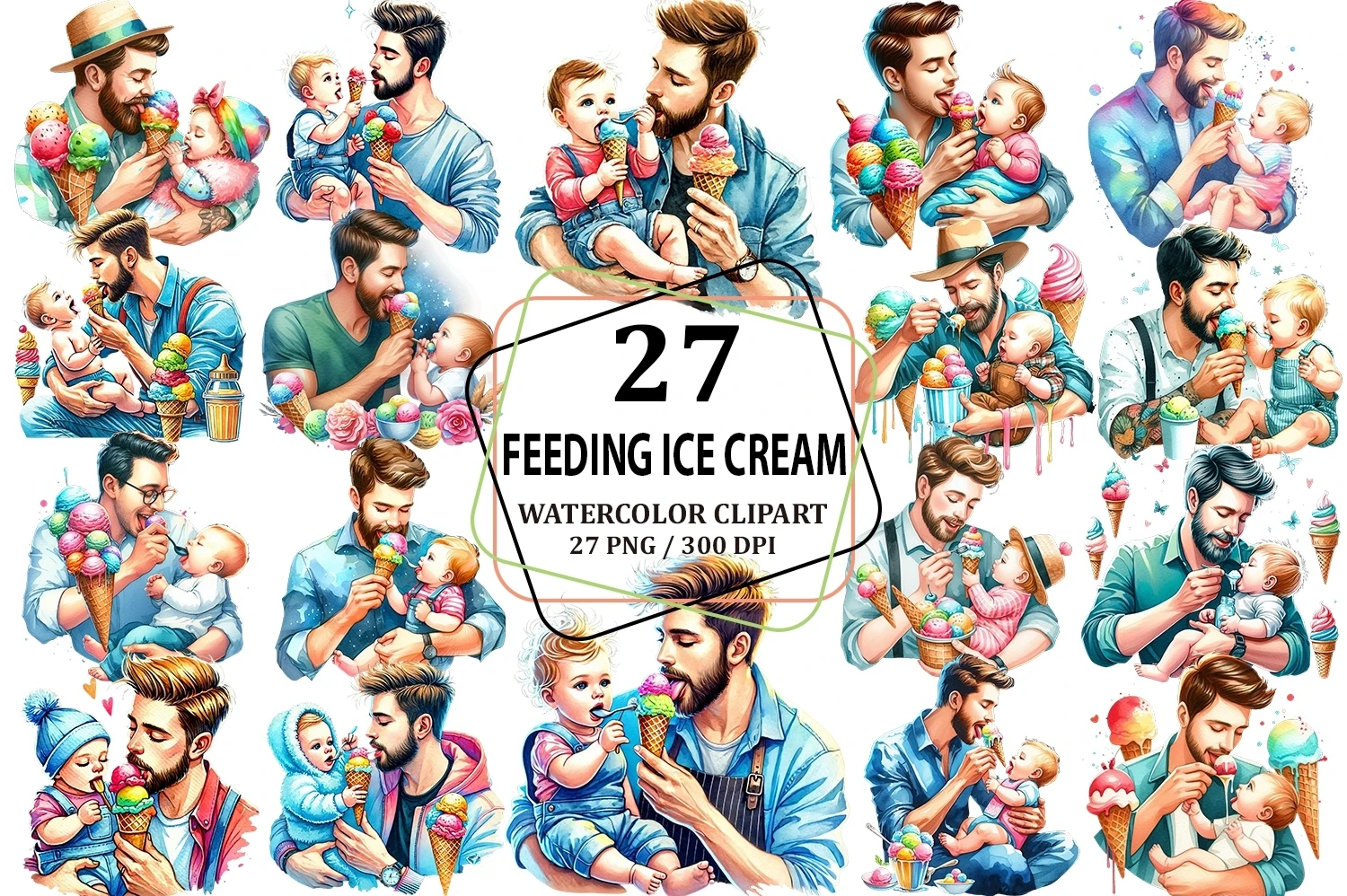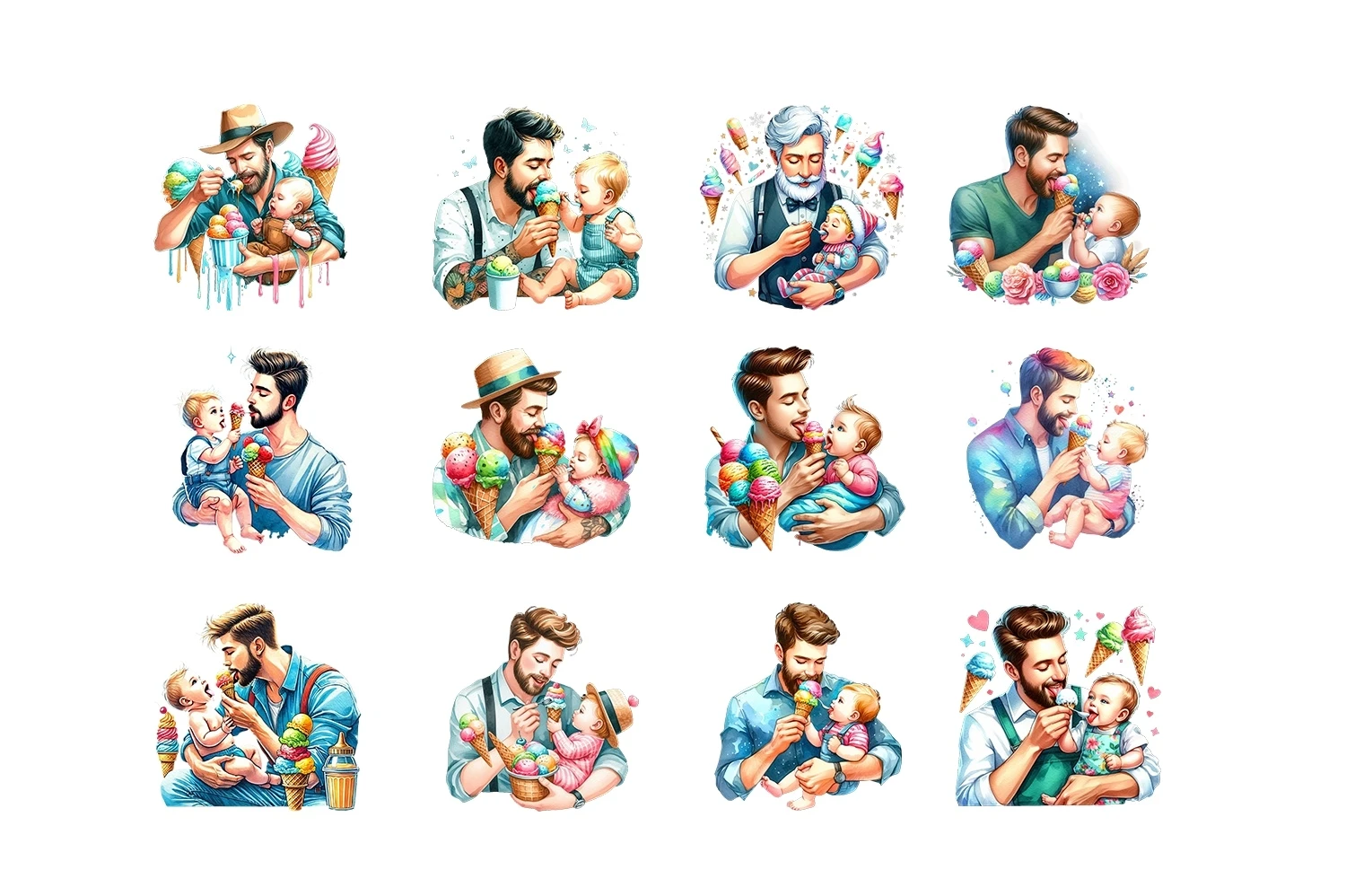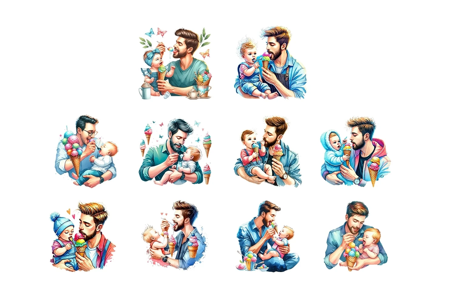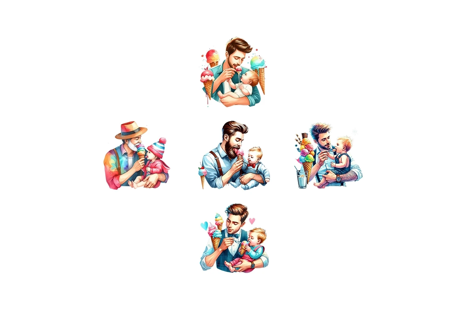 Watercolor Feeding Ice Cream Fathers Day Clipart Sublimation PNG (AI-generated).