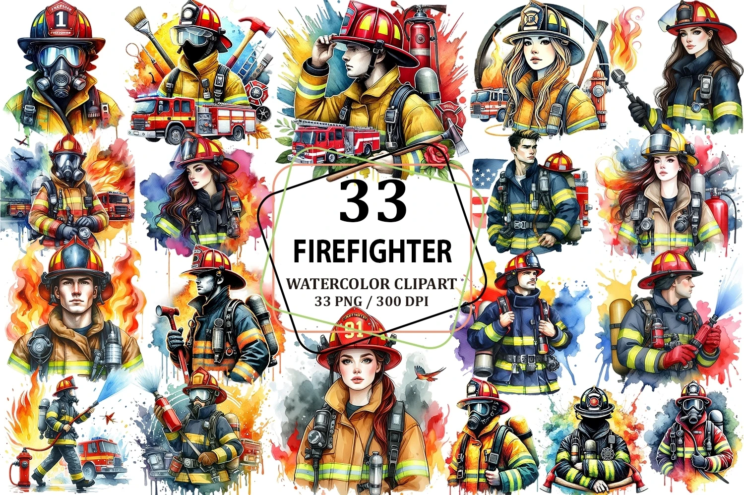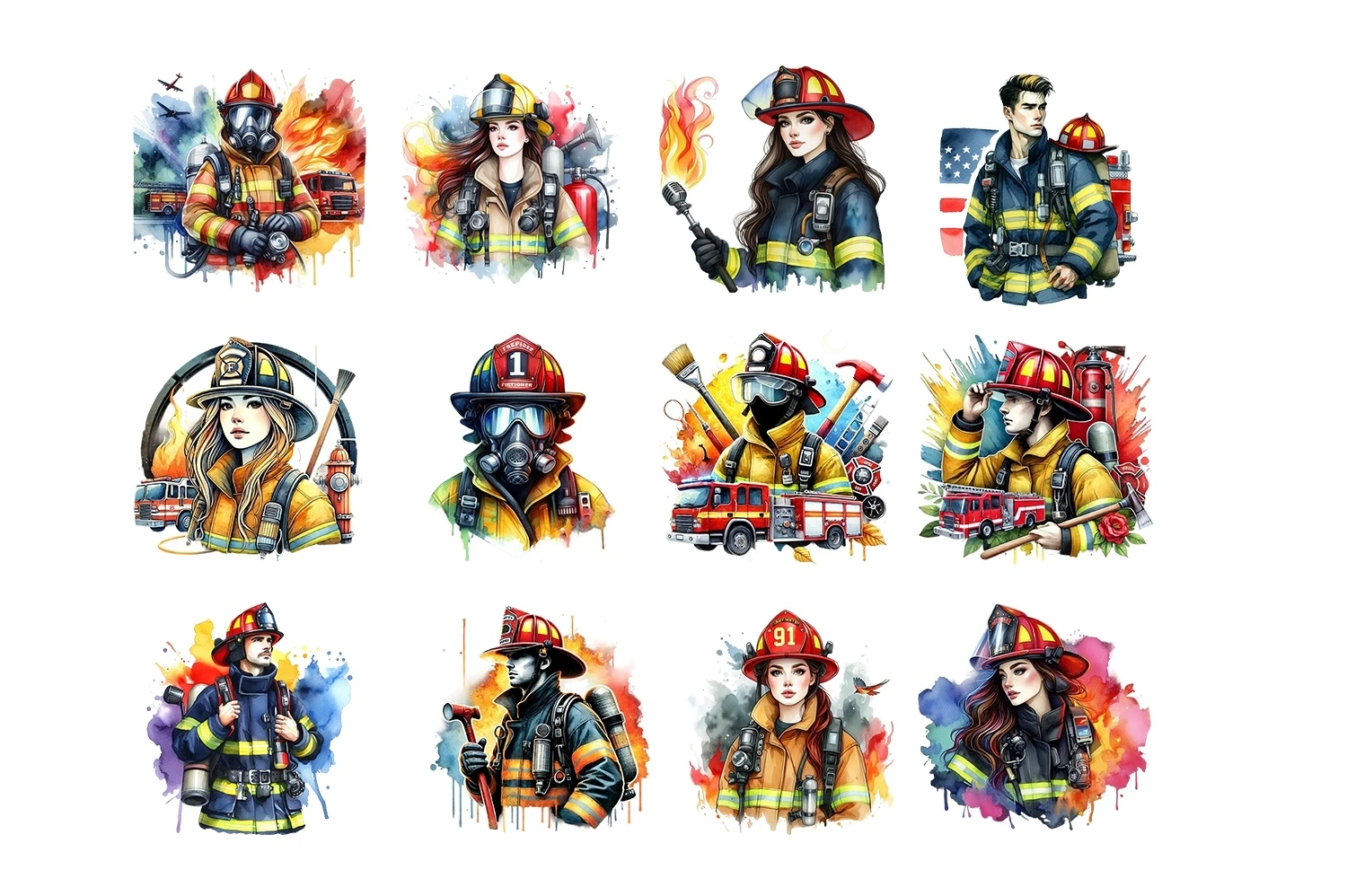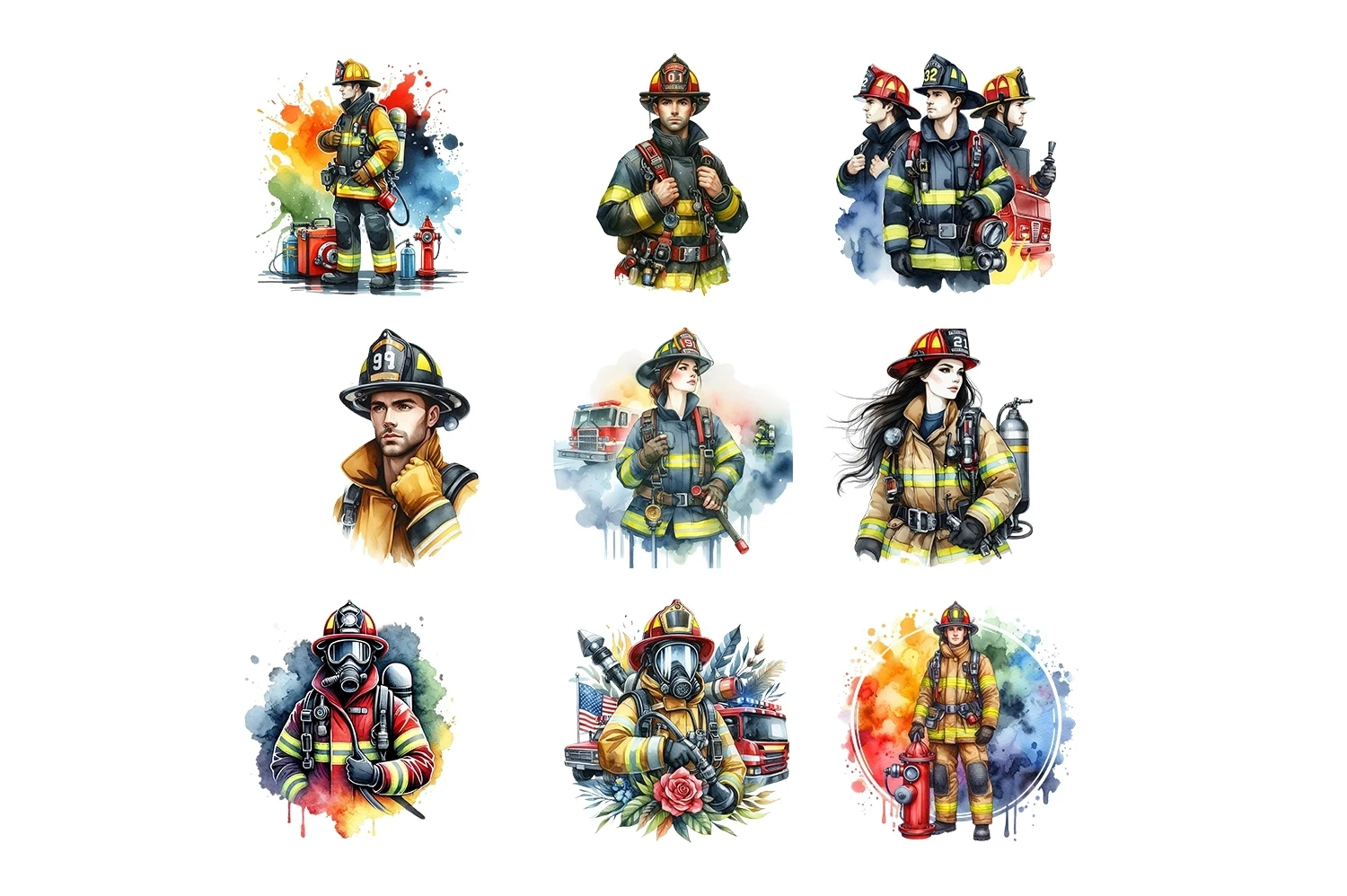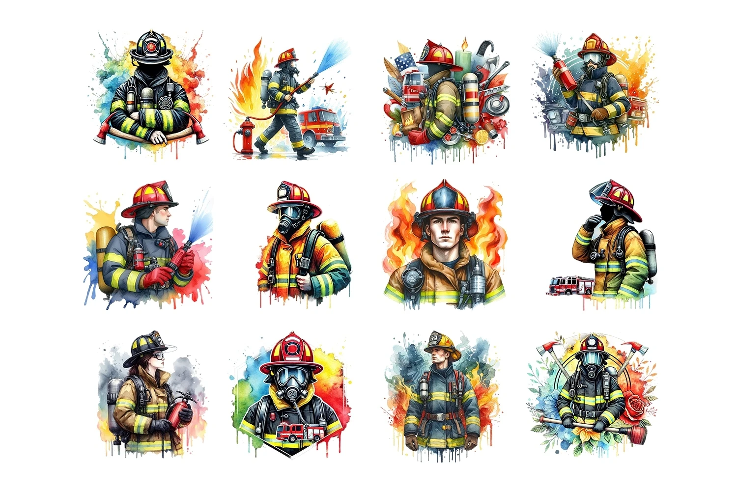 Watercolor Firefighter Clipart PNG Sublimation (AI-generated).
