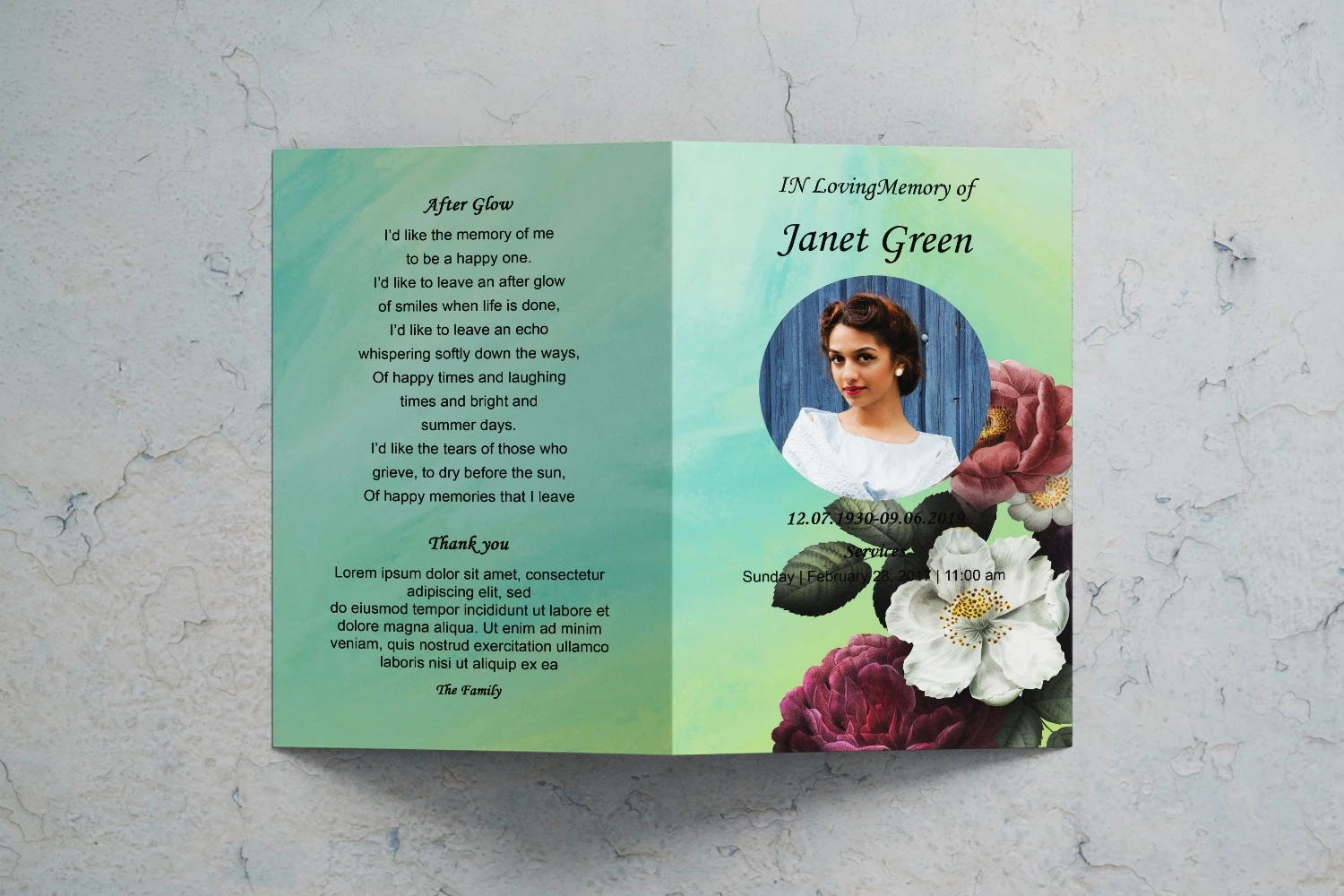 Beautiful Funeral Program template,easy to edit and print.