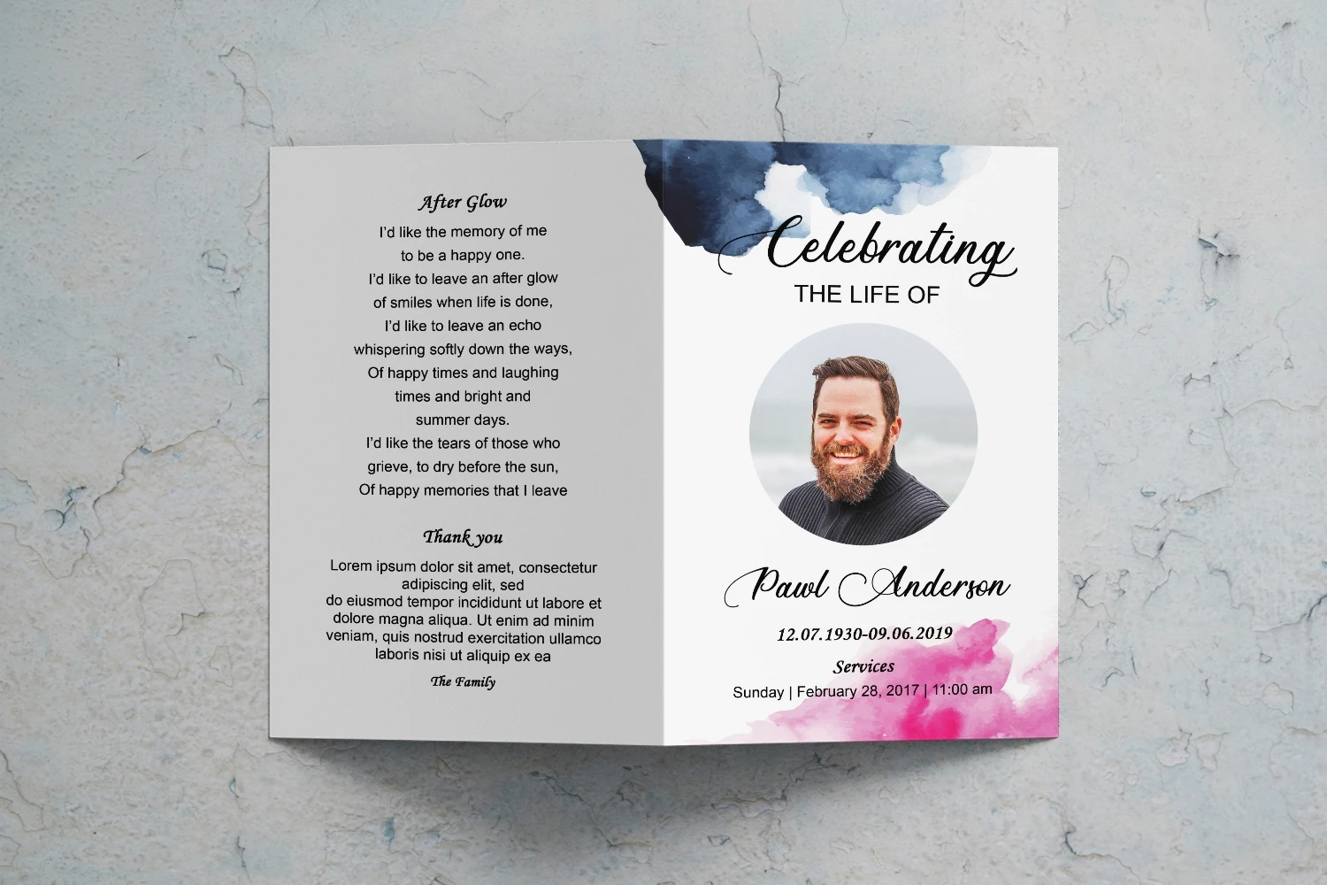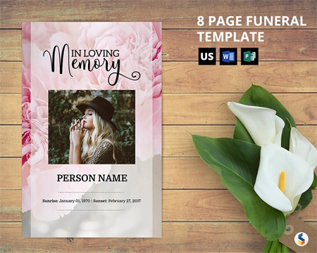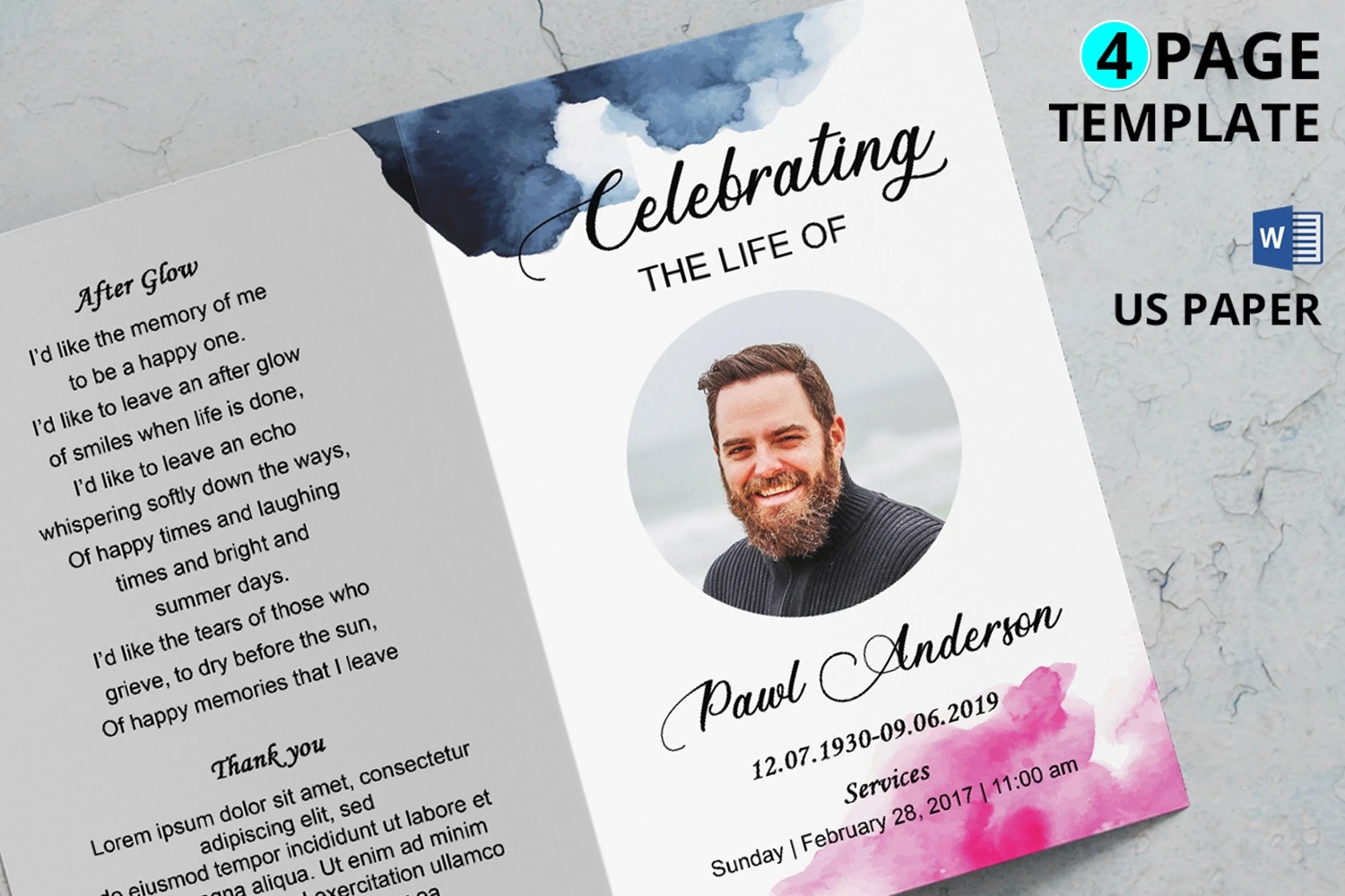 8.5x11 Inches Word, Publisher and CANVA Funeral Program Template.