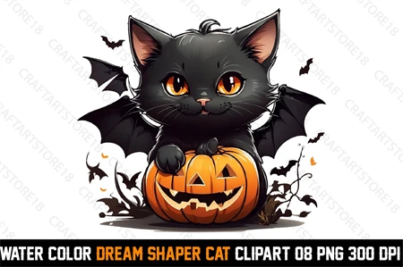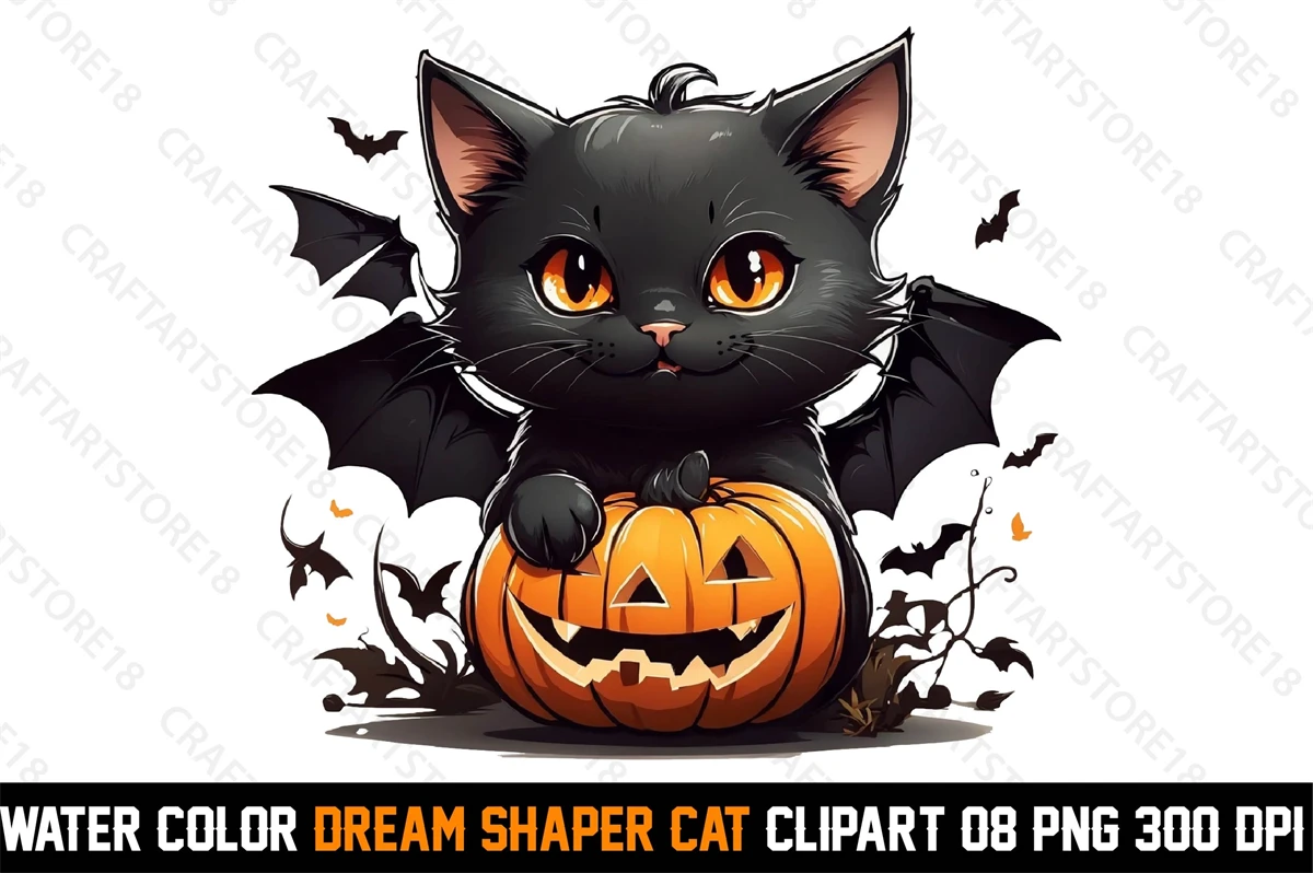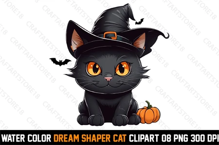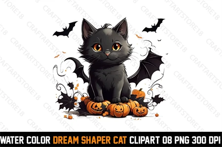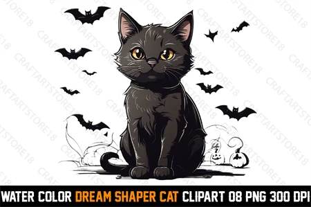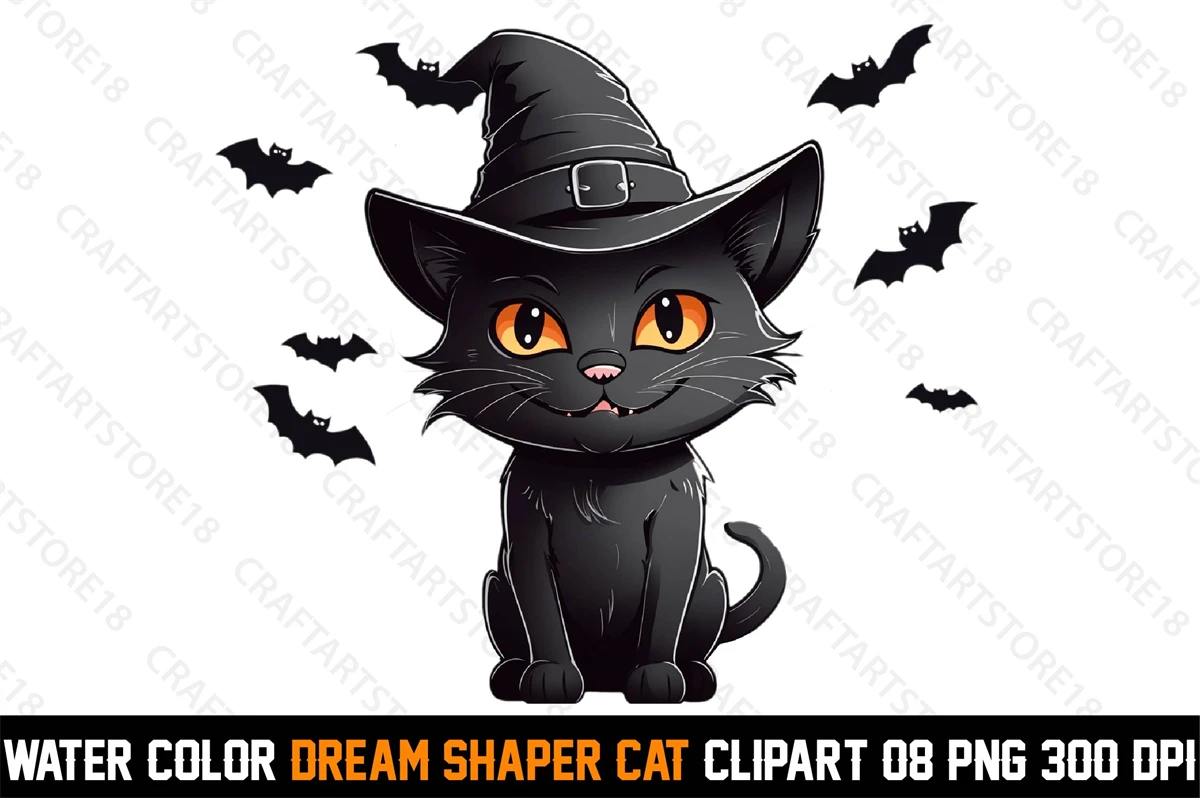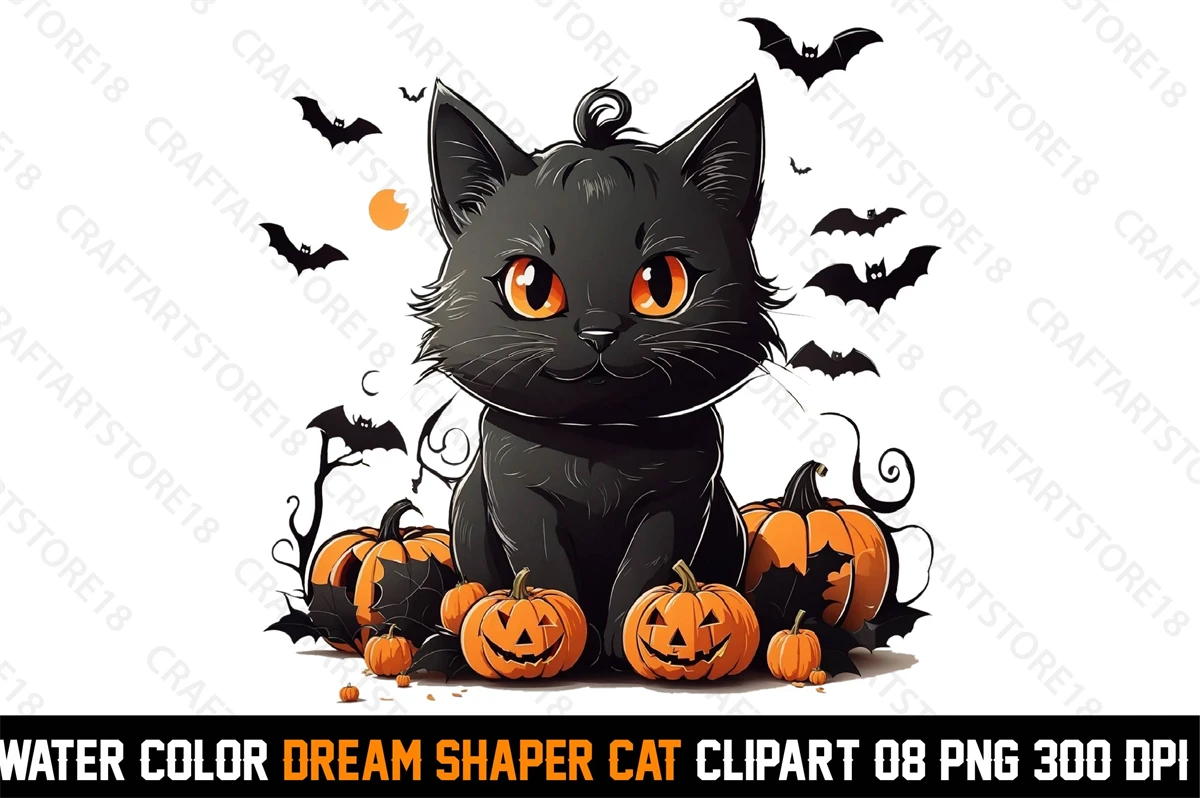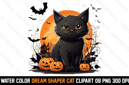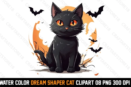 Watercolor Halloween Cat Clipart T-Shirt Design Bundle digital download cutting file for Circuit And Silhouette