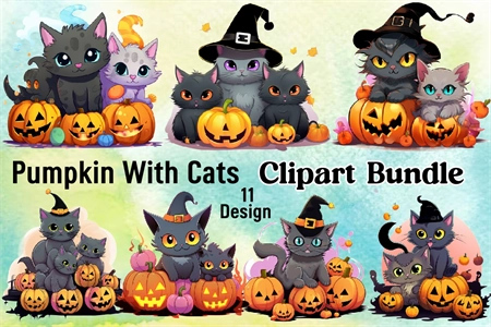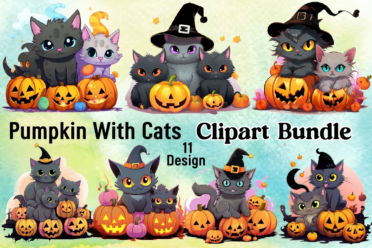 Watercolor Halloween Cat Sublimation Design Bundle