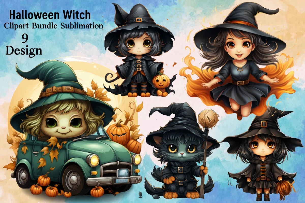 Watercolor Halloween Clipart PNG Bundle