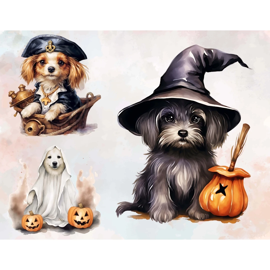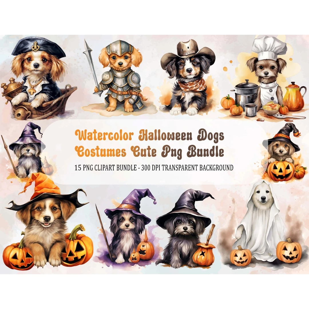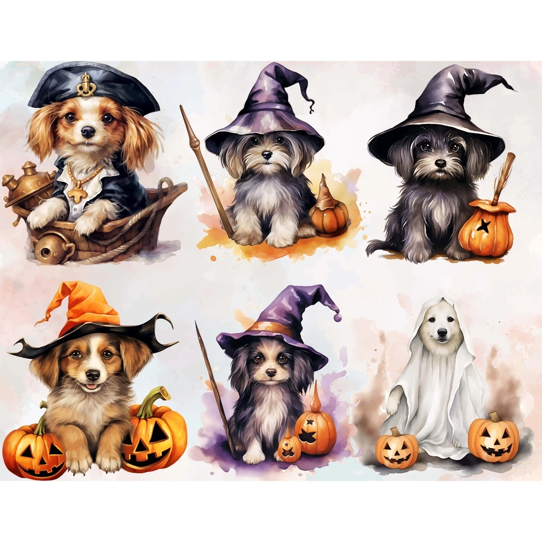 Watercolor Halloween Dogs Costumes Cute Witch Clipart Bundle