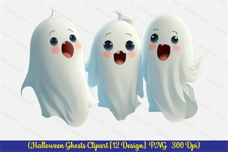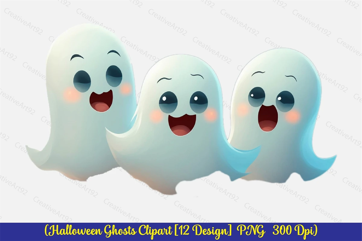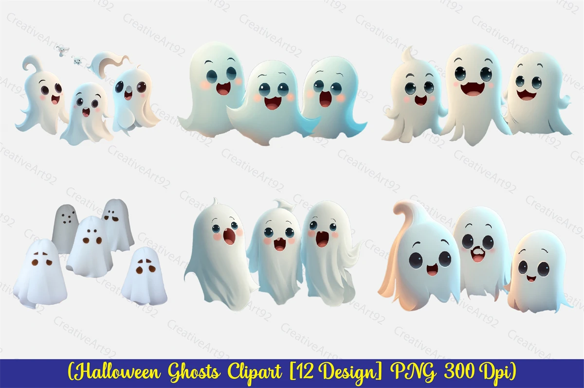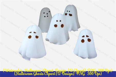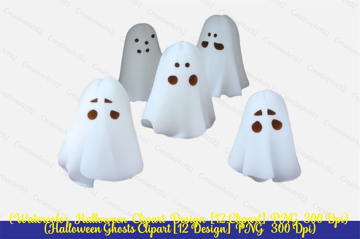 Watercolor Halloween Ghosts clipart T-Shirt Design Bundle digital download cutting file for Cricut And Silhouette