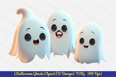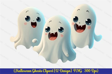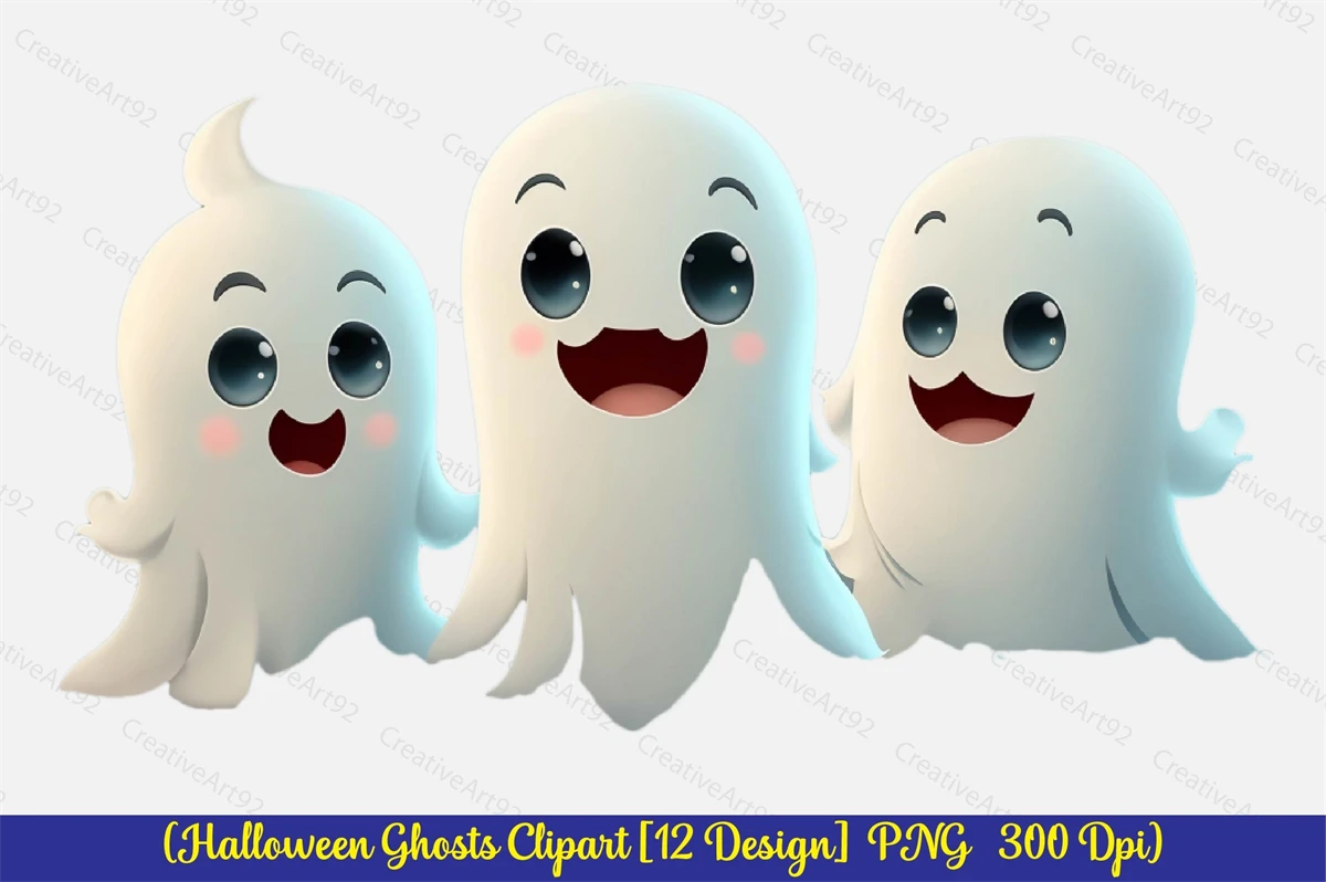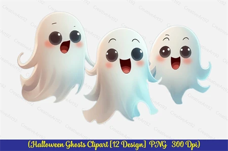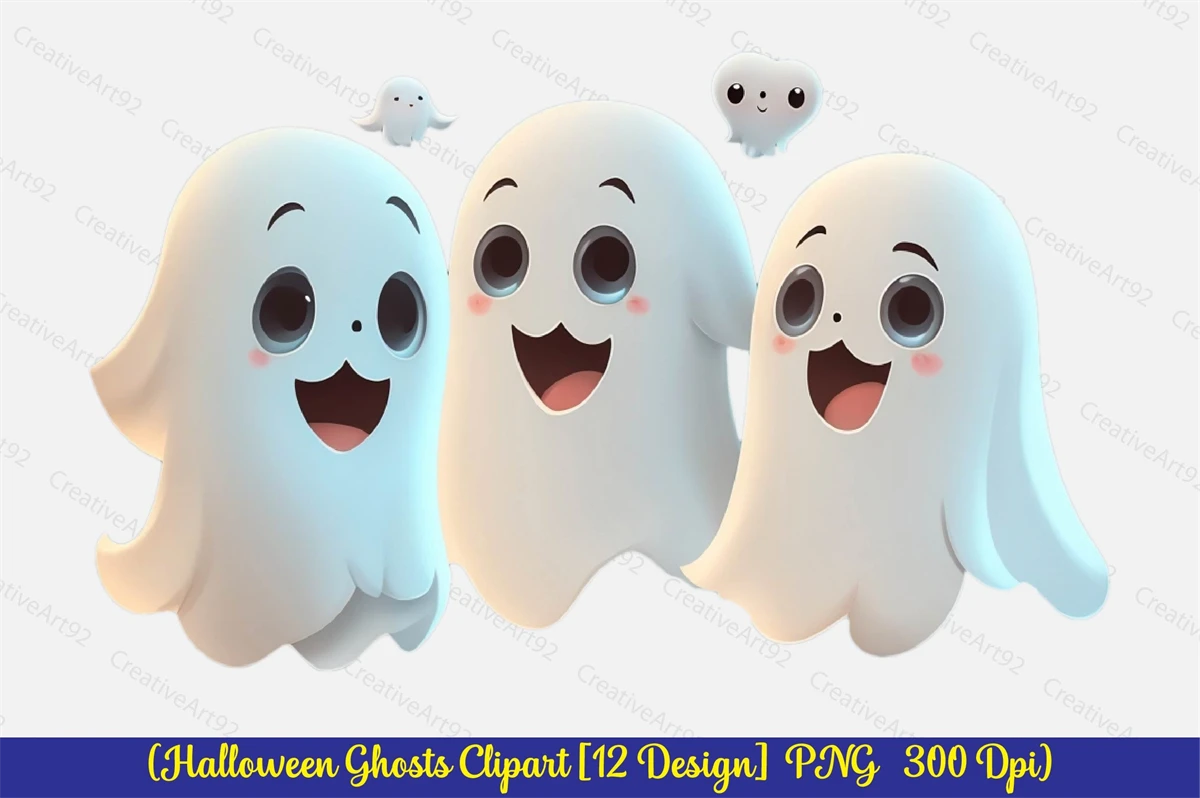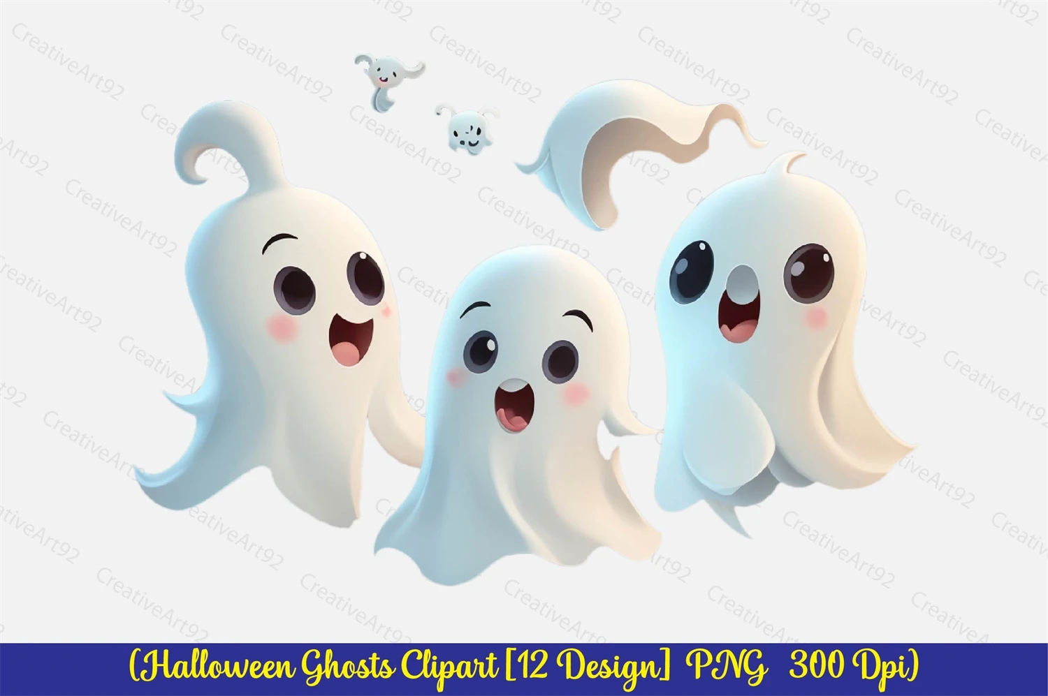 Watercolor Halloween Ghosts clipart T-Shirt Design Bundle digital download cutting file for Cricut And Silhouette