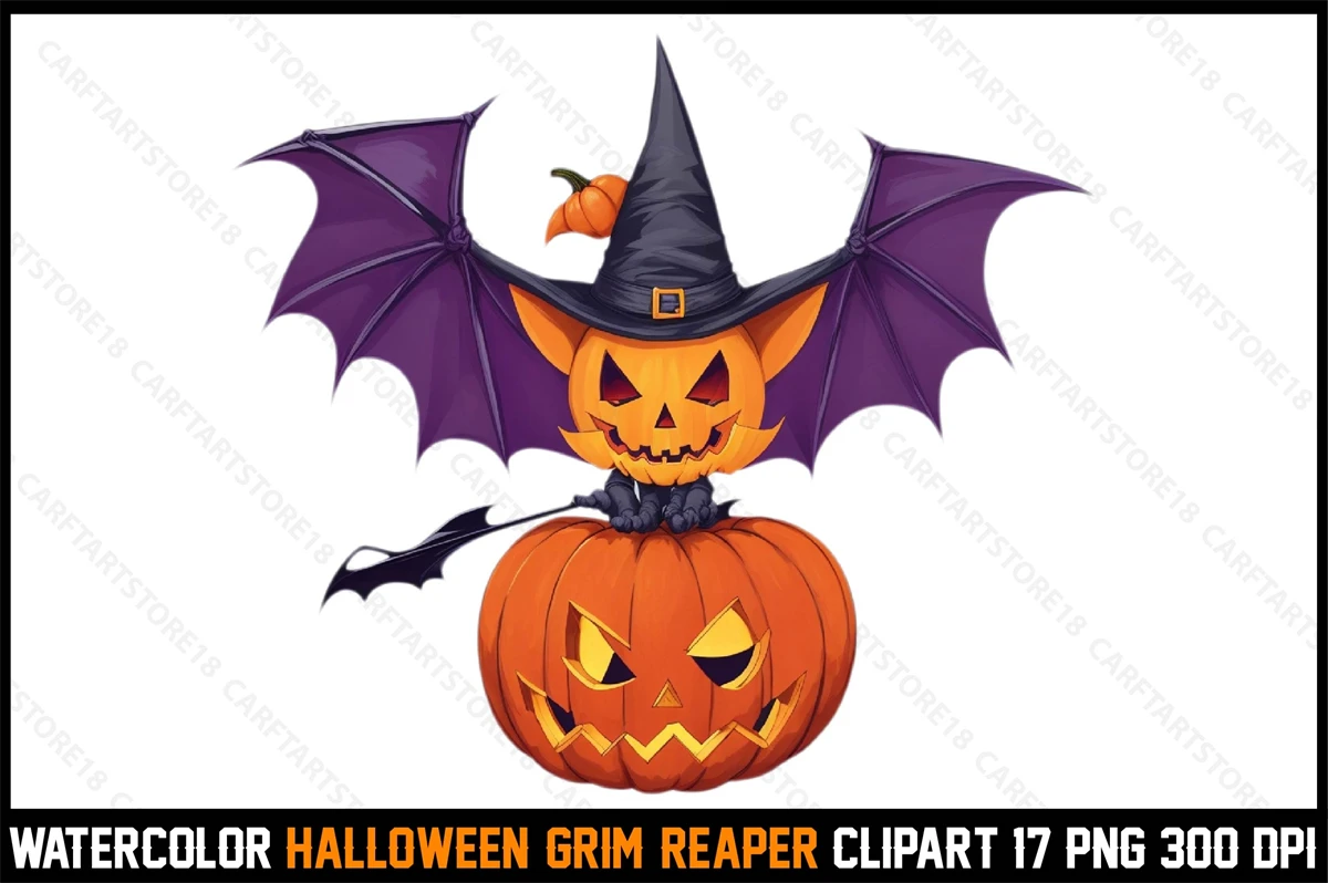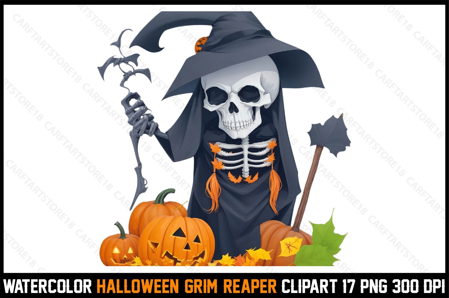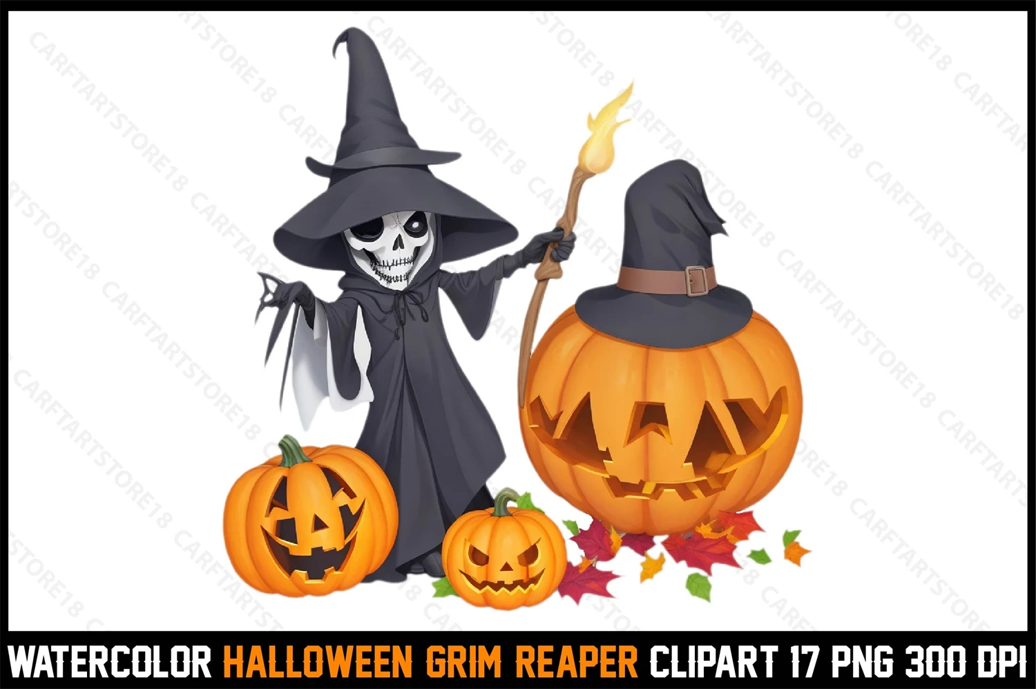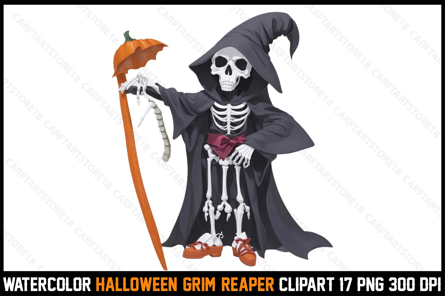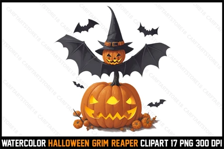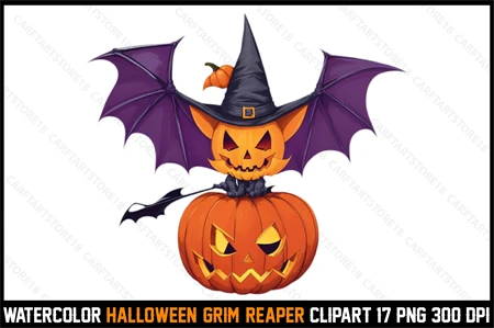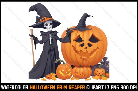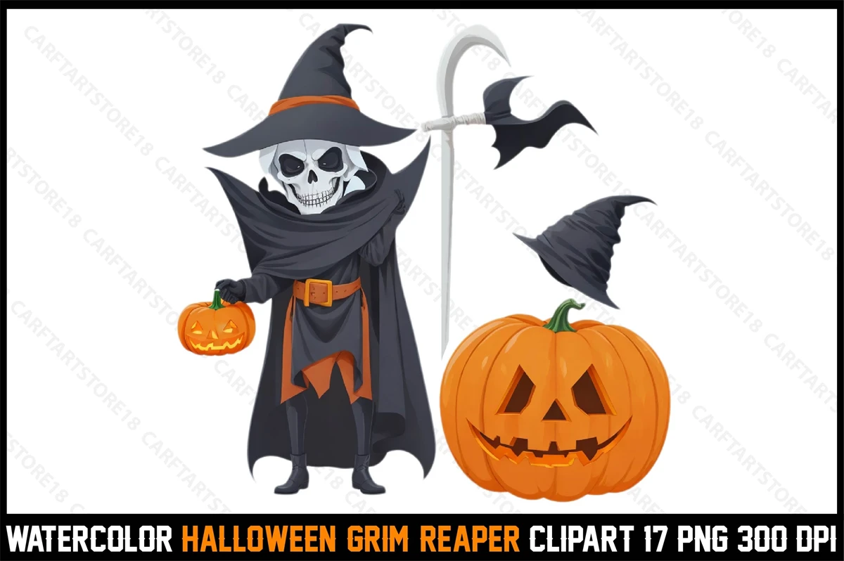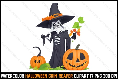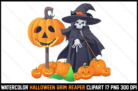 Watercolor Halloween Grim Reaper Clipart