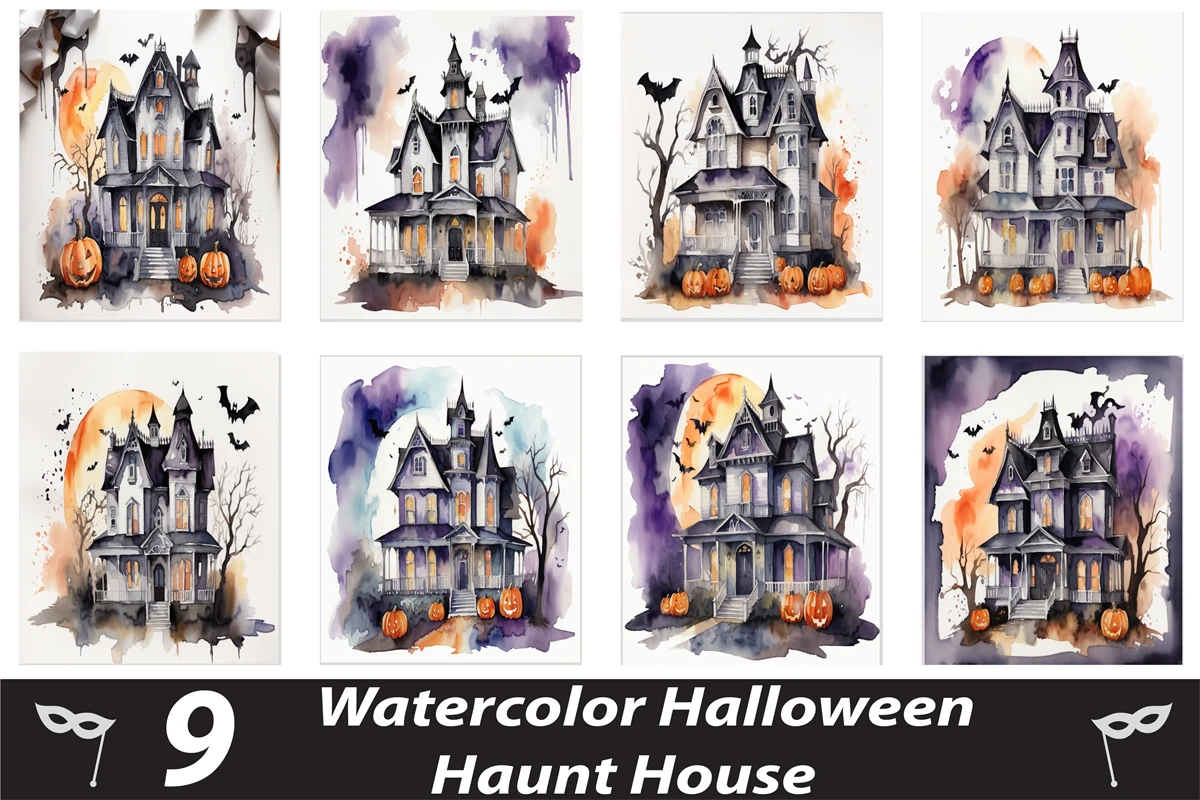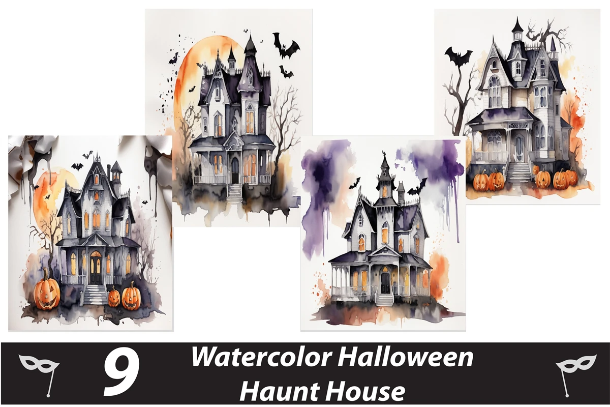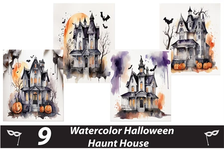 Watercolor Halloween Haunted house