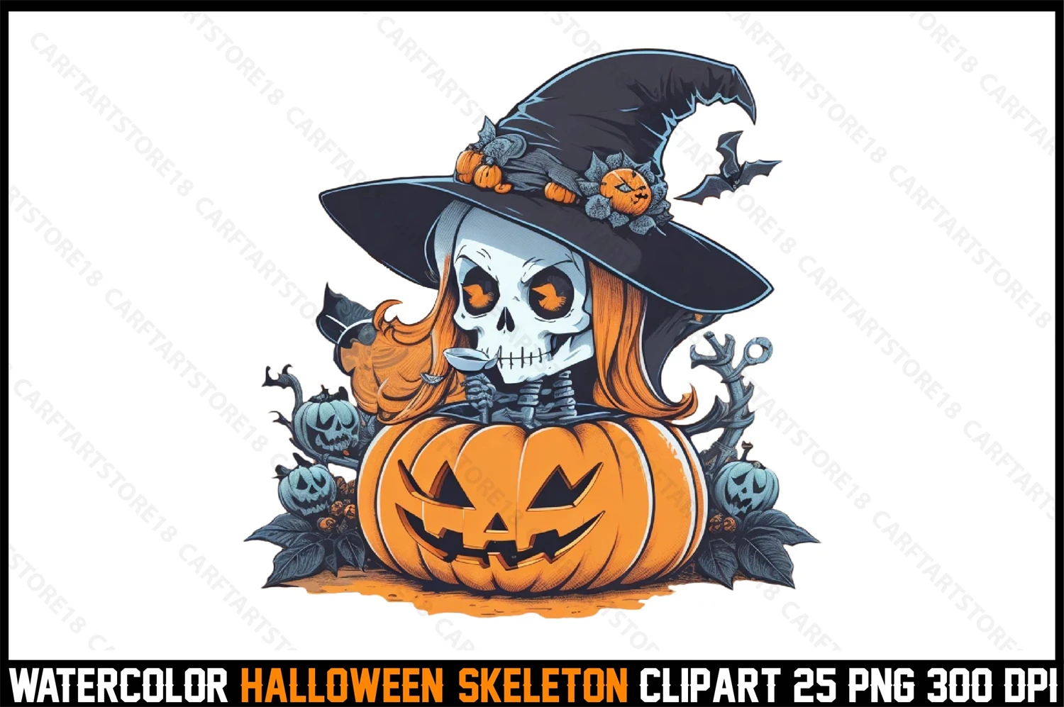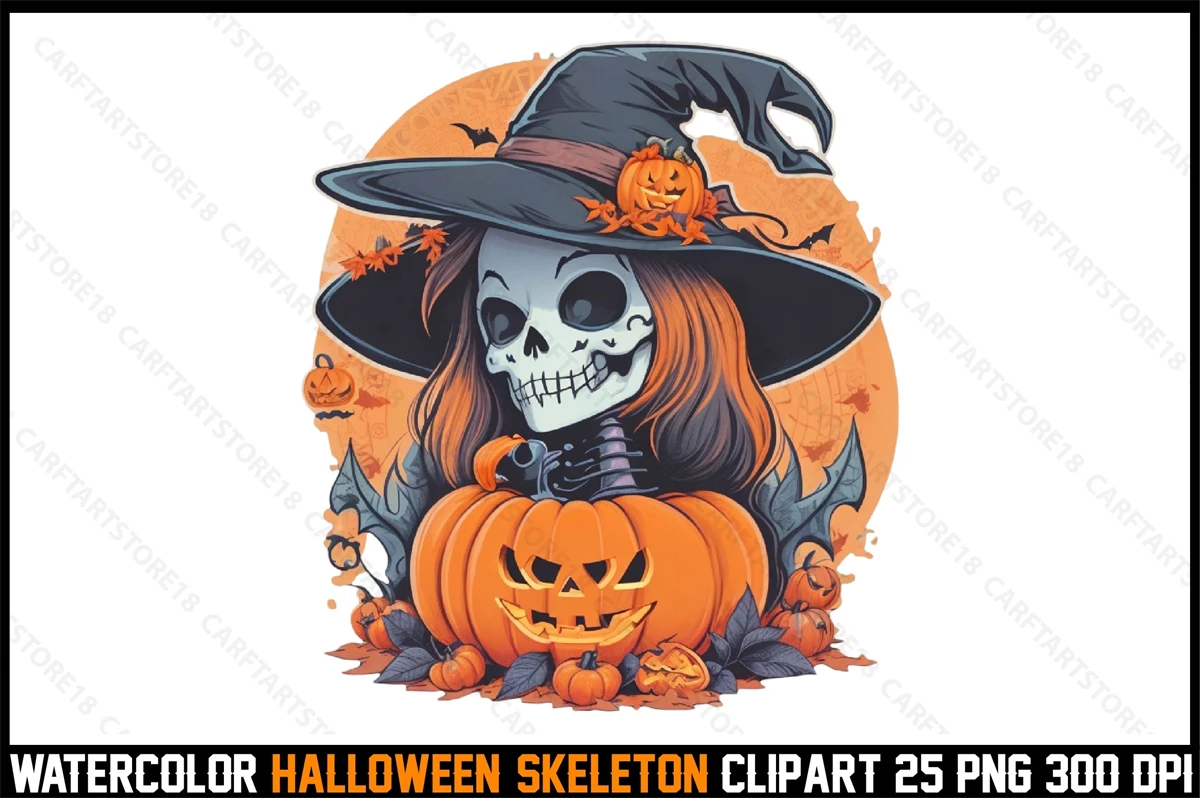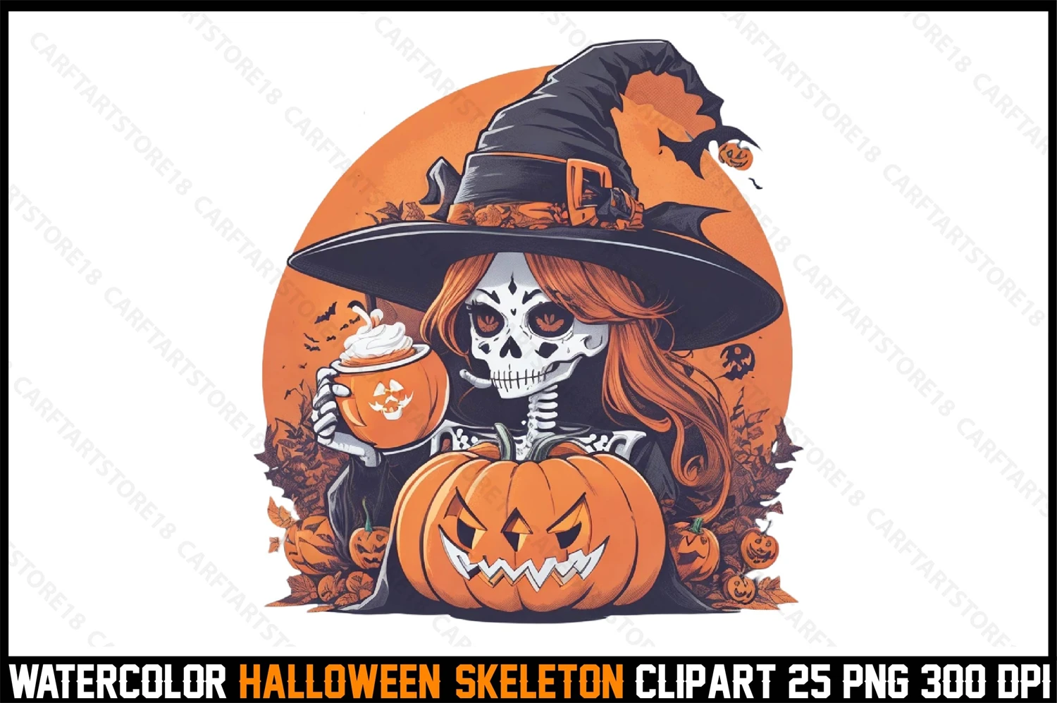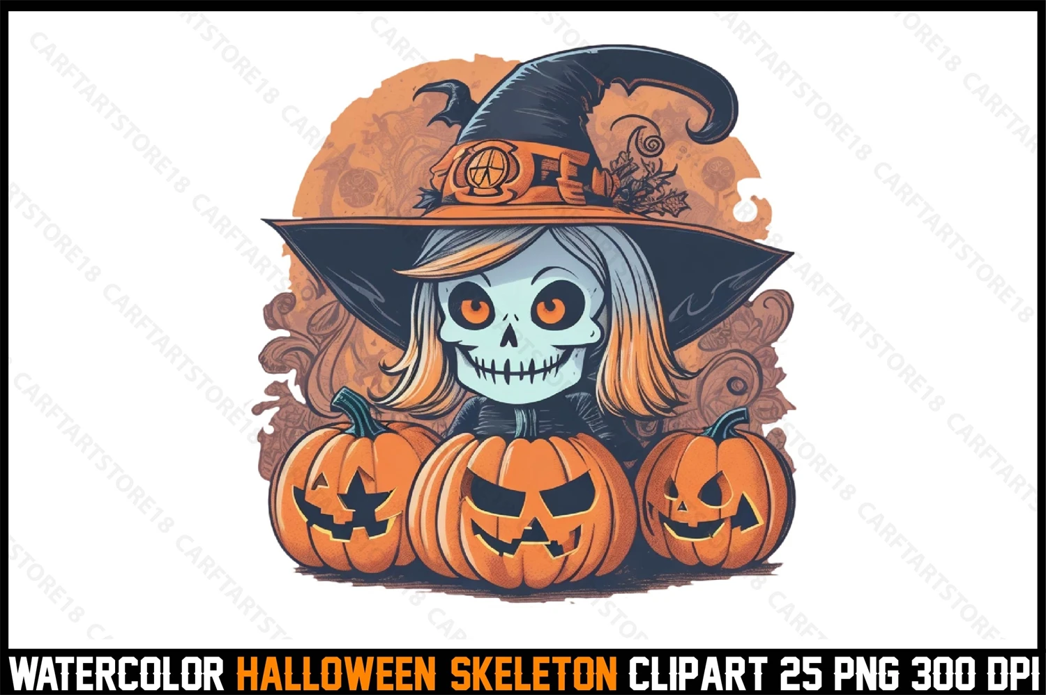 Watercolor Halloween Skeleton Clipart T-Shirt Design Bundle digital download cutting file for Circuit And Silhouette