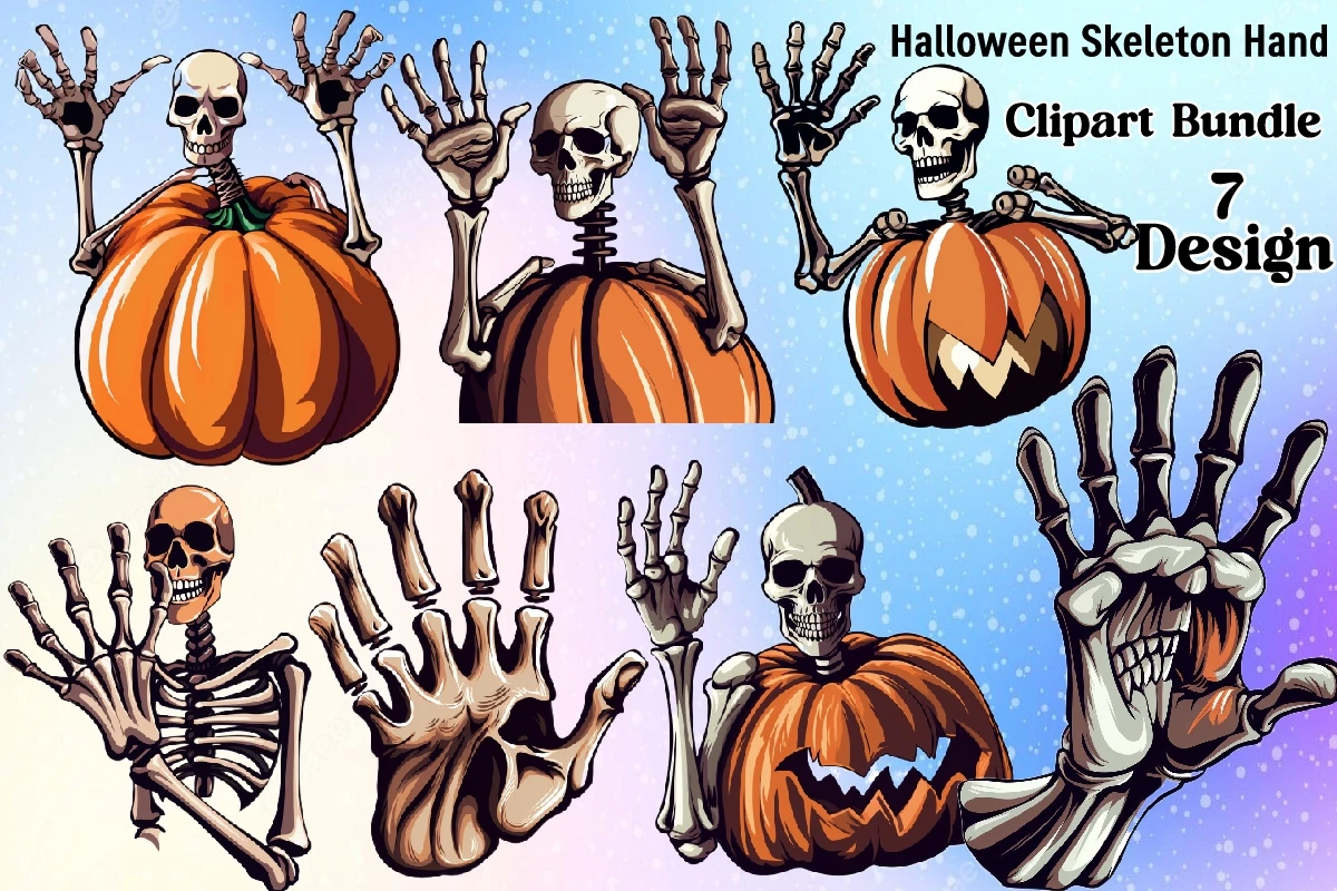 Watercolor Halloween Skeleton Sublimation Design Bundle
