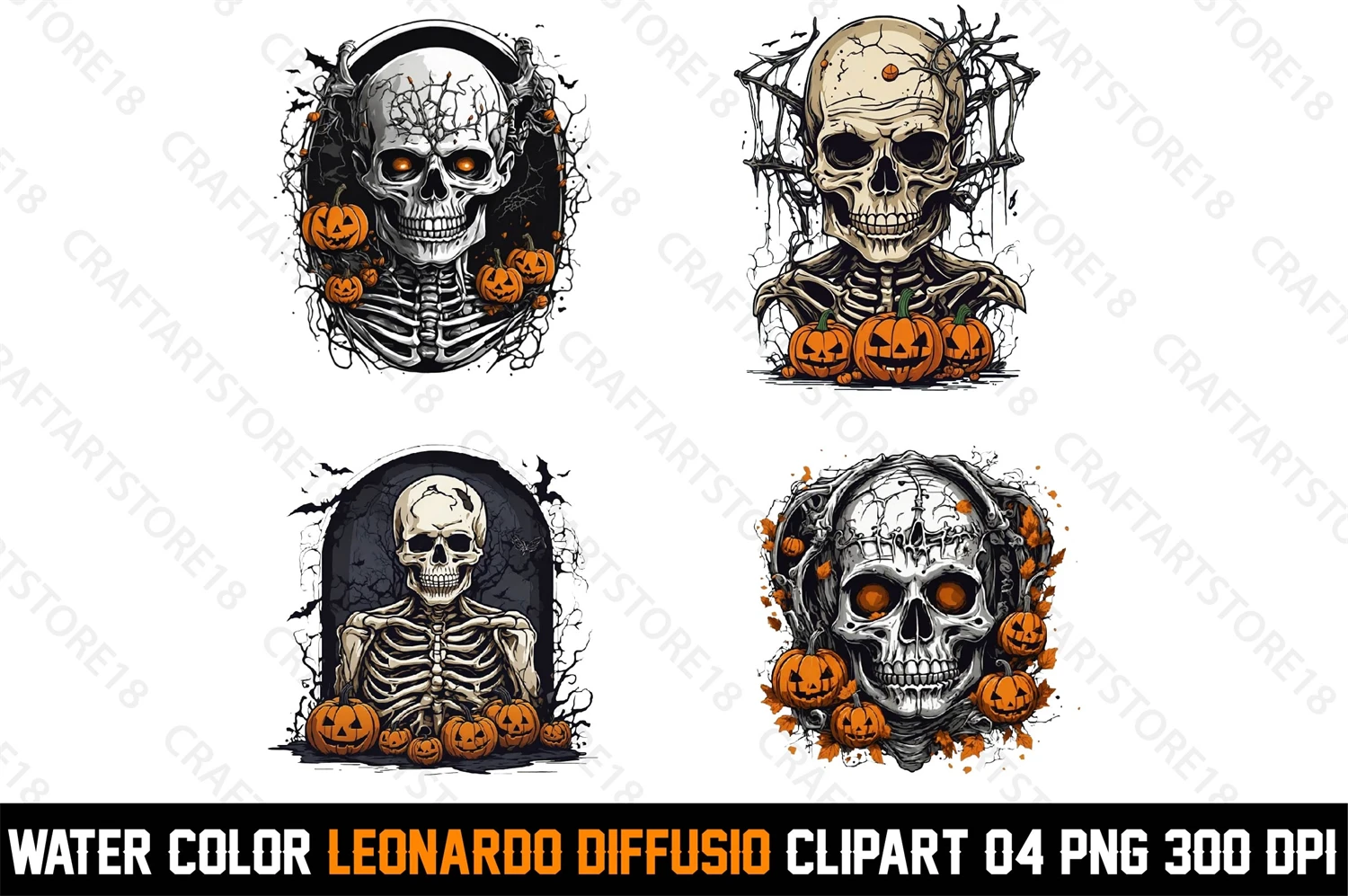Watercolor Halloween Skull Clipart T-Shirt Design Bundle digital download cutting file for Circuit And Silhouette