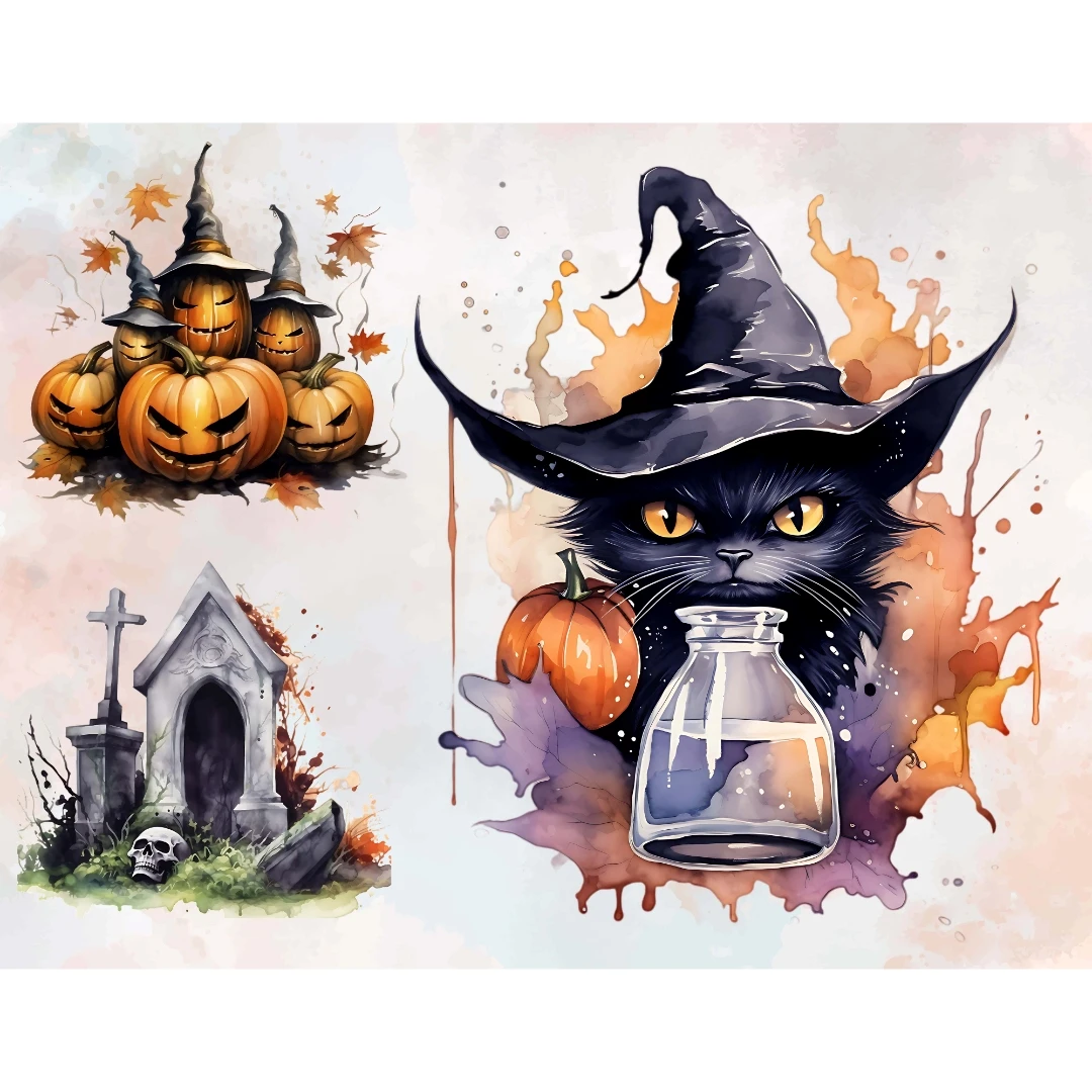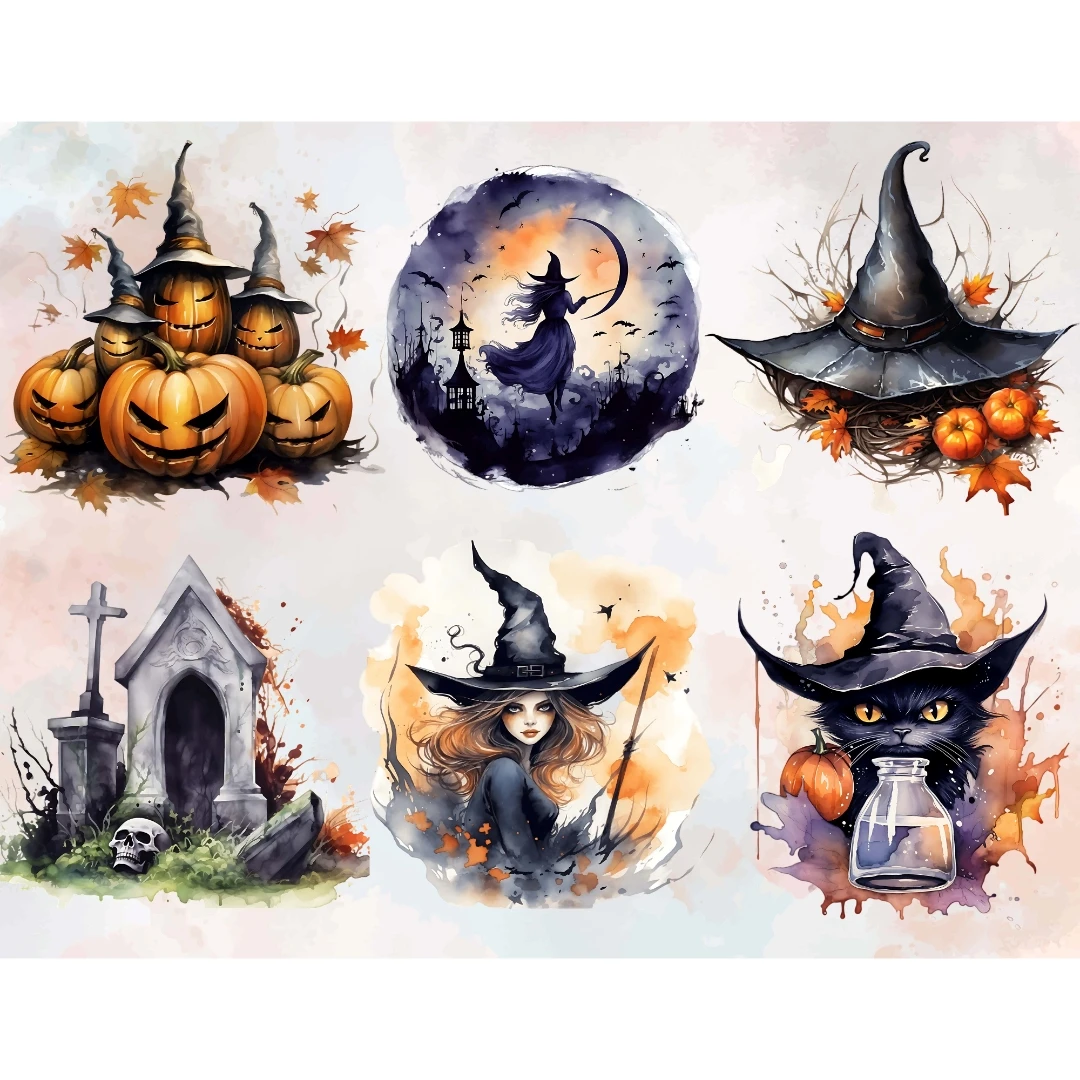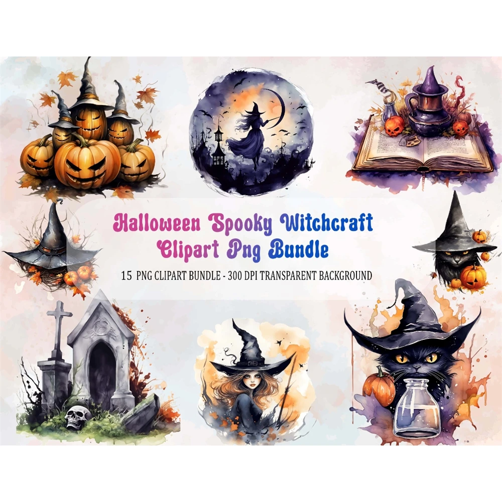 Watercolor Halloween Spooky Witchcraft Ghost Clipart Bundle