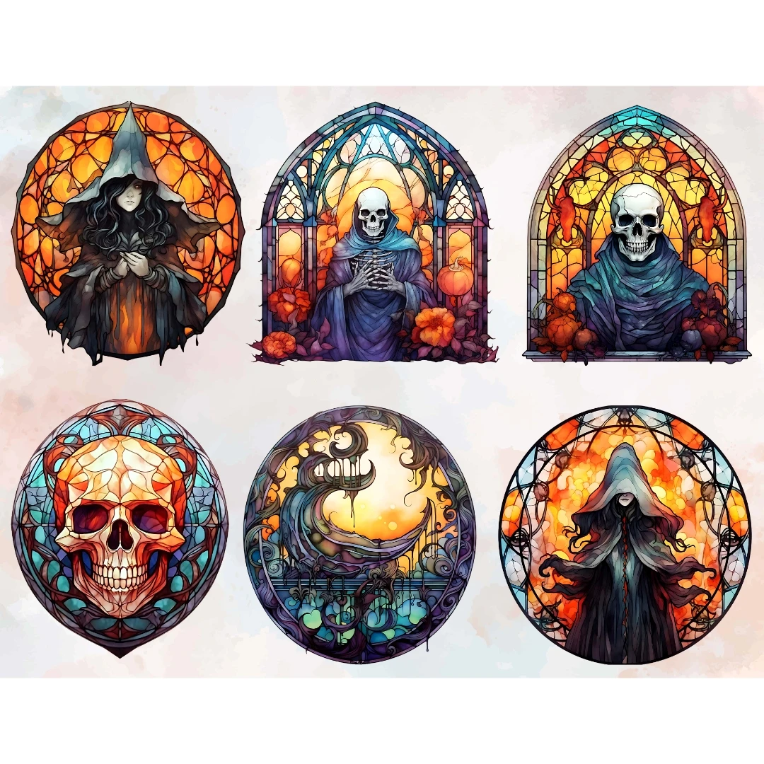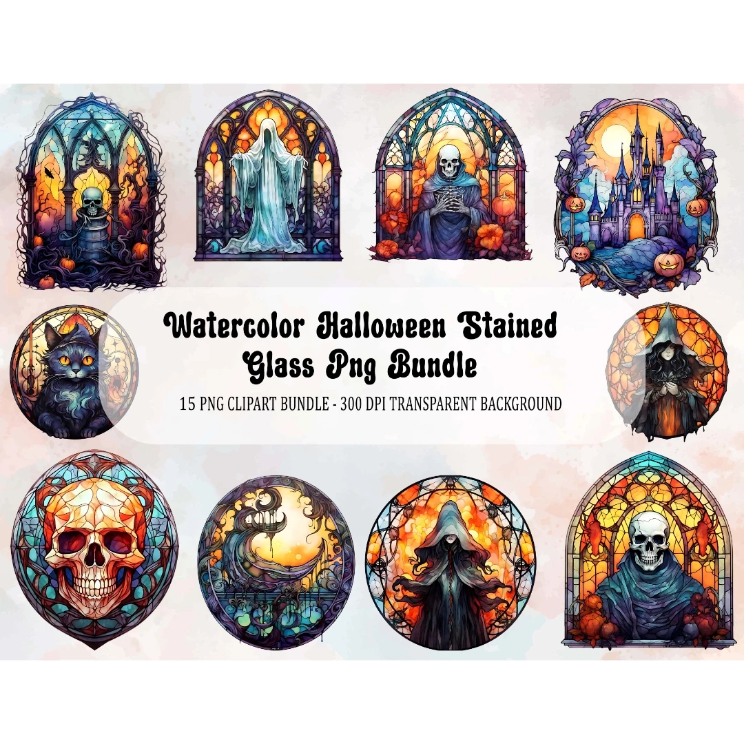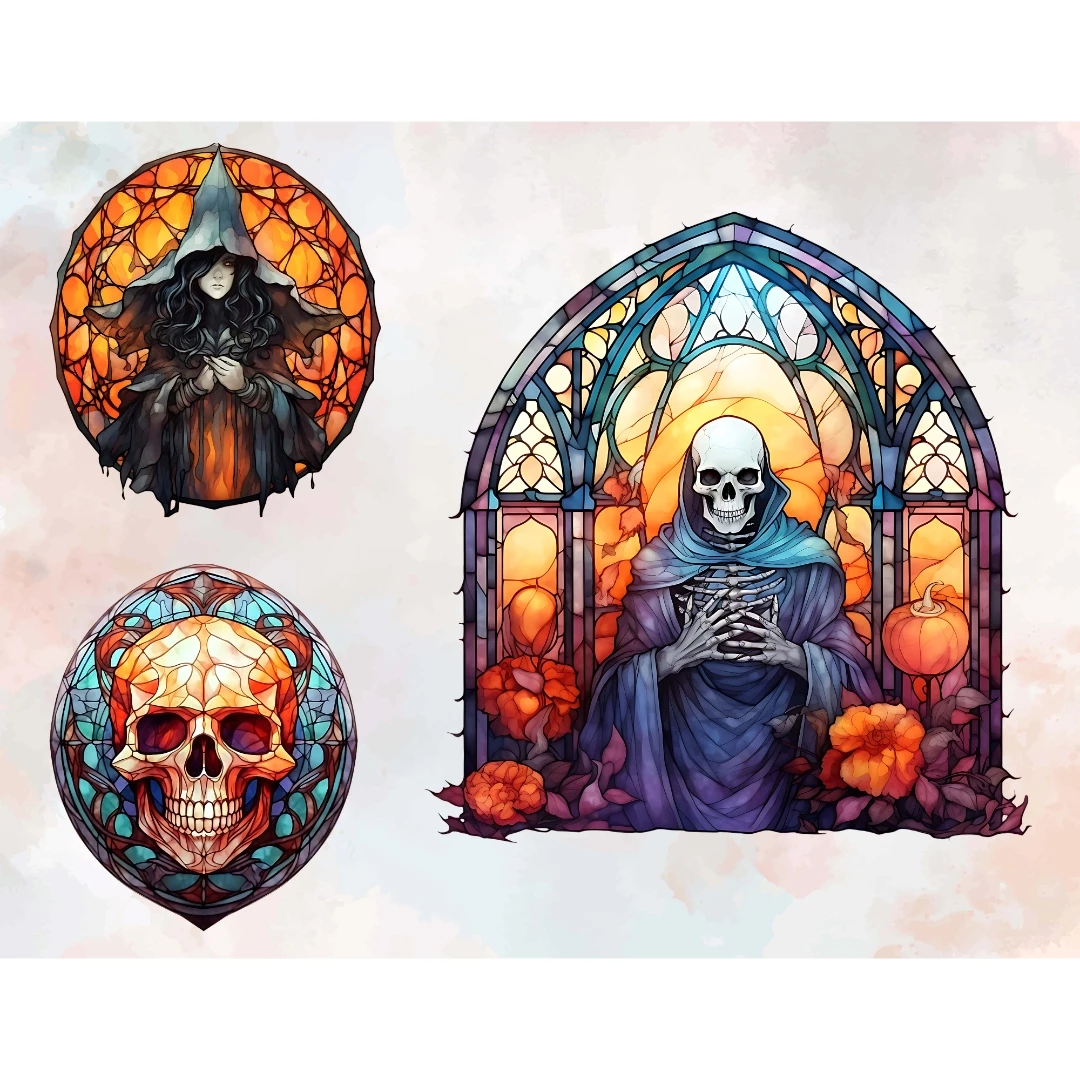 Watercolor Halloween Stained Glass Pumpkin Witchy
