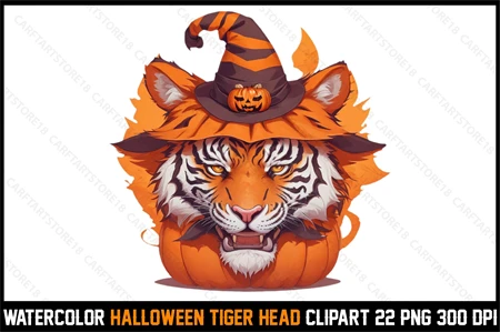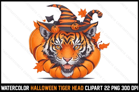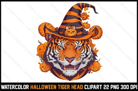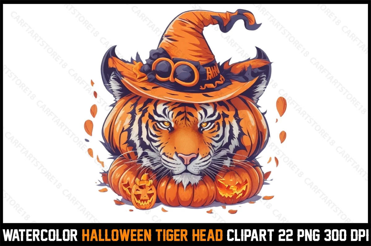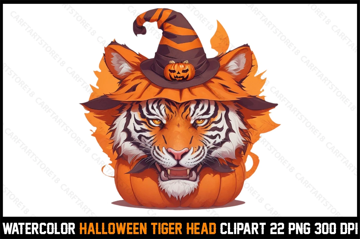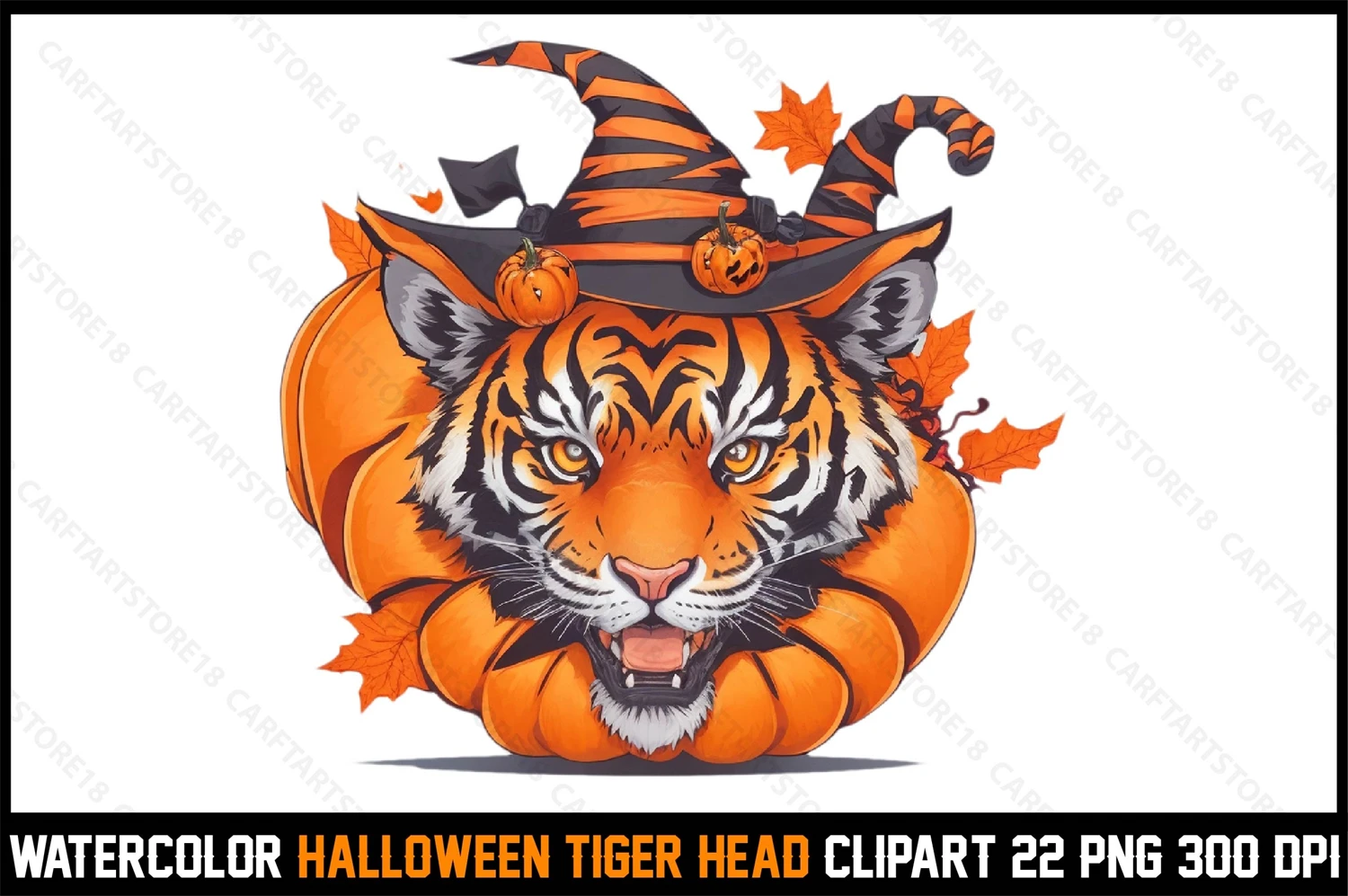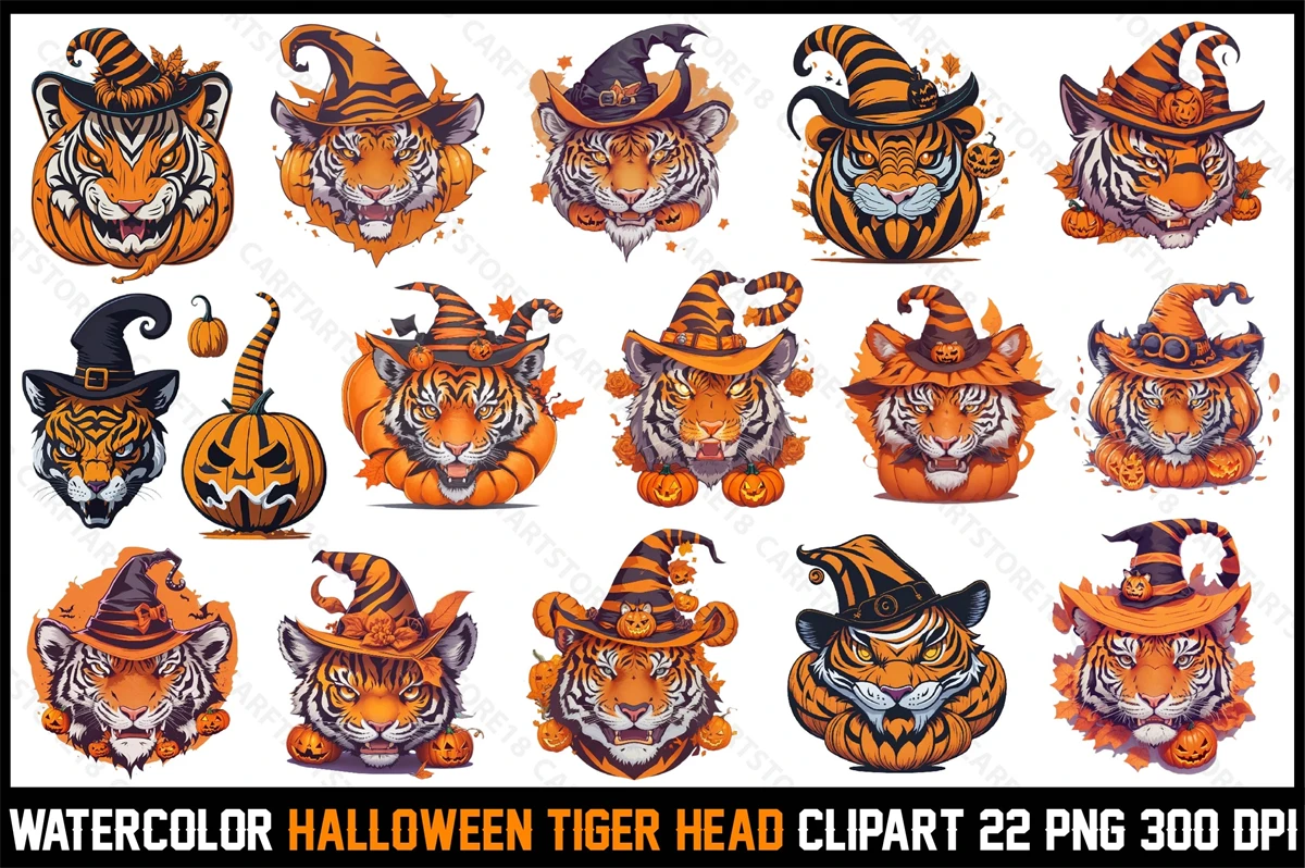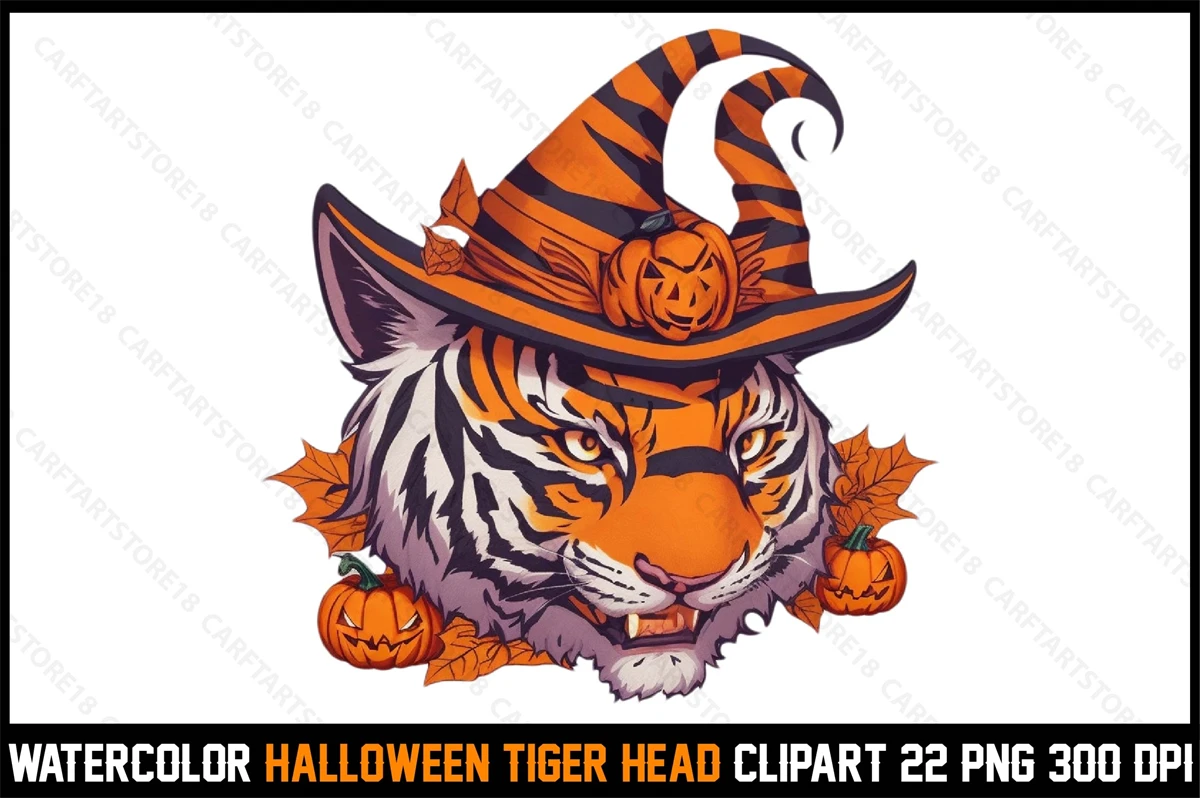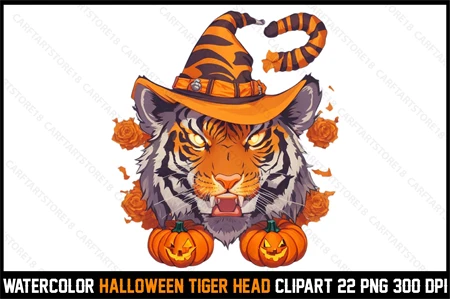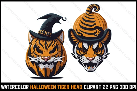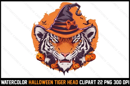 Watercolor Halloween Tiger Head Clipart T-Shirt Design Bundle digital download cutting file for Circuit And Silhouette