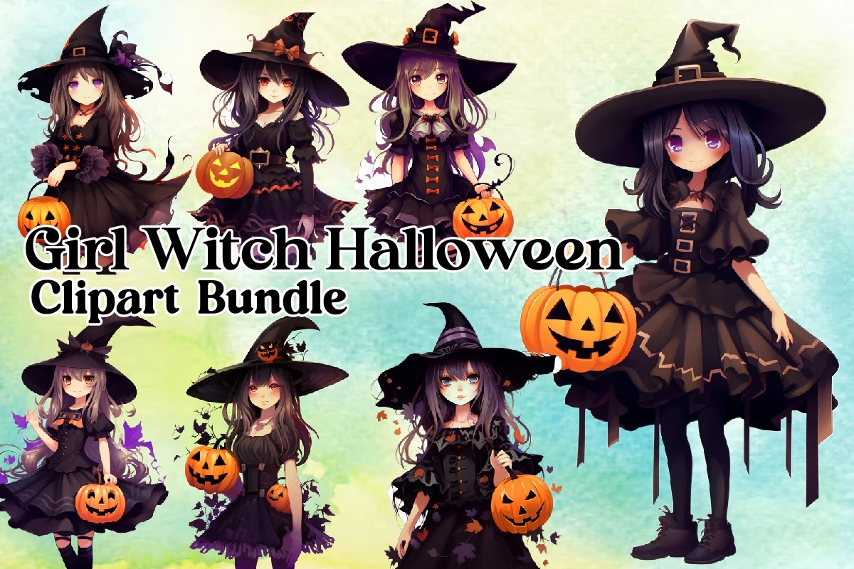 Watercolor Halloween Witch Sublimation Design Bundle