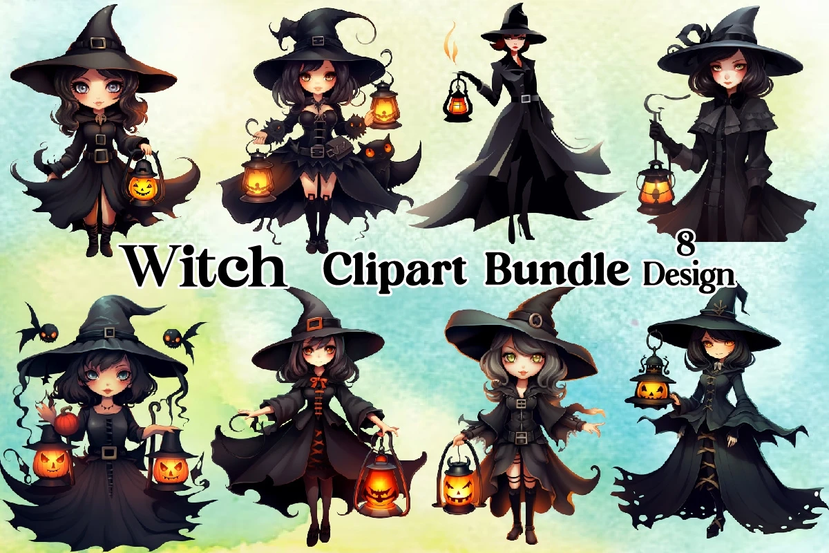 Watercolor Halloween Witch Sublimation Design Bundle