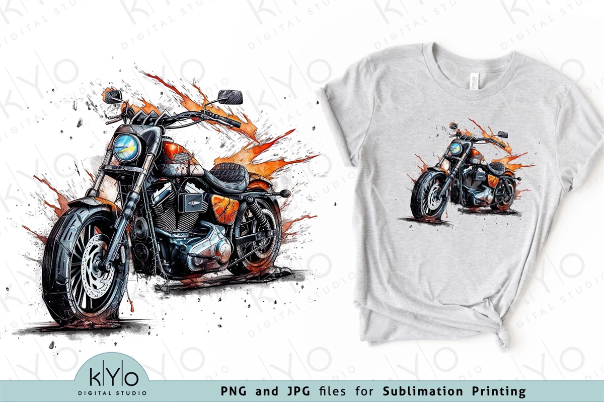 Watercolor Harley Motorcycle Shirt Design Sublimation Png, Motorcycle Clipart, Motorbike Png, Biker shirt png, Motorcycle picture, Biker png, Ver-2