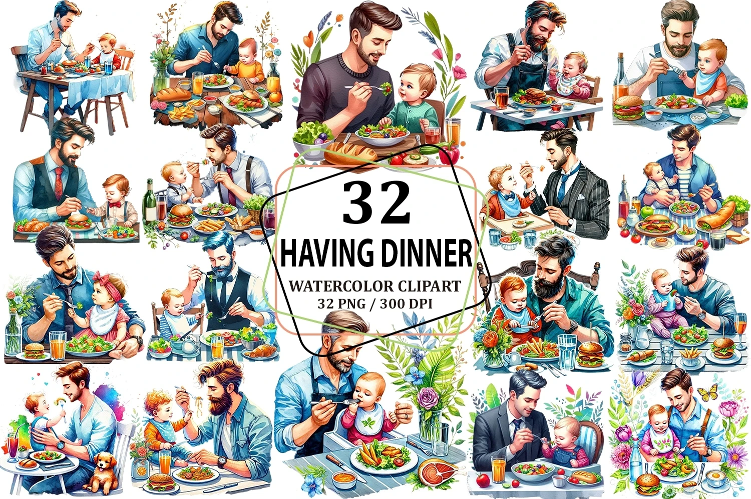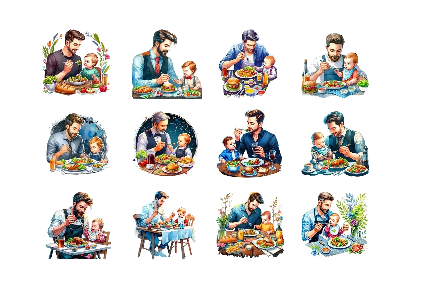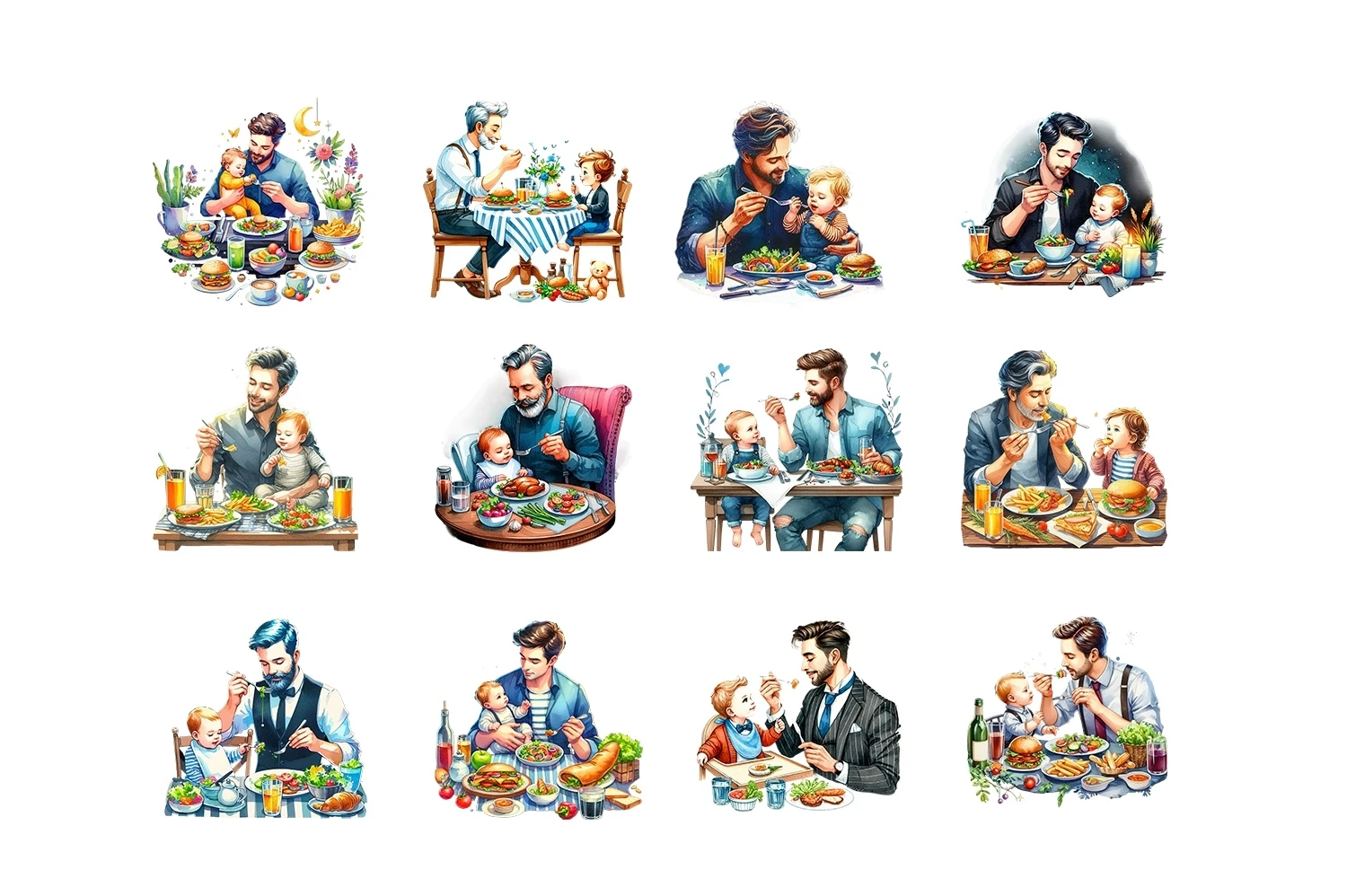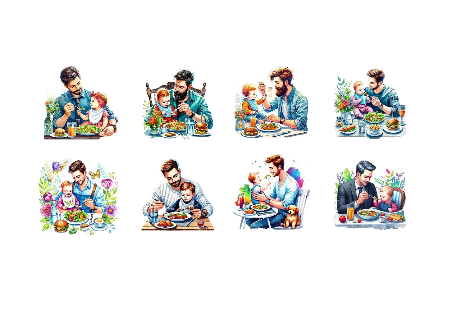 Watercolor Having Dinner Fathers Day Clipart Sublimation PNG (AI-generated).