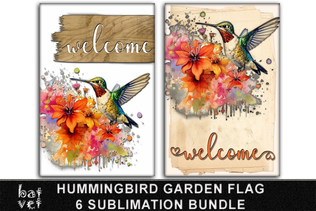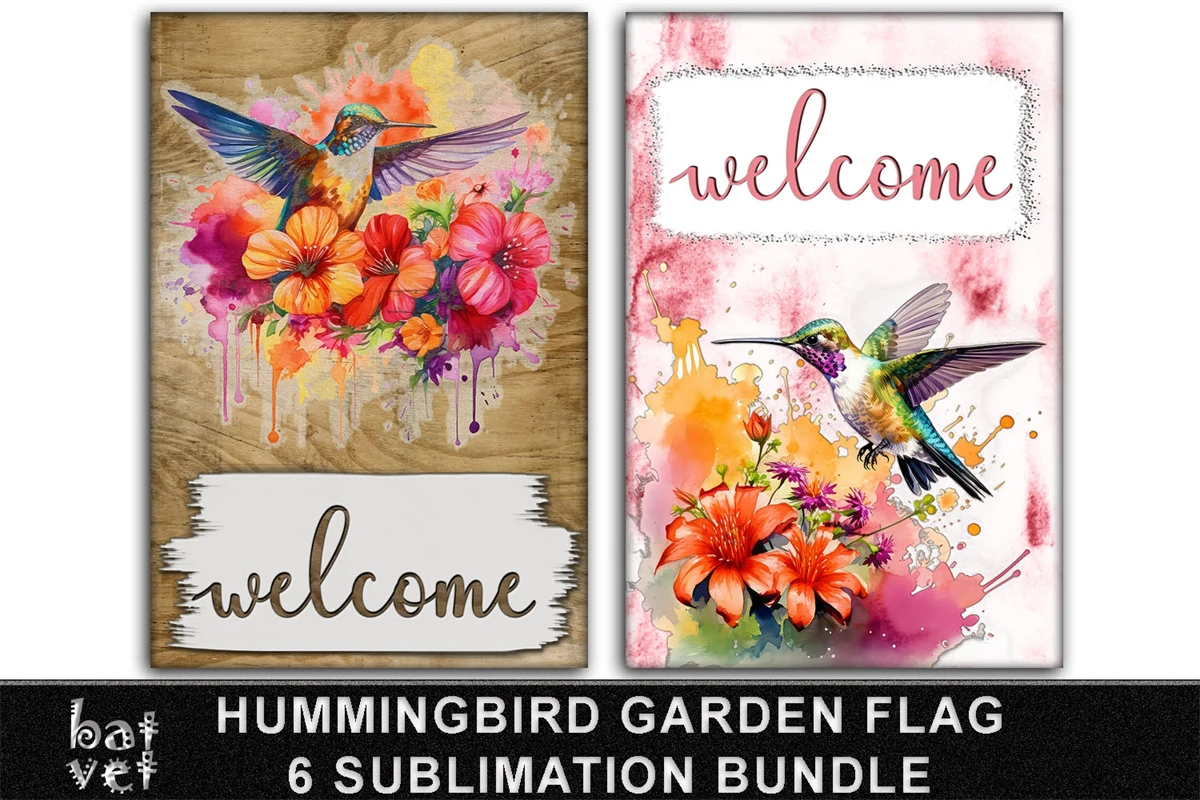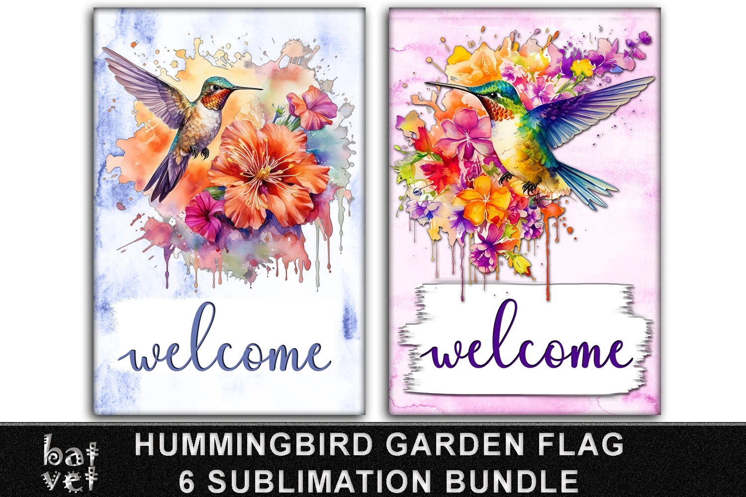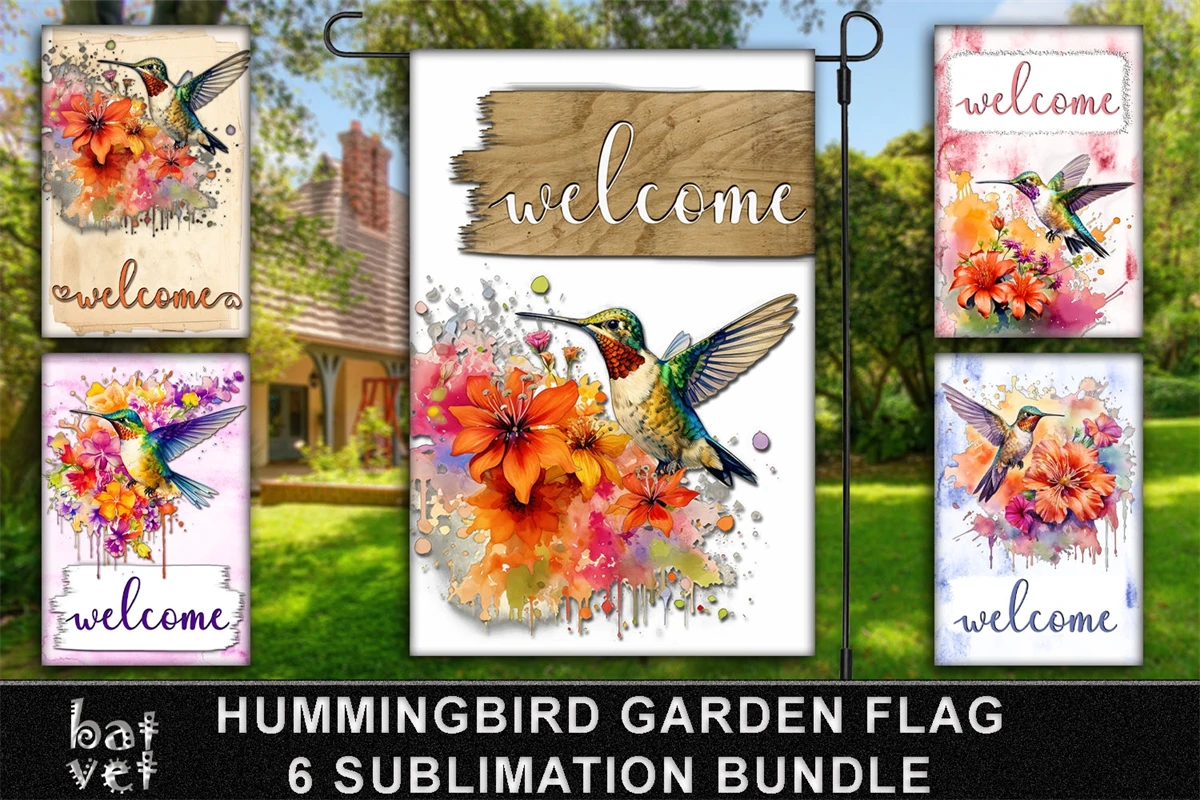 6 Watercolor Hummingbird Garden Flag Sublimation PNG Bundle