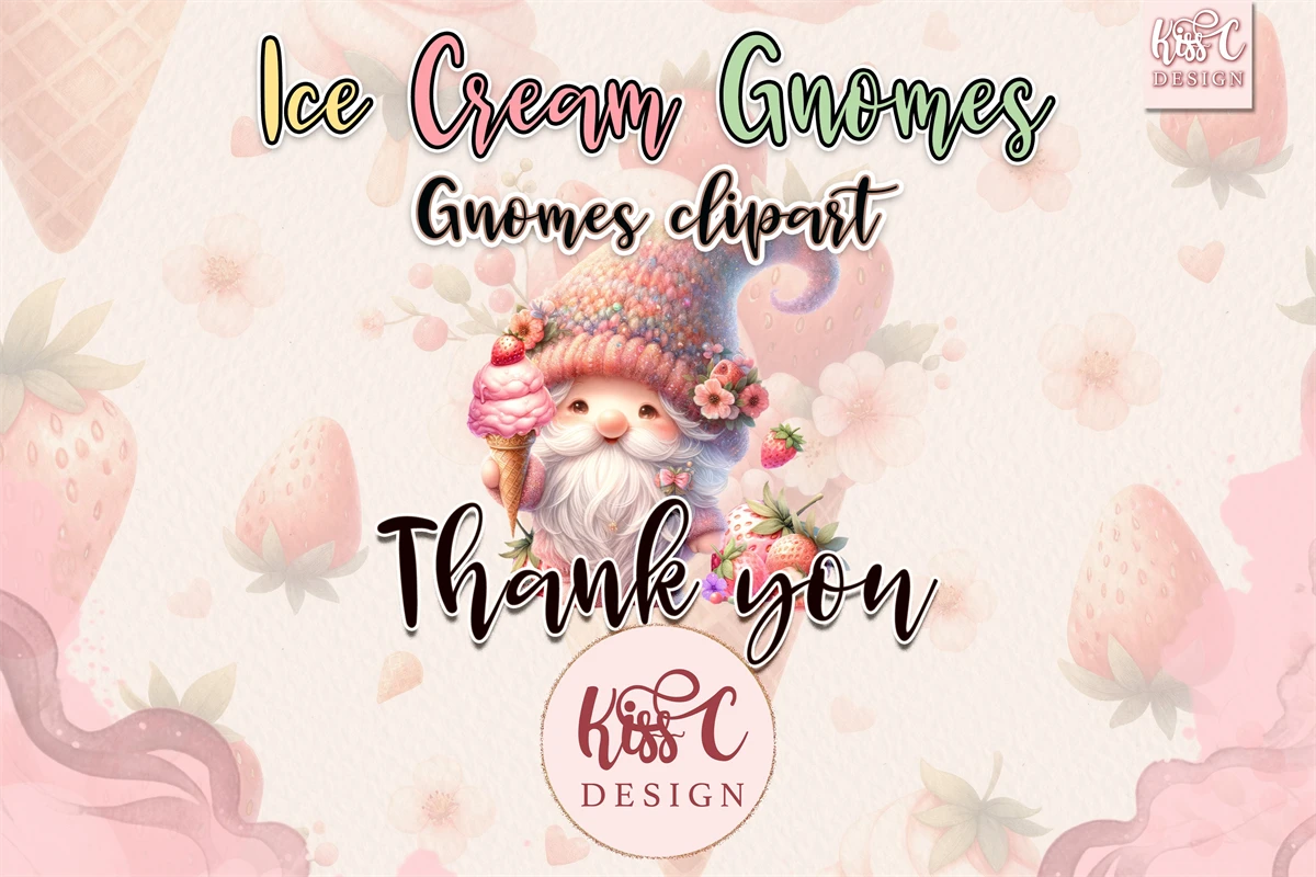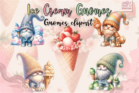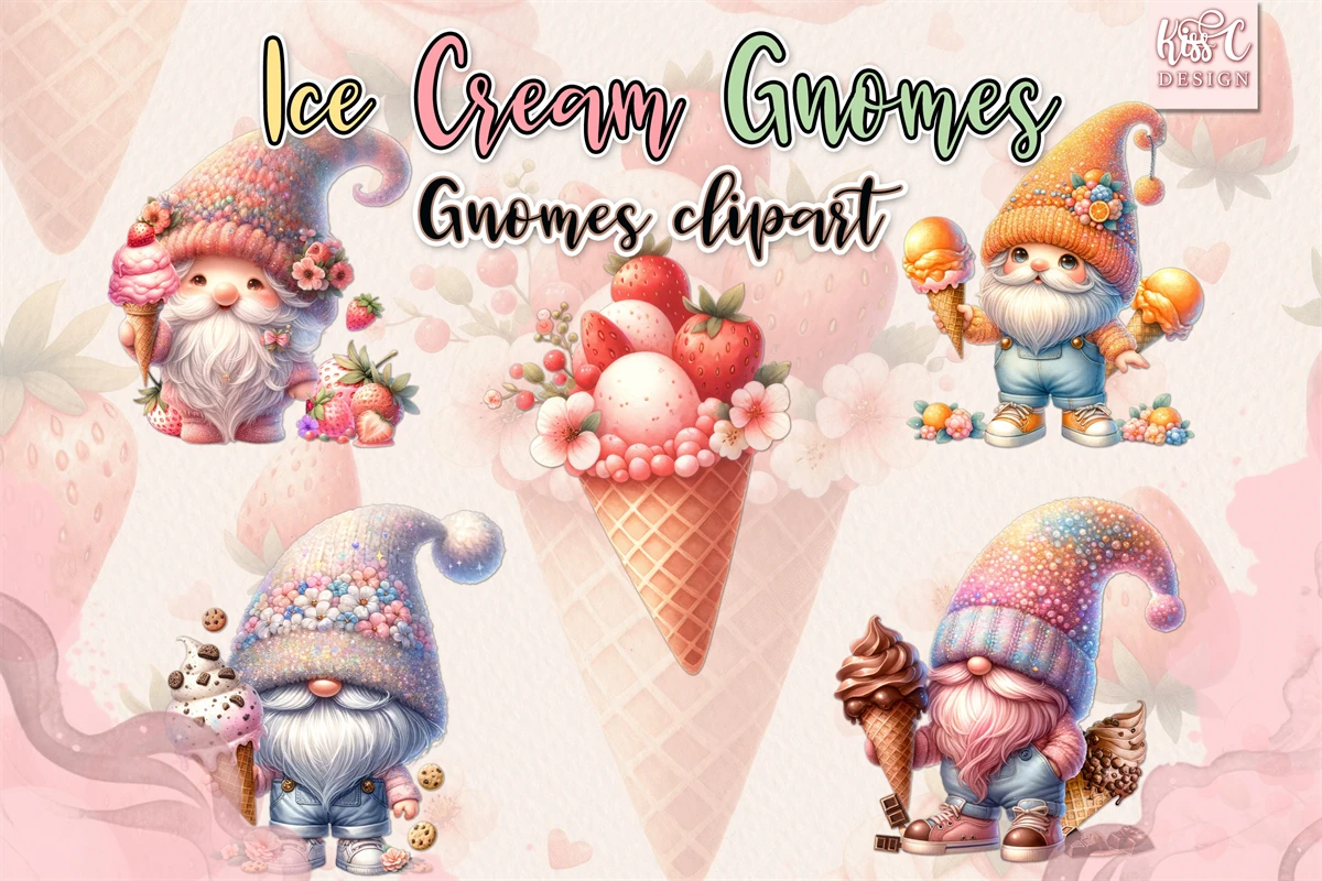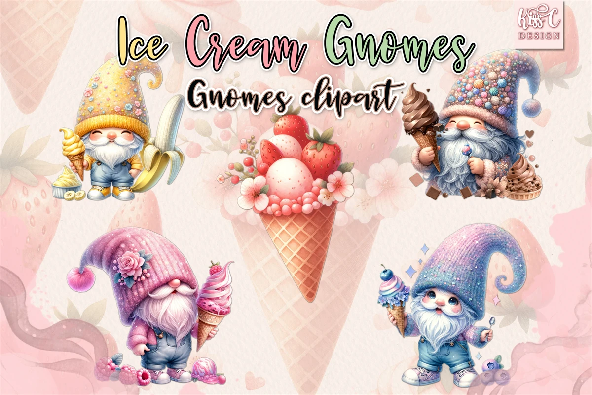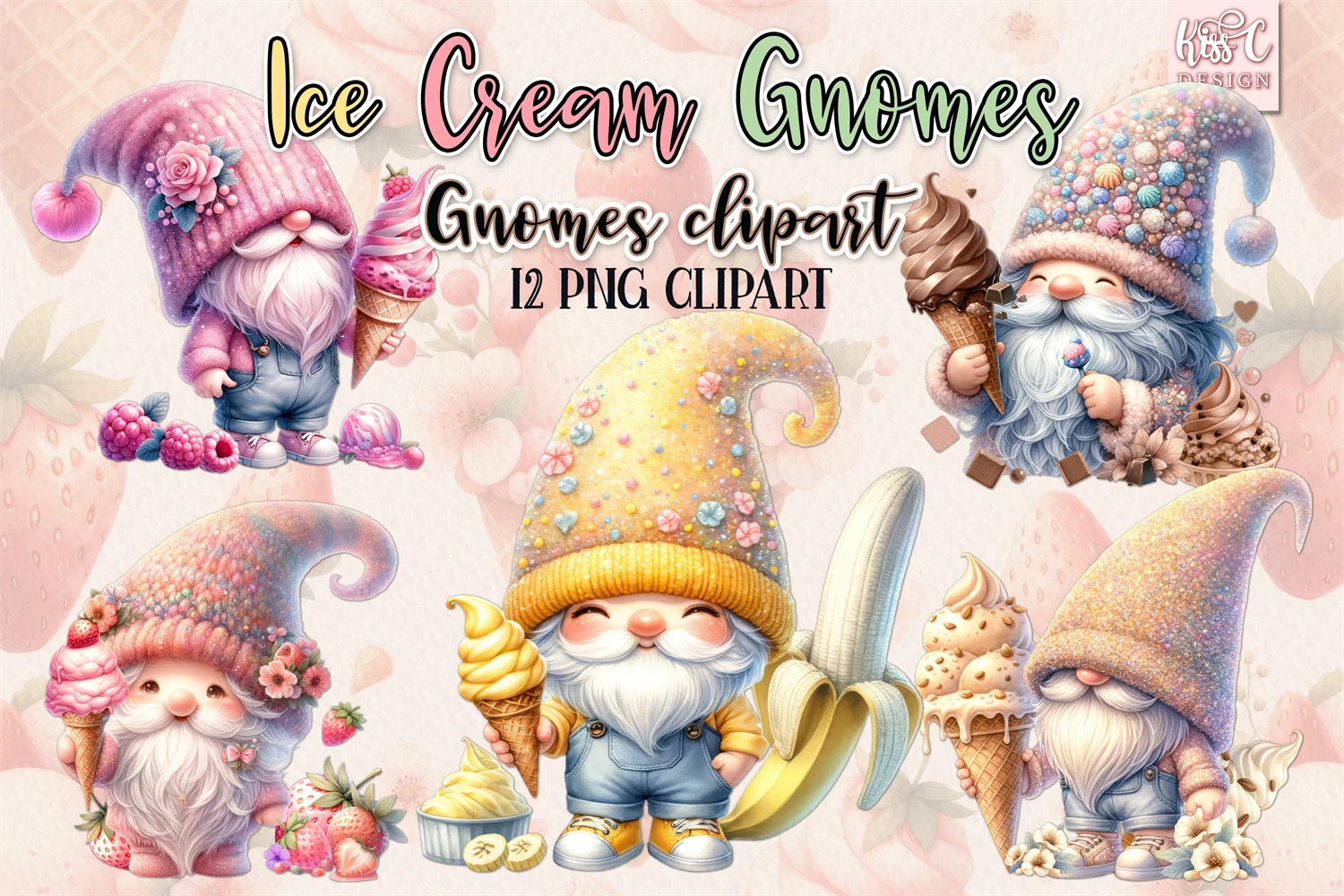 Watercolor Ice Cream Gnomes PNG Sublimation Clipart