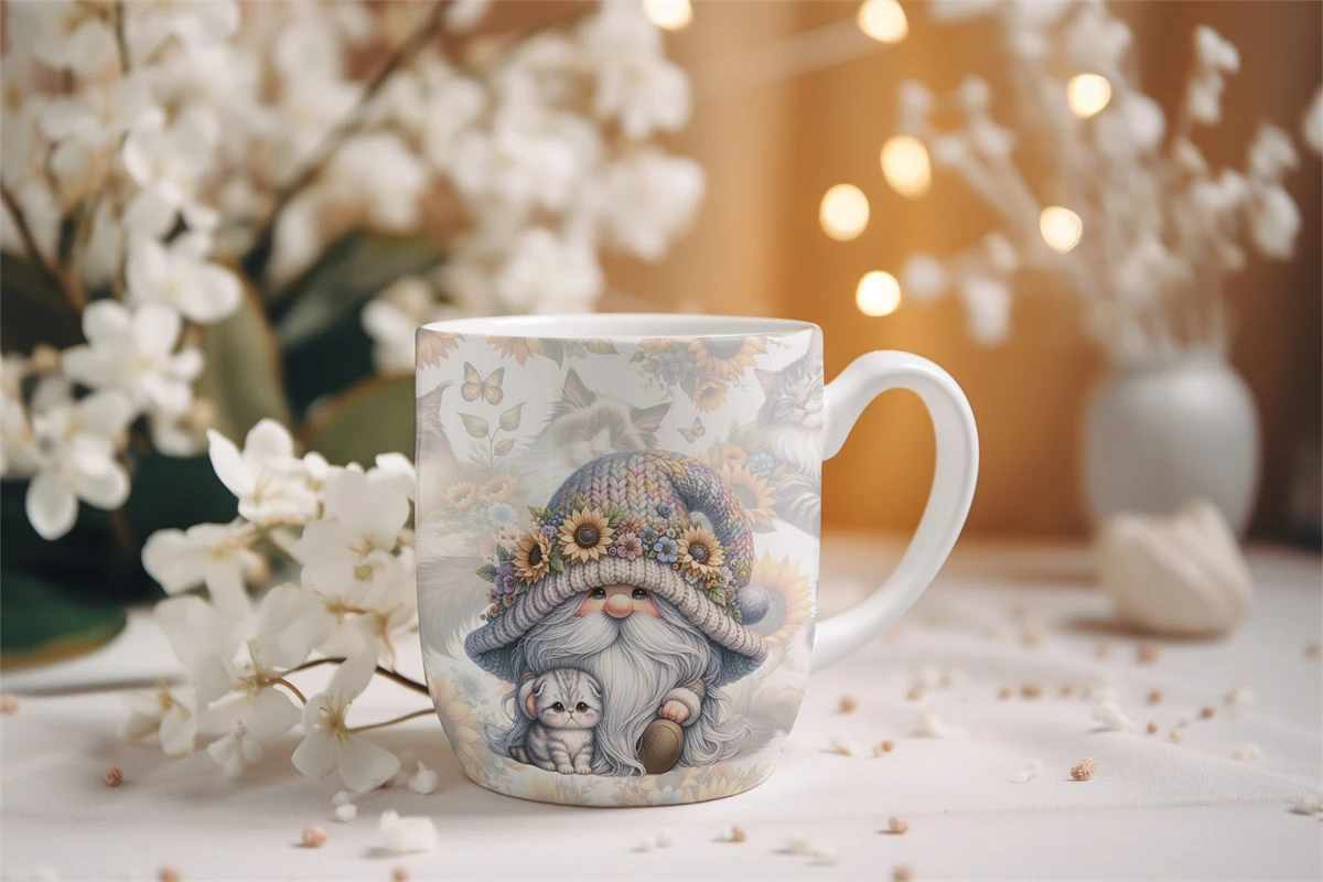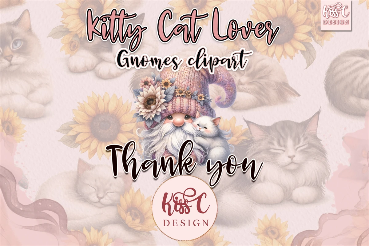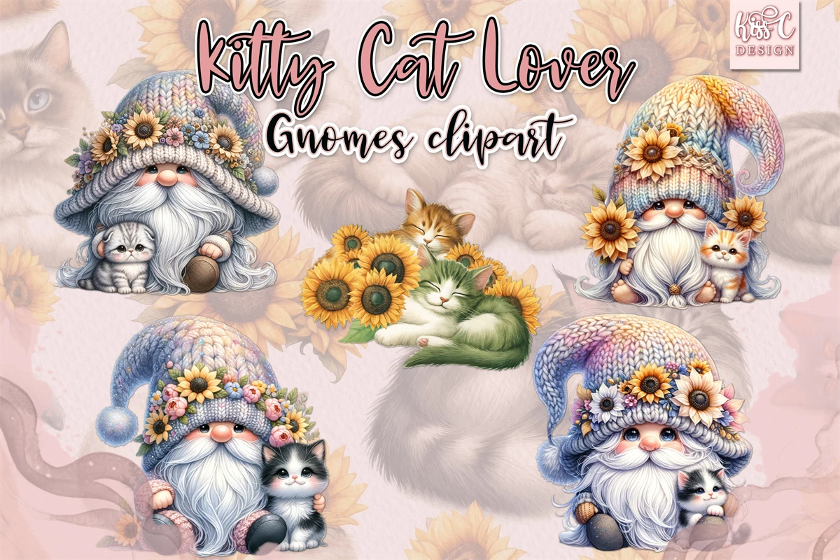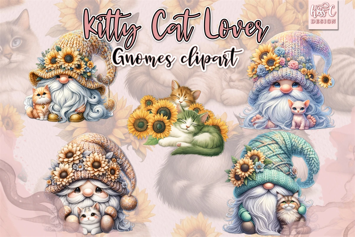 Introducing the enchanting world of adorable gnome with its charming cat whimsical illustrations.