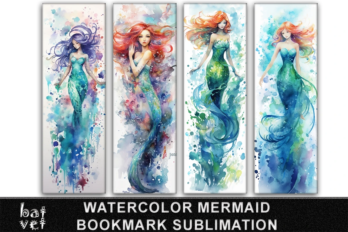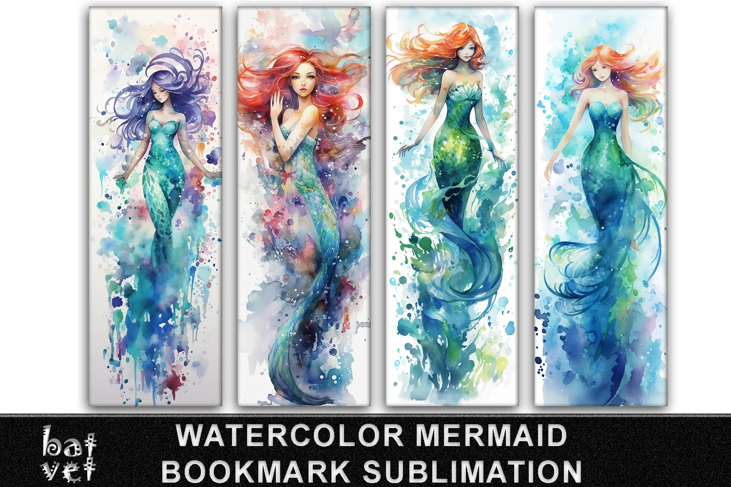 Watercolor Bookmark, Mermaid Splash Sublimation.