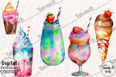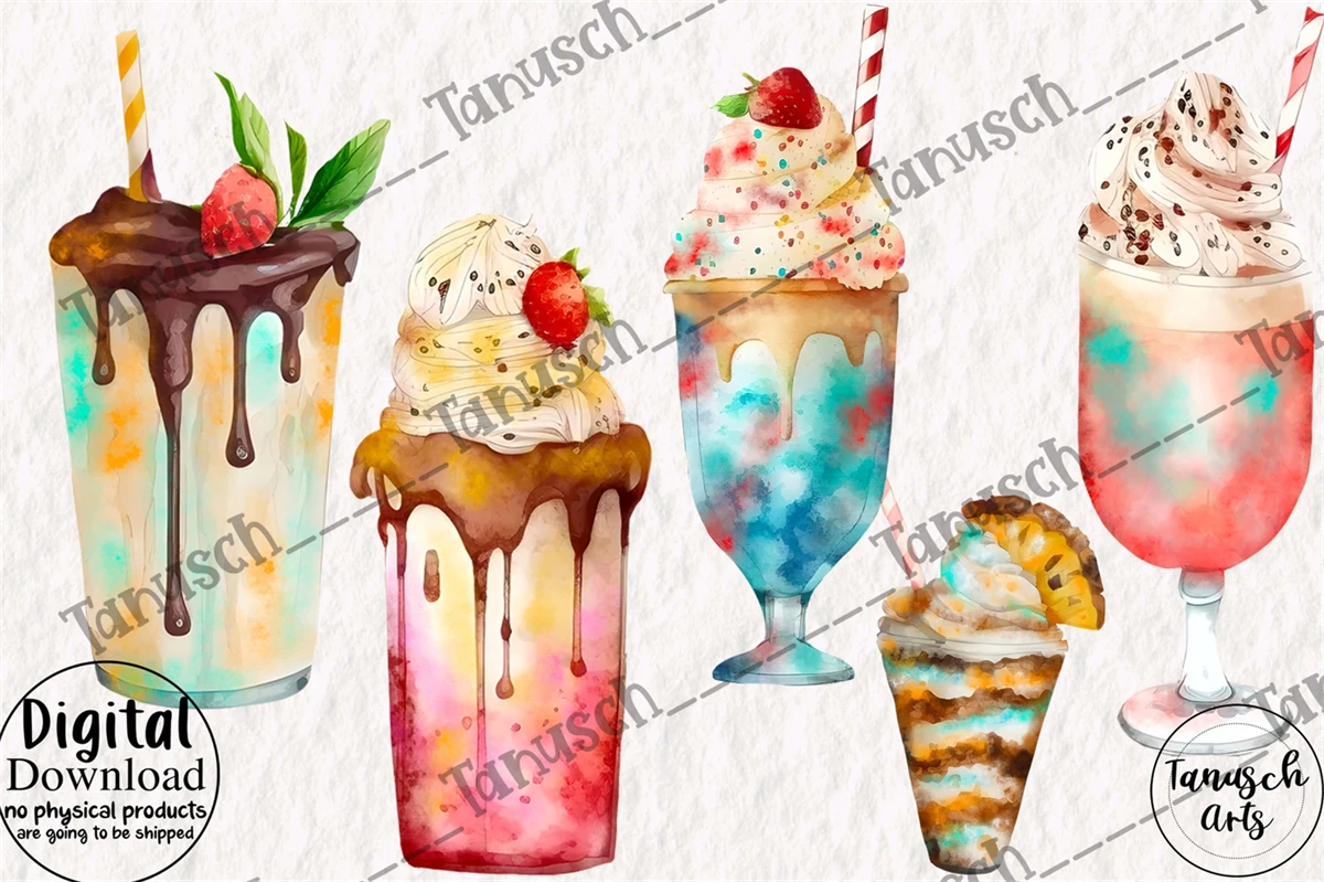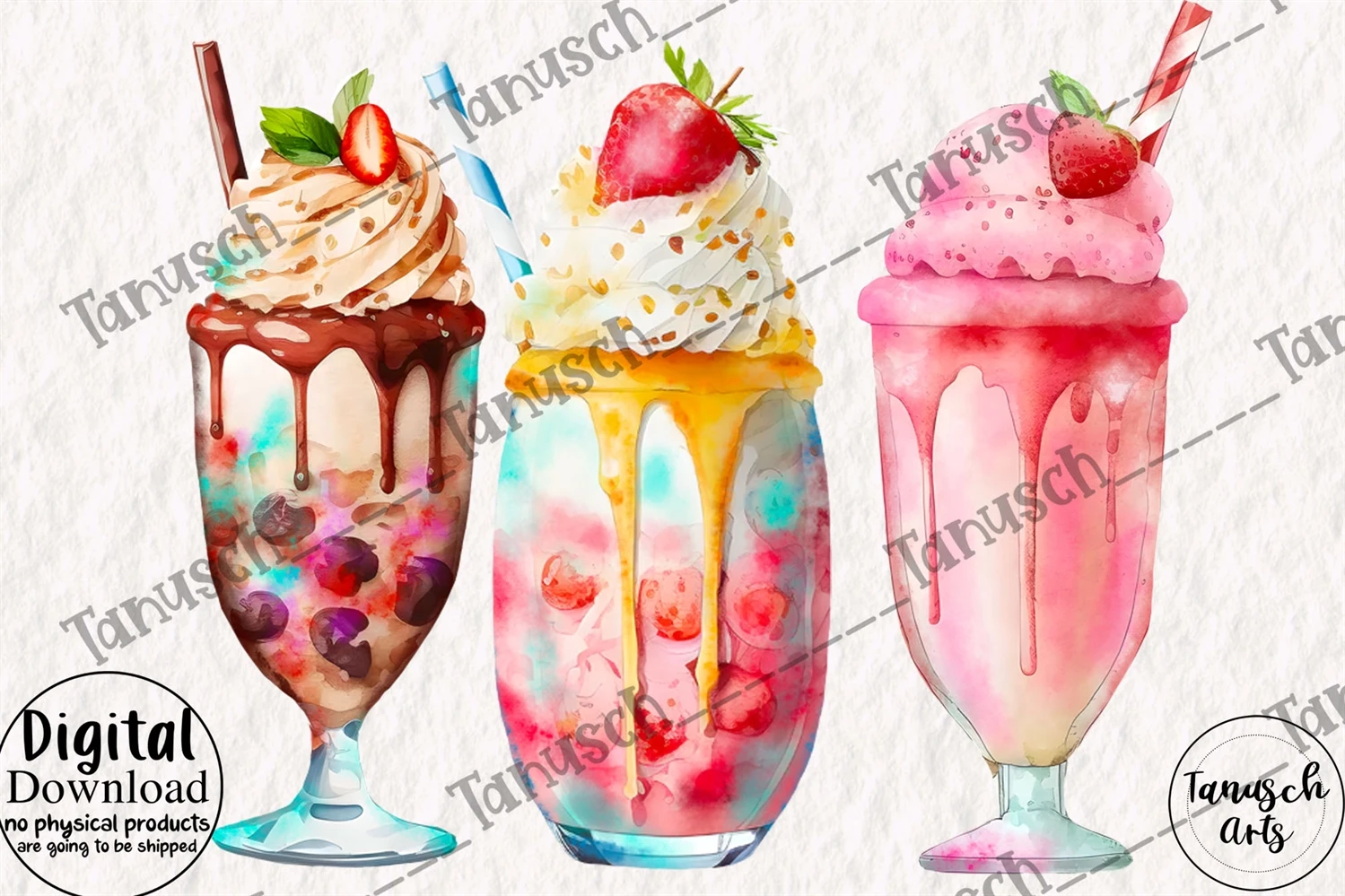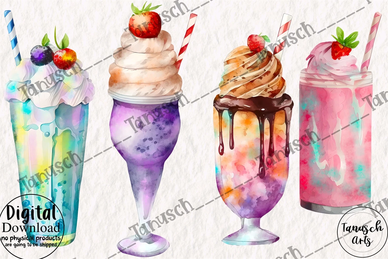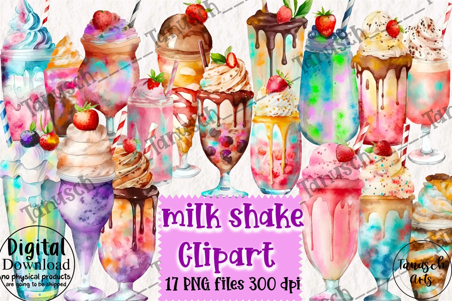 Handpainted cute and modern Watercolor and mixed Media Milk Shakes Clipart