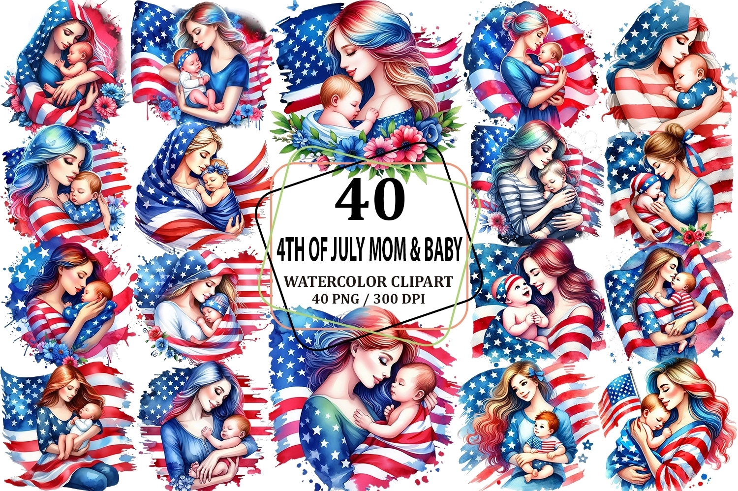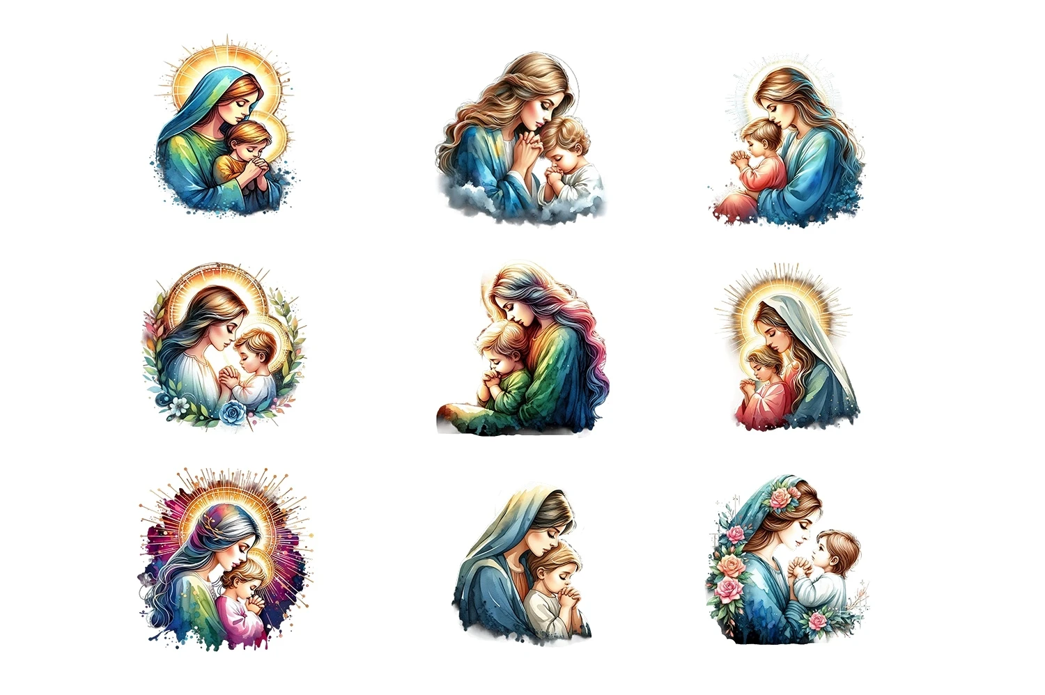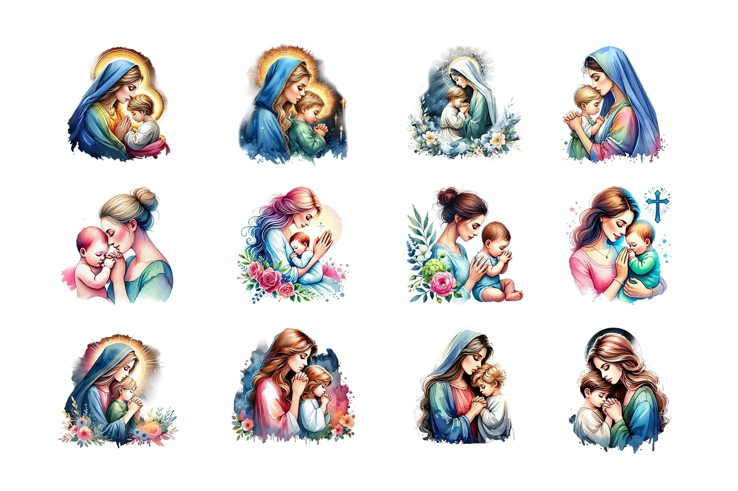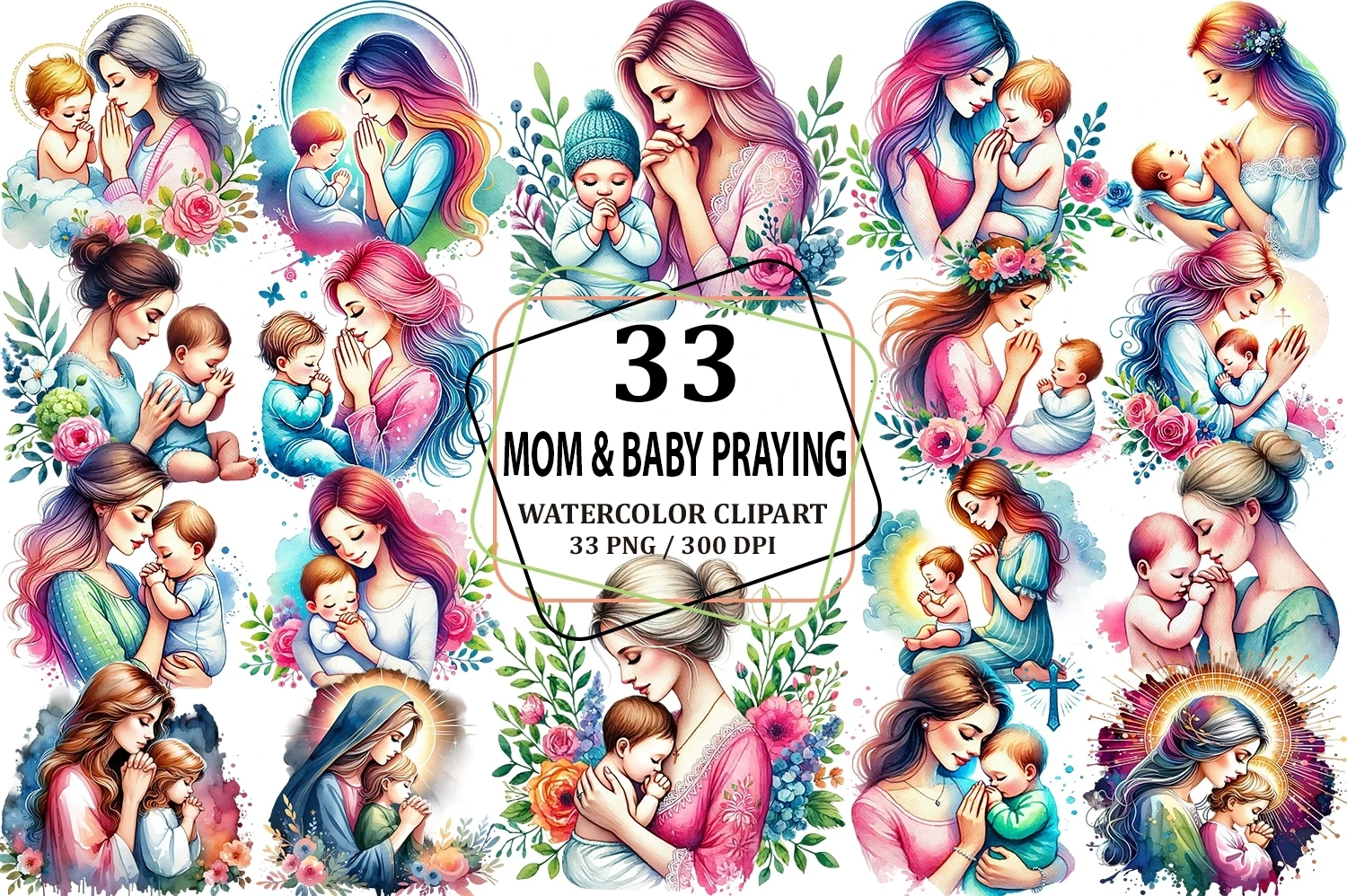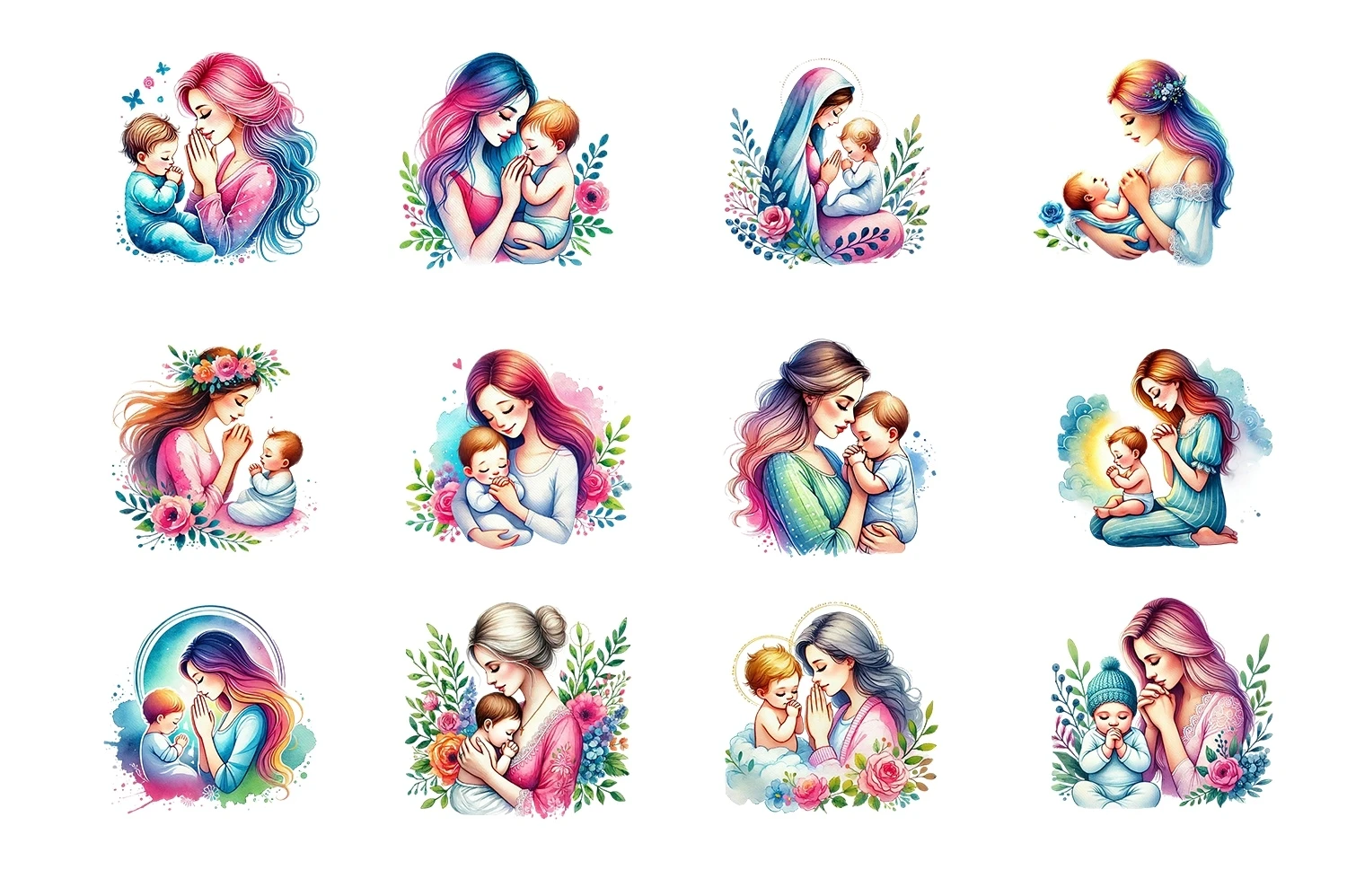 Watercolor Mom & Baby Praying Mother's Day Clipart Sublimation Design (AI-generated).
