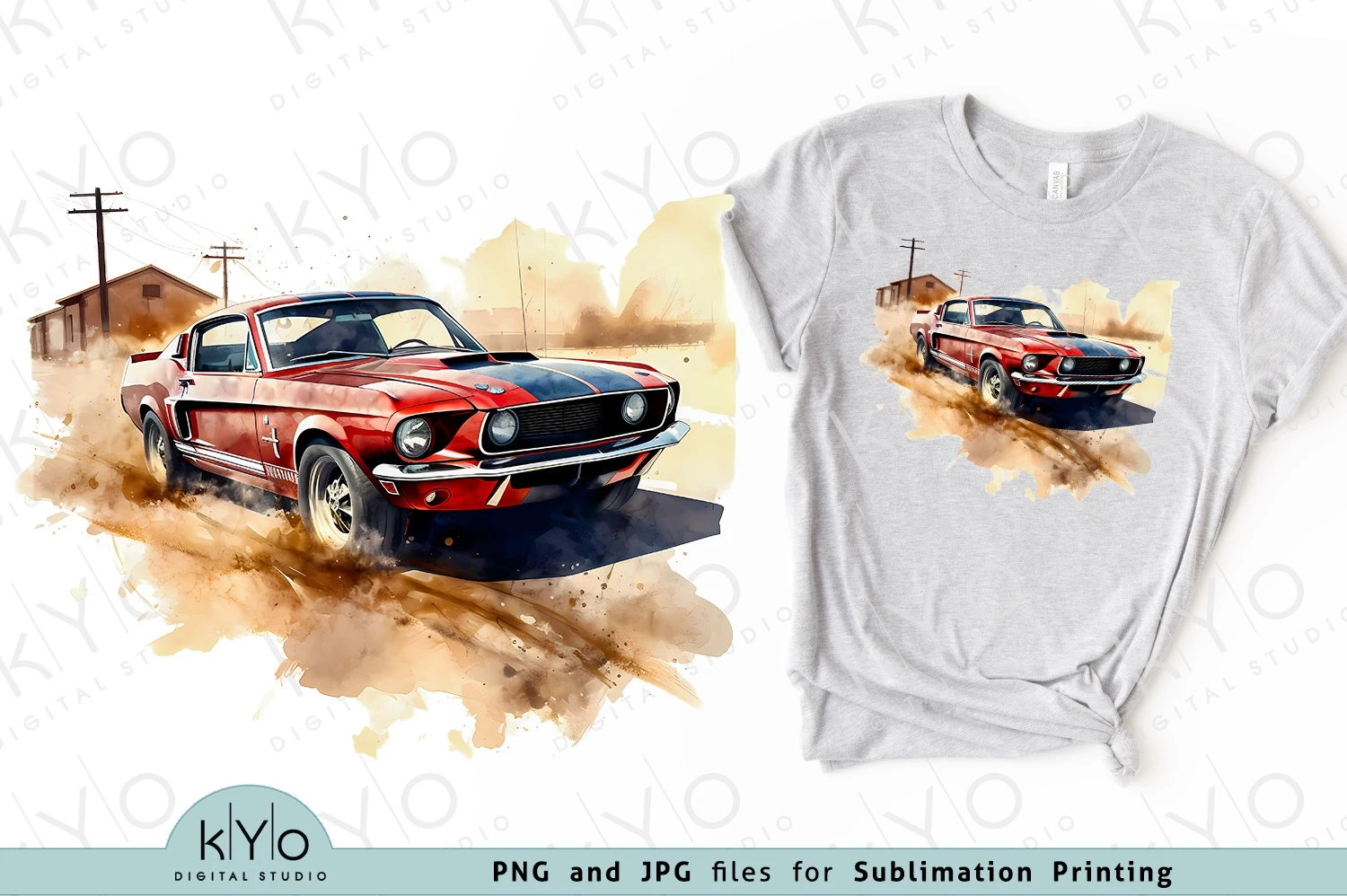 Watercolor Mustang Sublimation Png, Classic Retro Mustang Floral Illustration, Printable Design, Road Trip Shirt Design, Mustang clipart Ver-11
