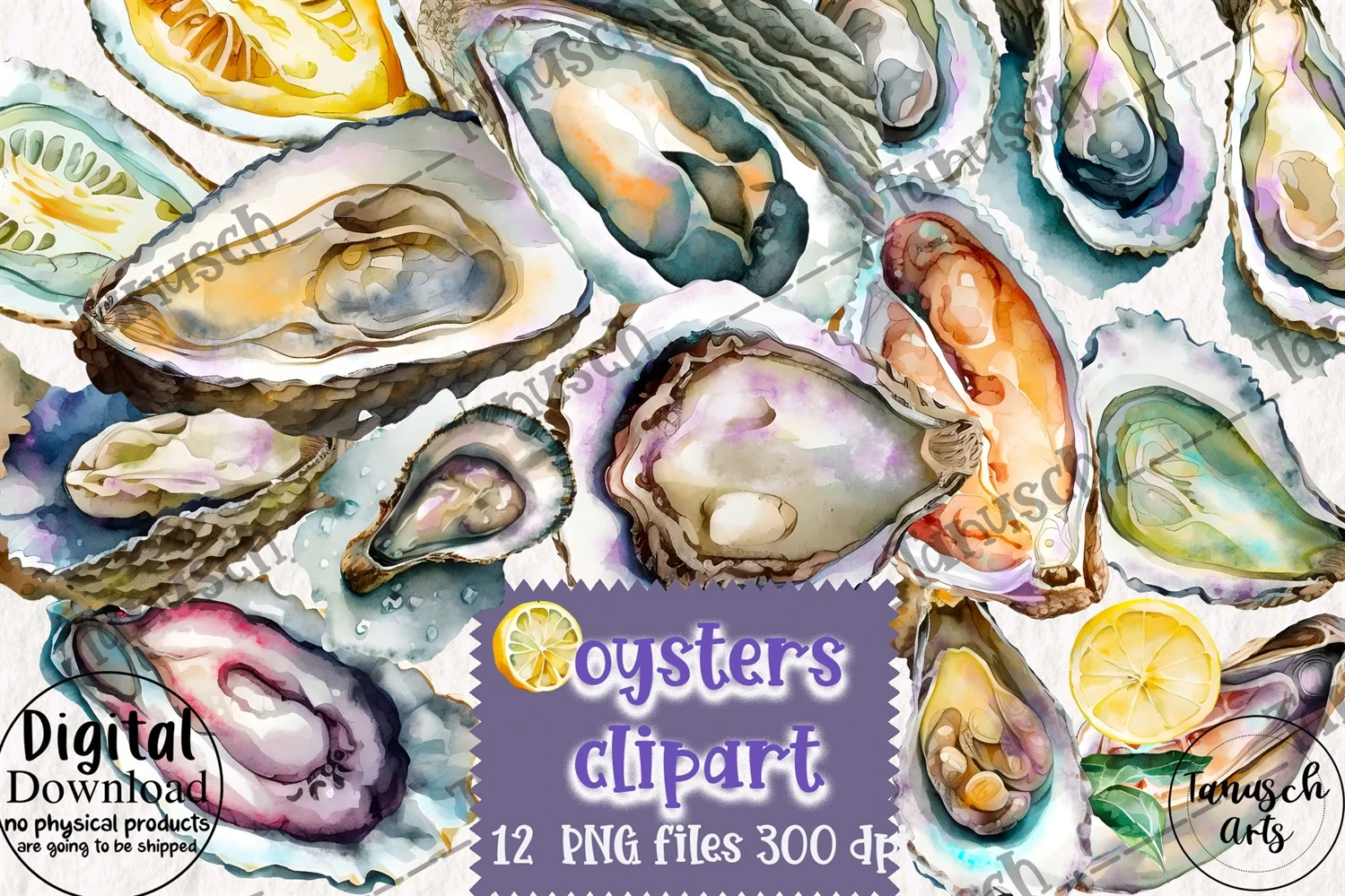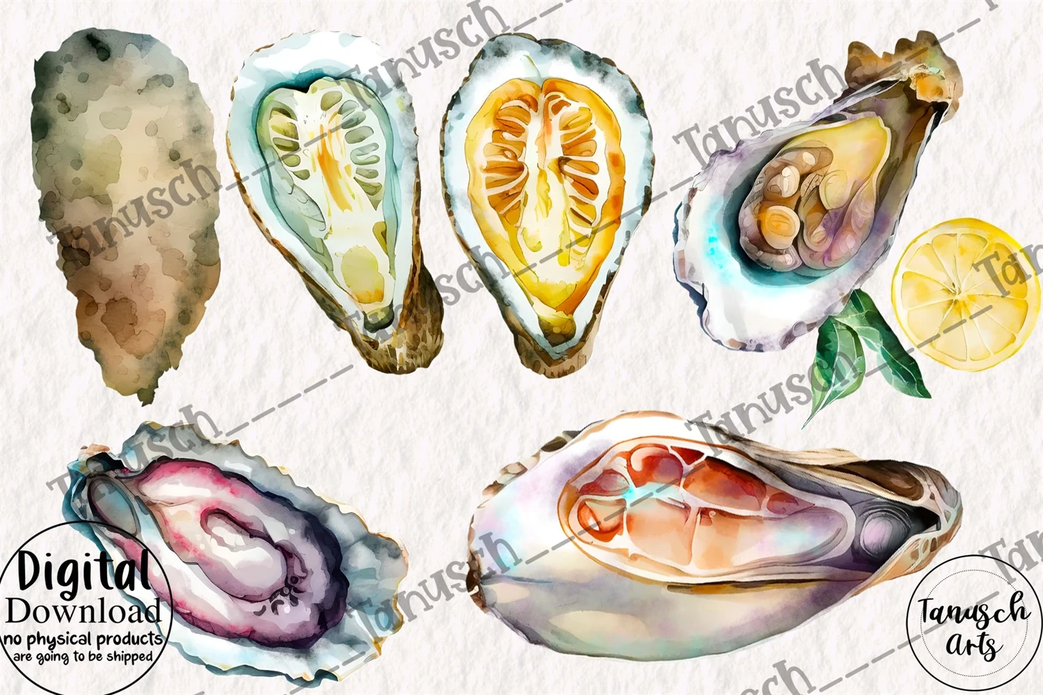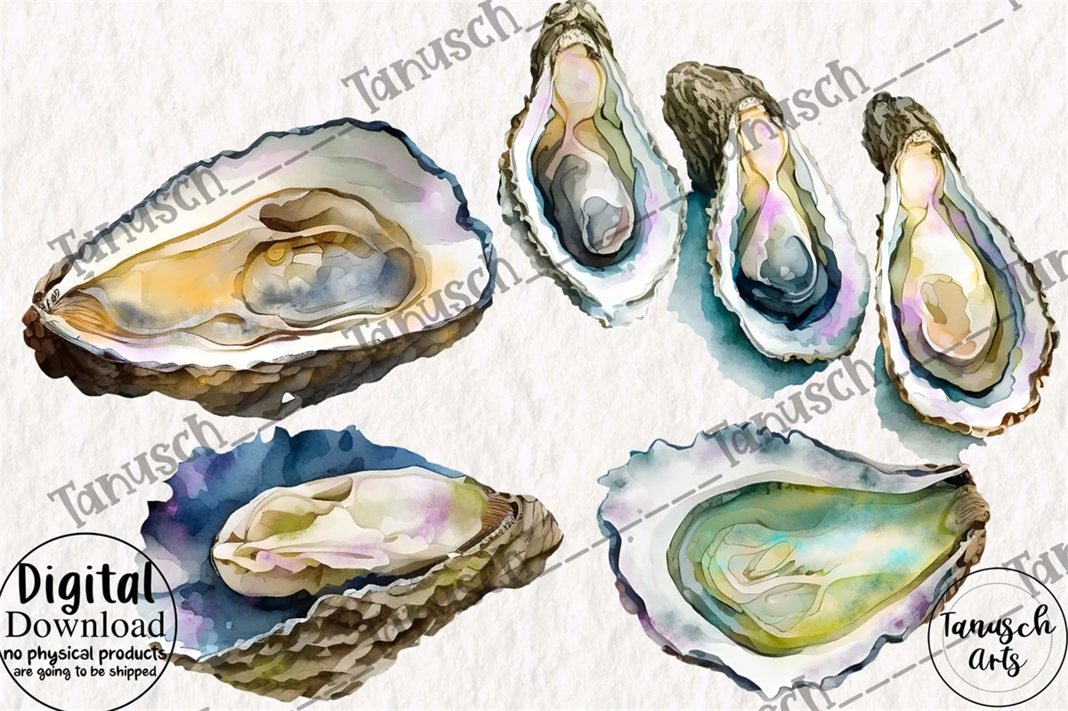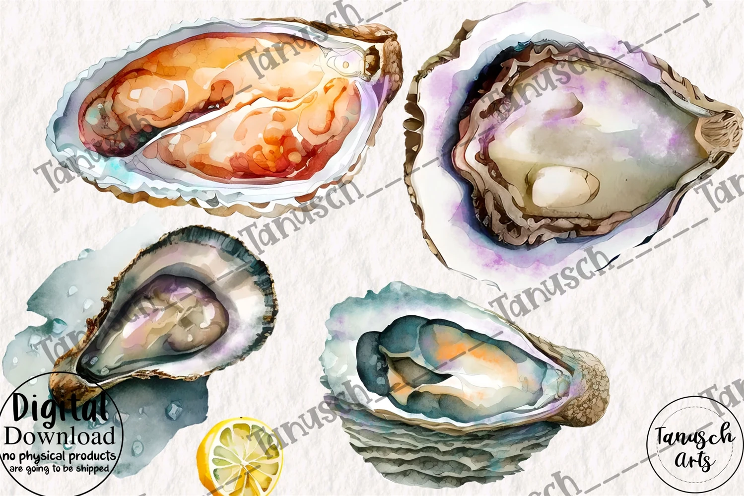 Handpainted cute and modern Watercolor and mixed Media Oysters Clipart