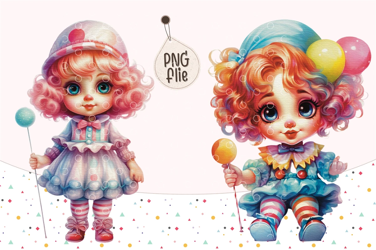 Watercolor pastel clown clipart