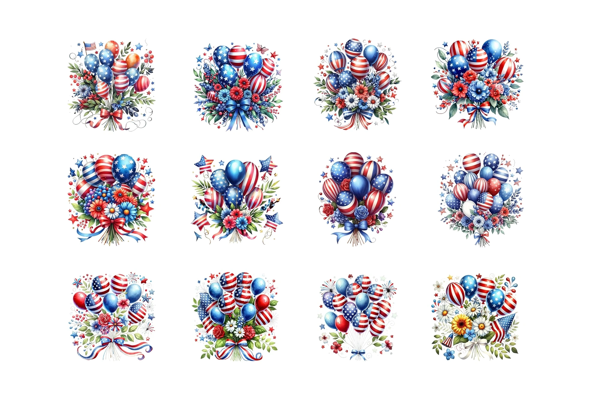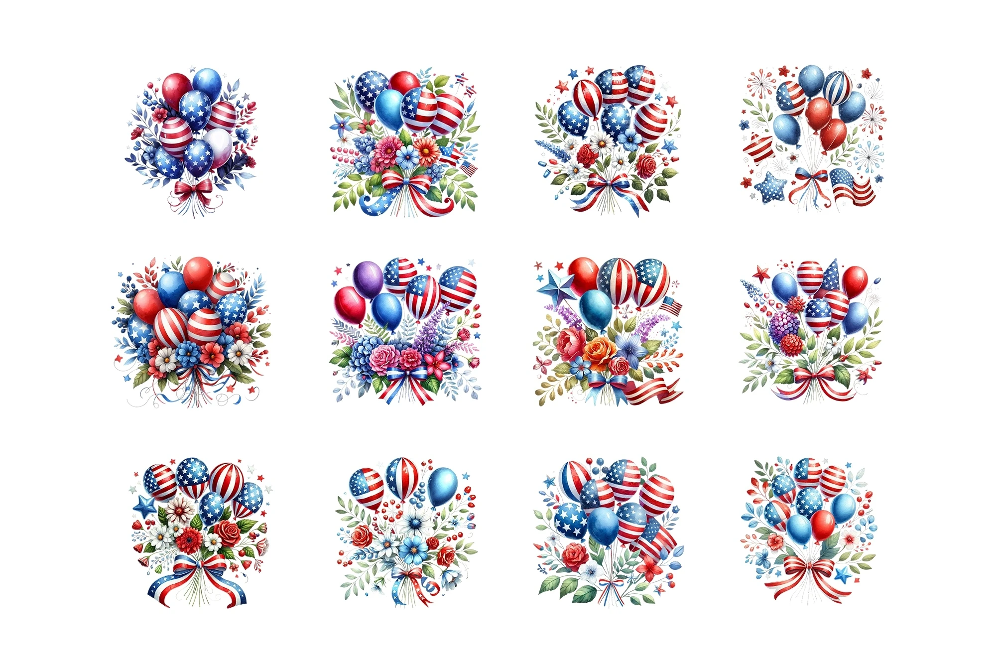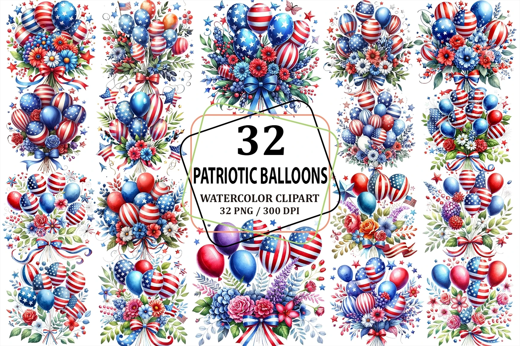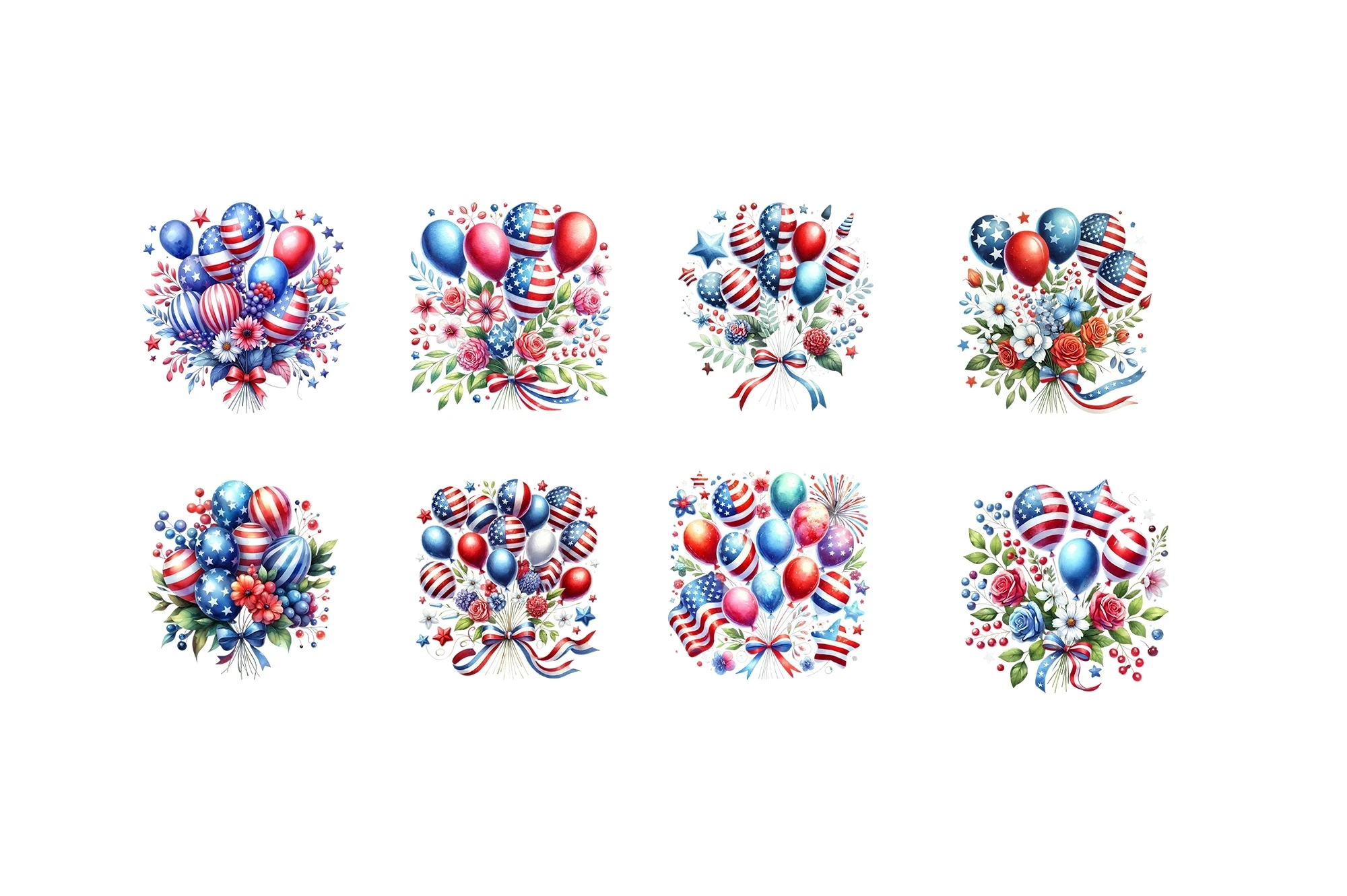 Watercolor Patriotic Balloons Clipart Sublimation PNG (AI-generated).