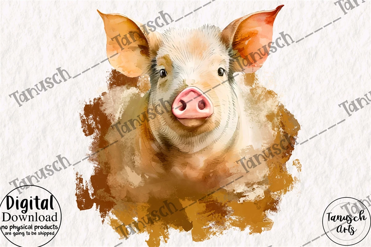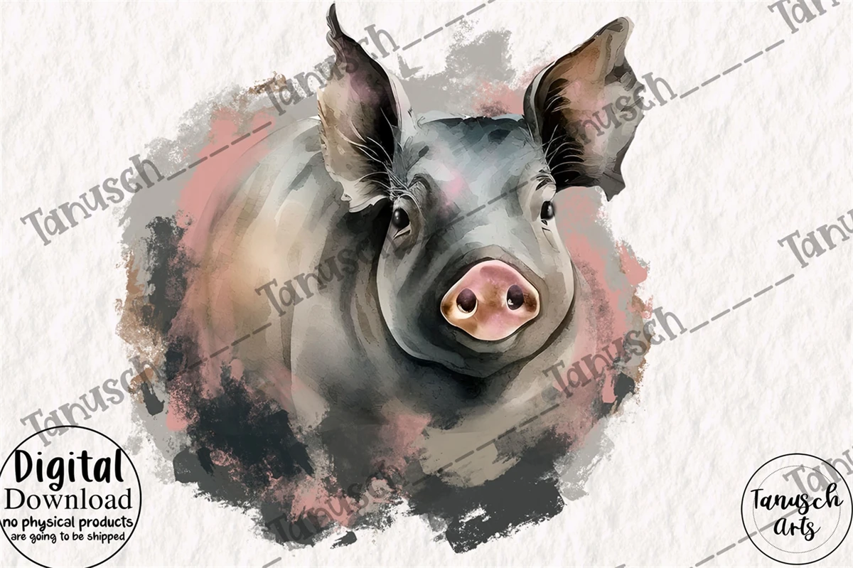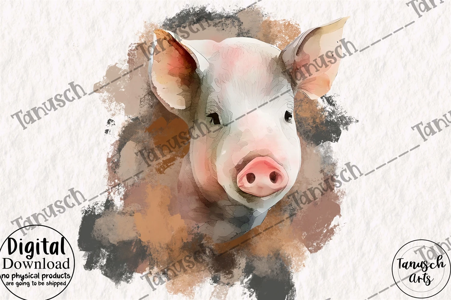Hand painted cute and modern Watercolor and mixed Media PIG Clipart Part 1