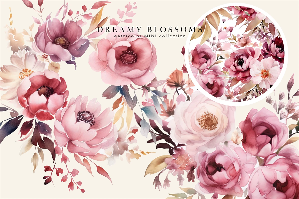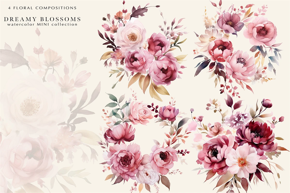 4 floral compositions size approx.: 2828 x 3027 px 9.5"x10", and smaller png