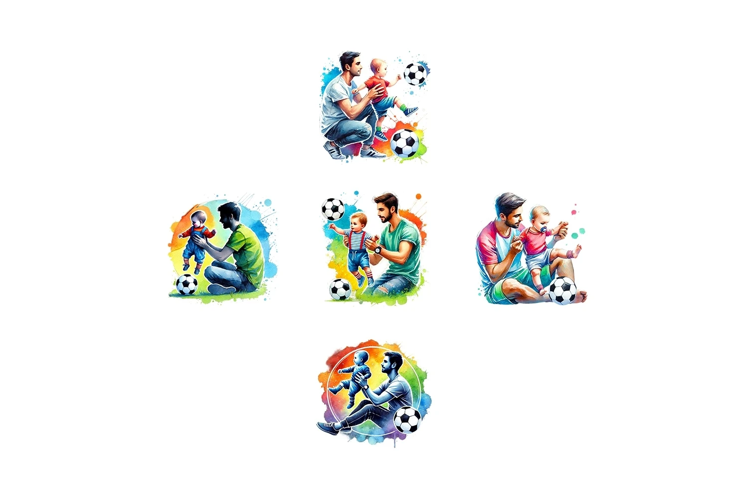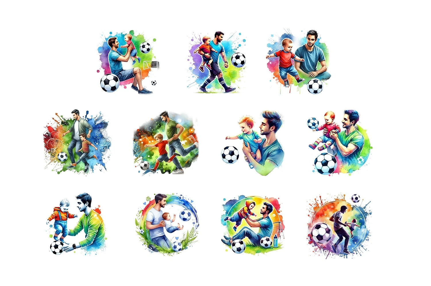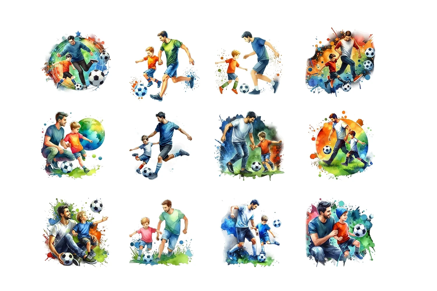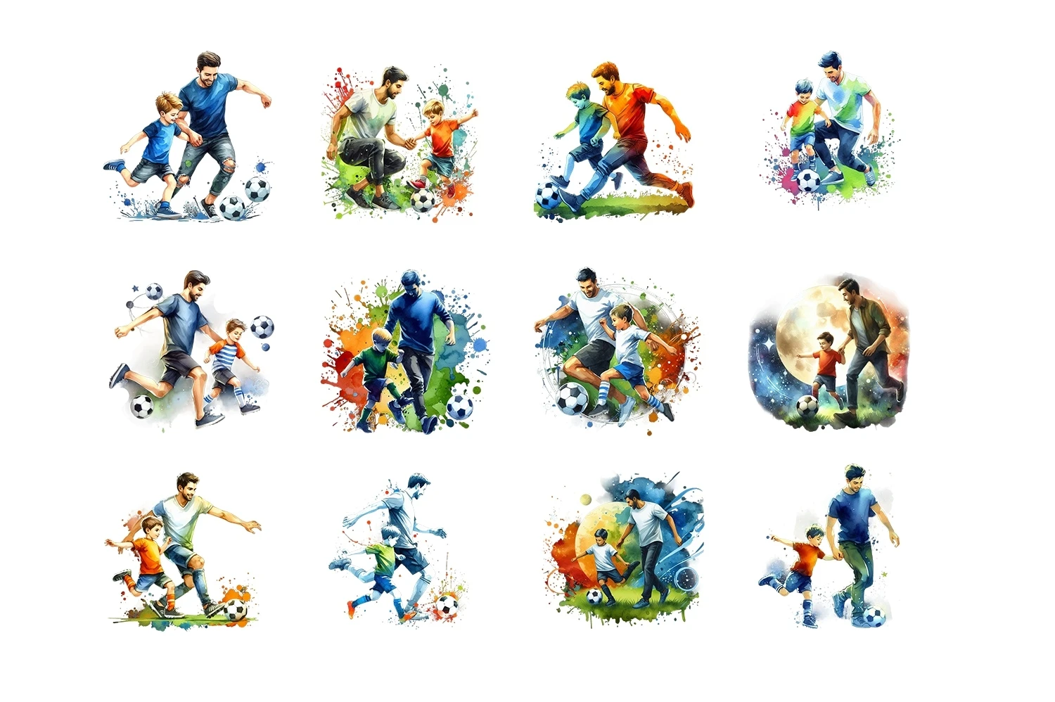 Watercolor Playing Soccer Fathers Day Clipart Sublimation PNG (AI-generated).