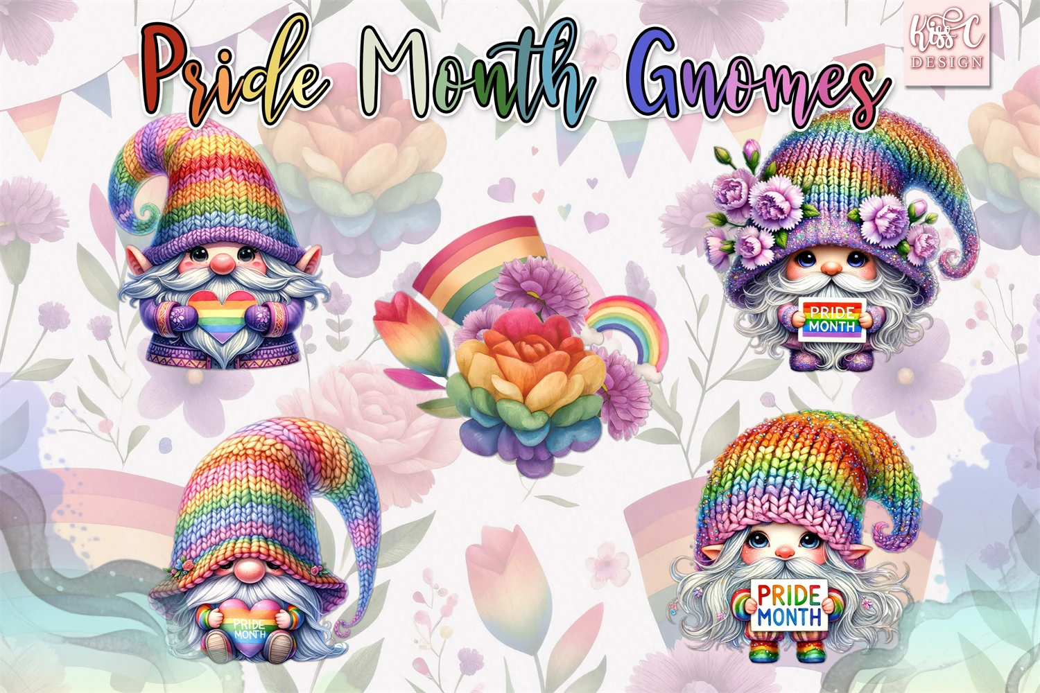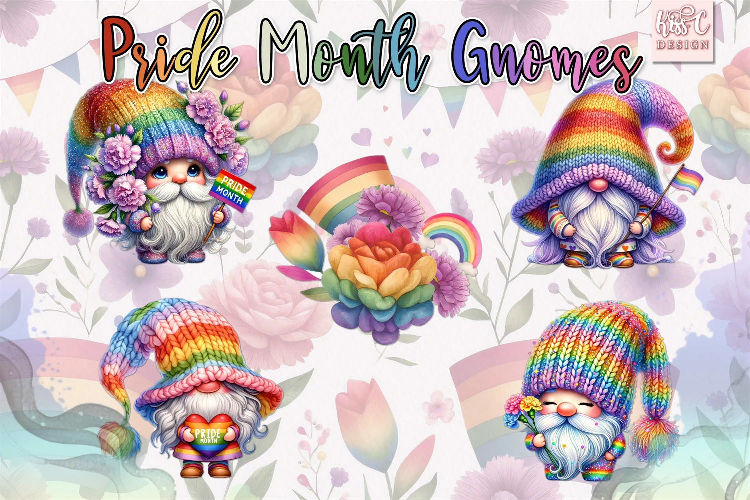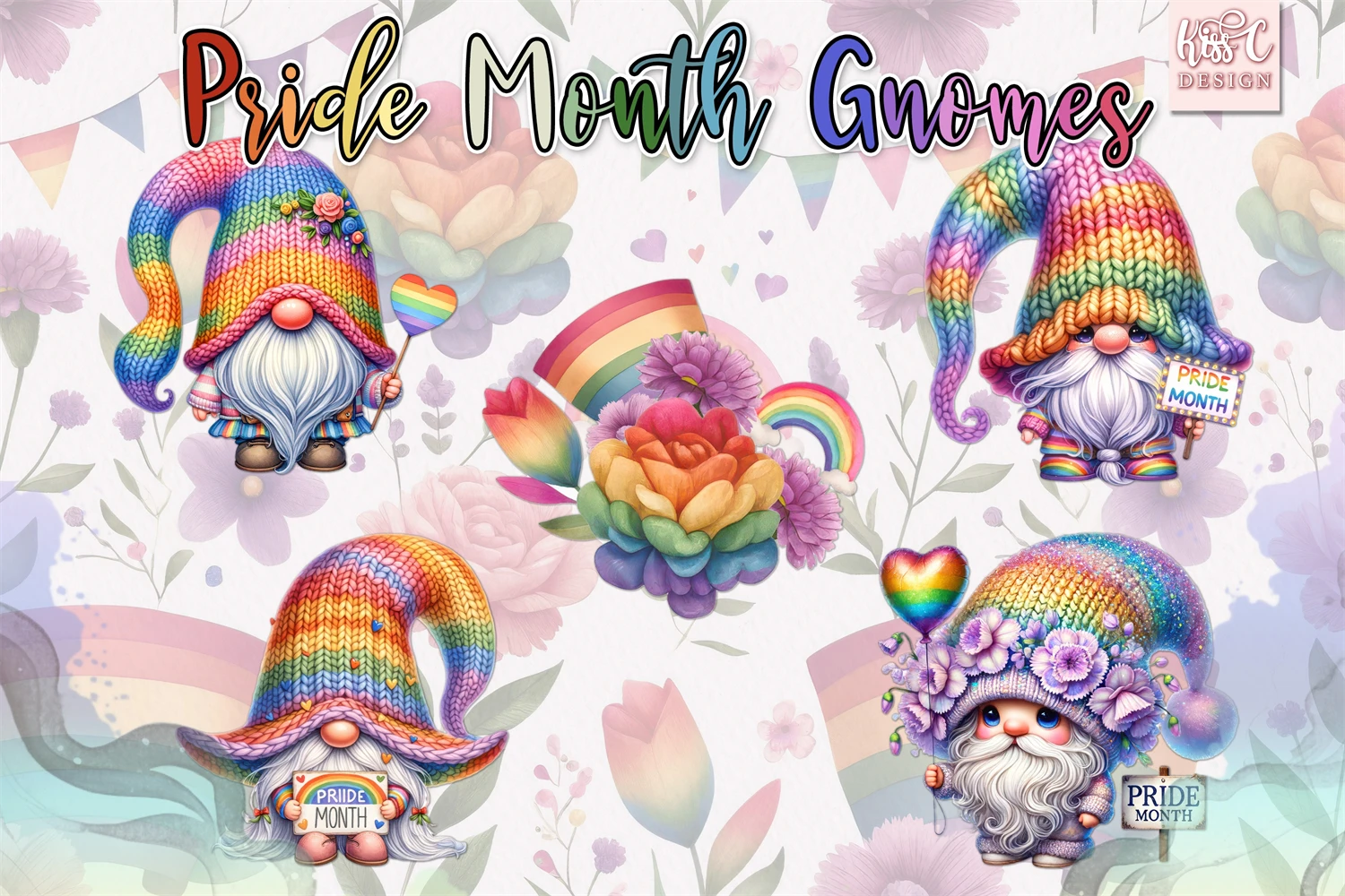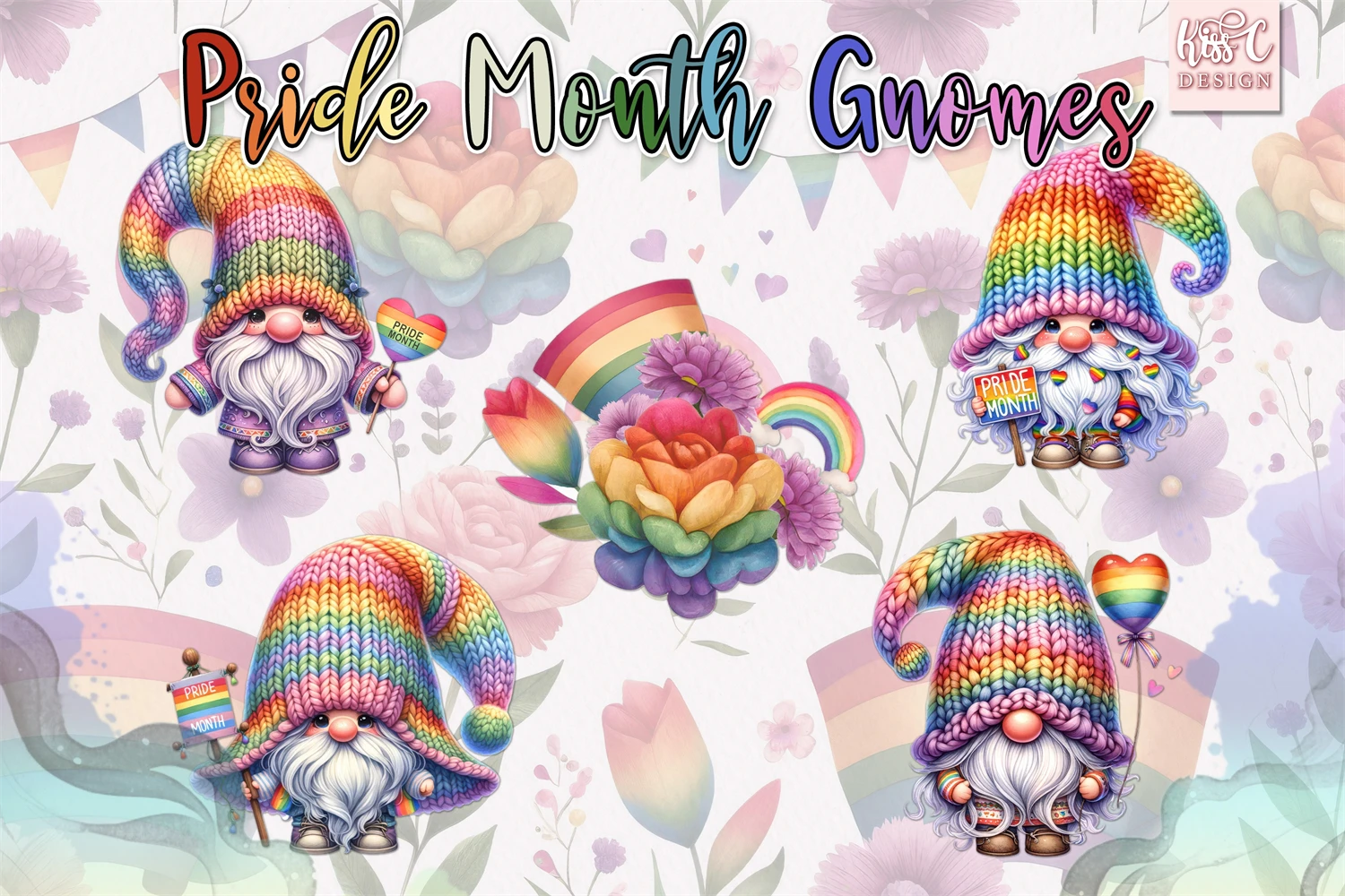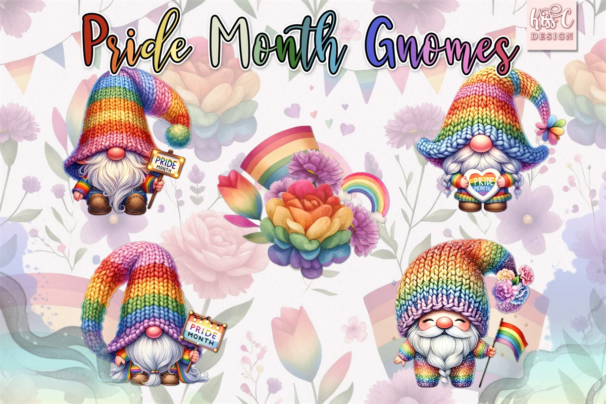 Watercolor Pride Month Celebration Gnomes PNG Sublimation Clipart.