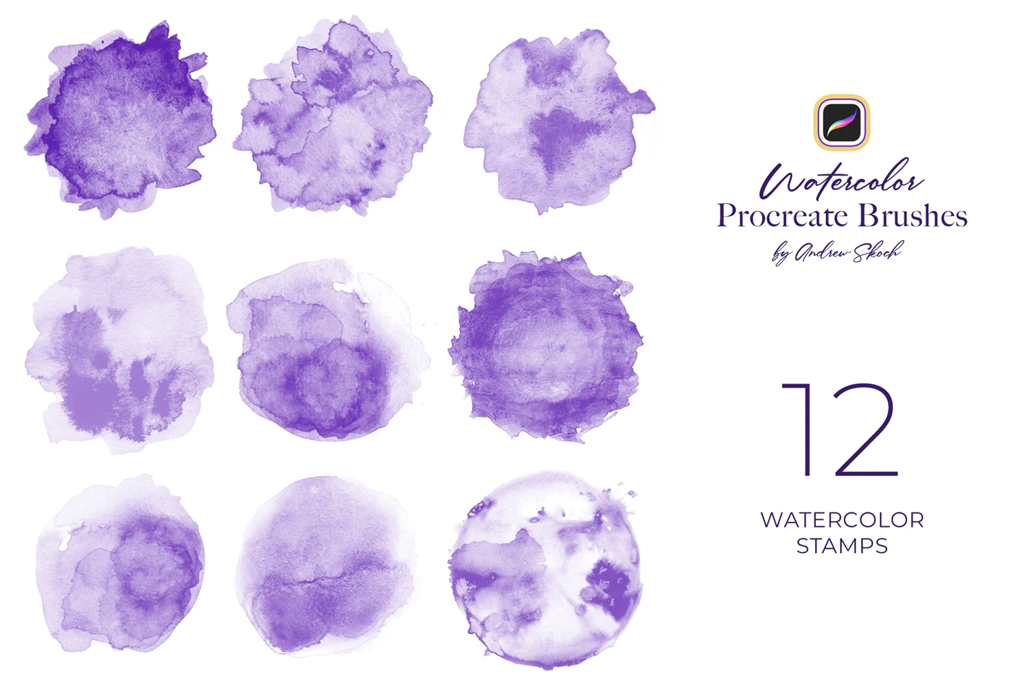 - 12 watercolor stamps